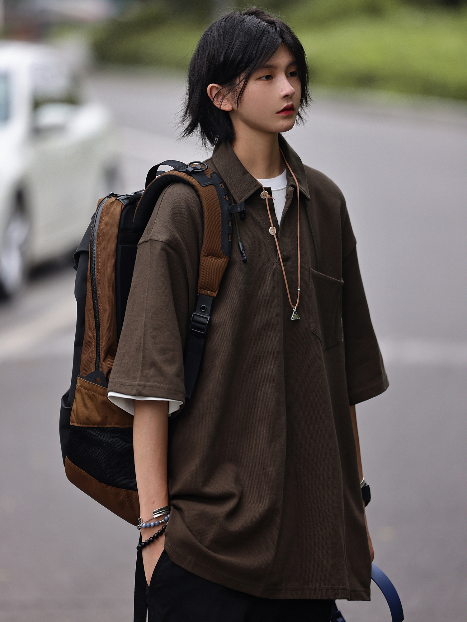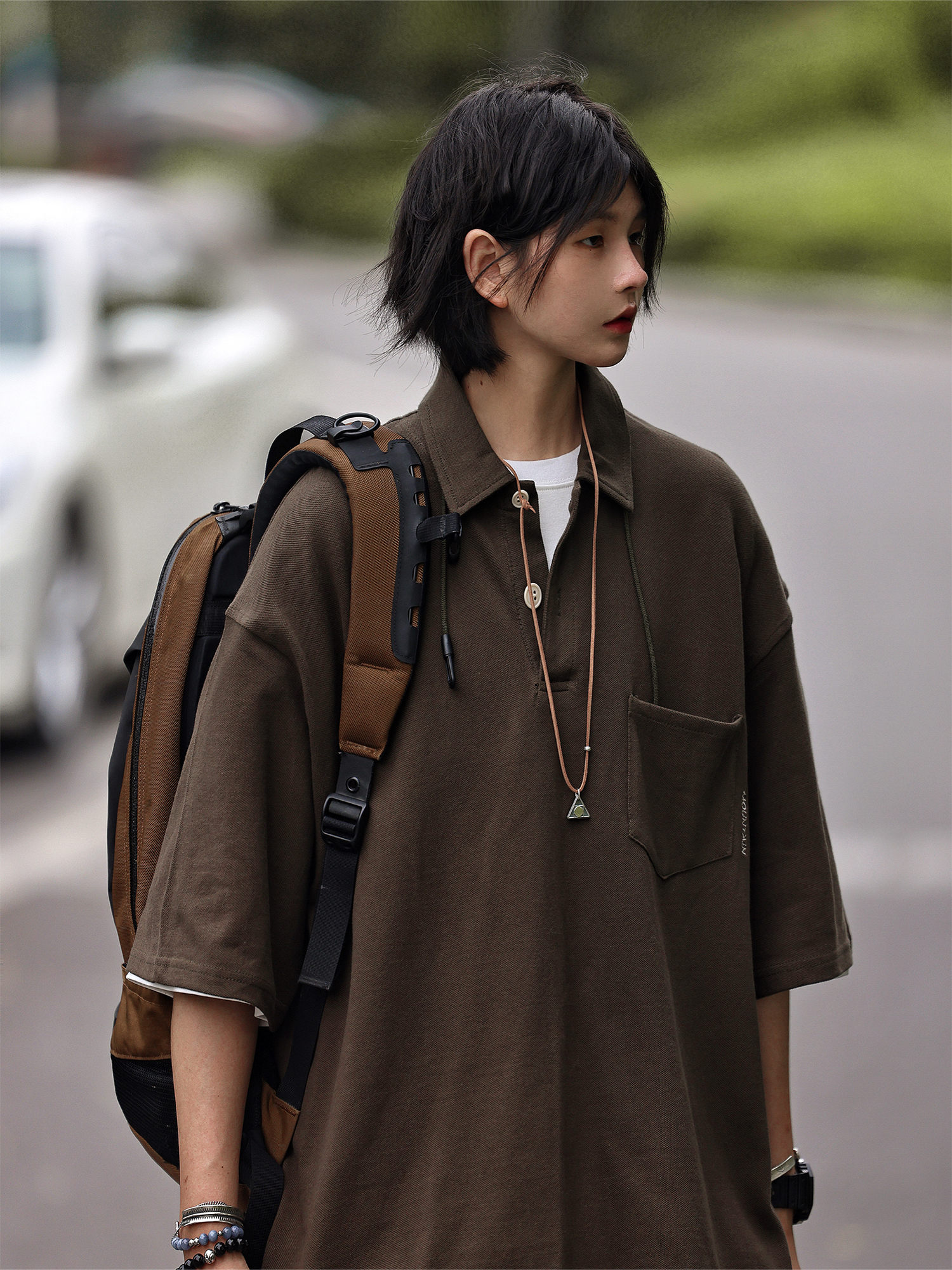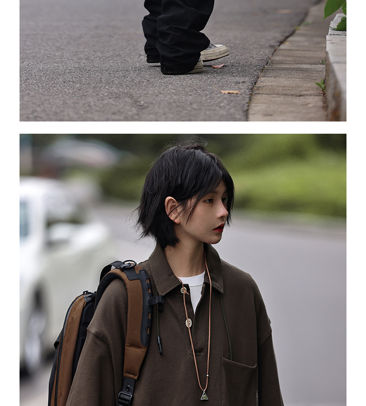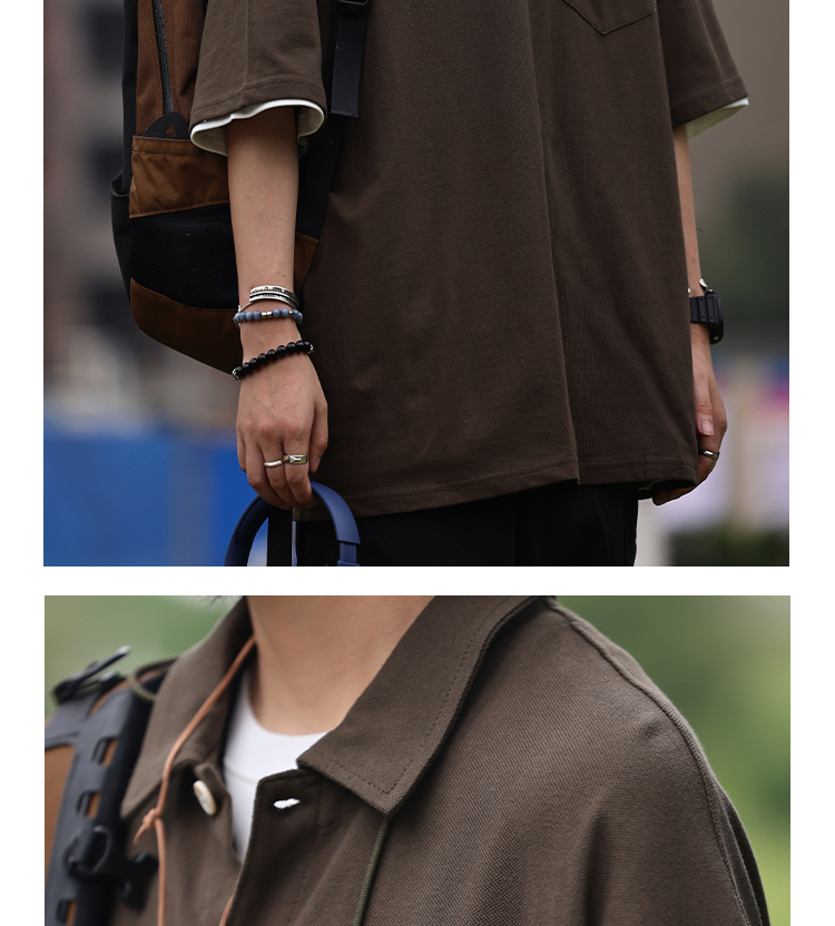 Nobodyknows夏季美式復古翻領簡約polo衫休閒寬鬆純色刺繡短袖T恤