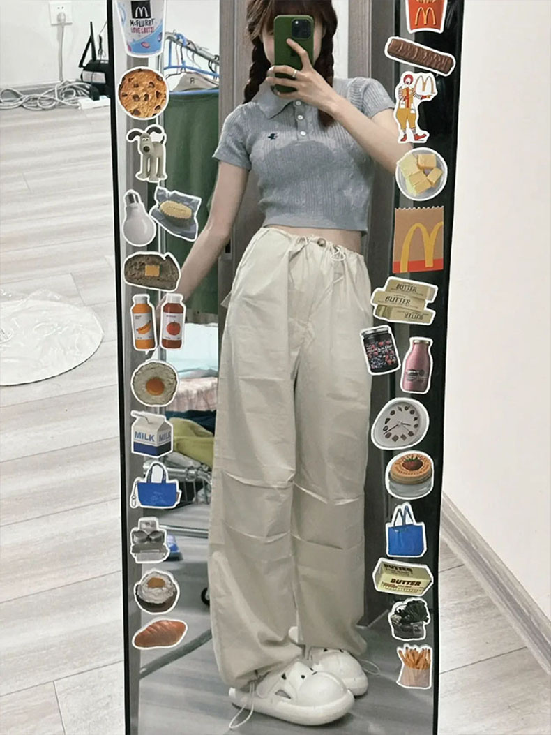 顏色分類 工裝褲【慵懶風女裝/褲子女小個子/闊腿褲女夏季/寬鬆/夏季穿搭/學院運動風/日雜風穿搭】