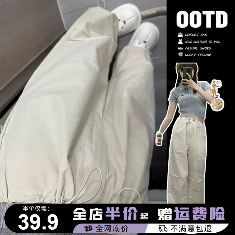美式復古工裝褲子夏季小個子穿搭薄款休閒運動長褲闊腿女2023新款