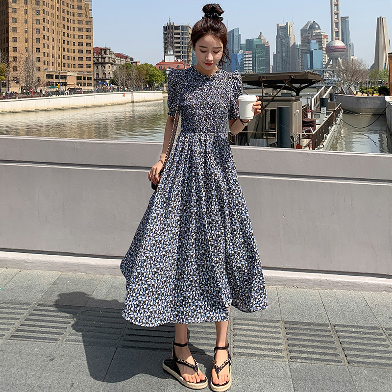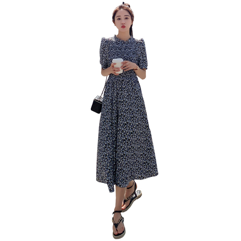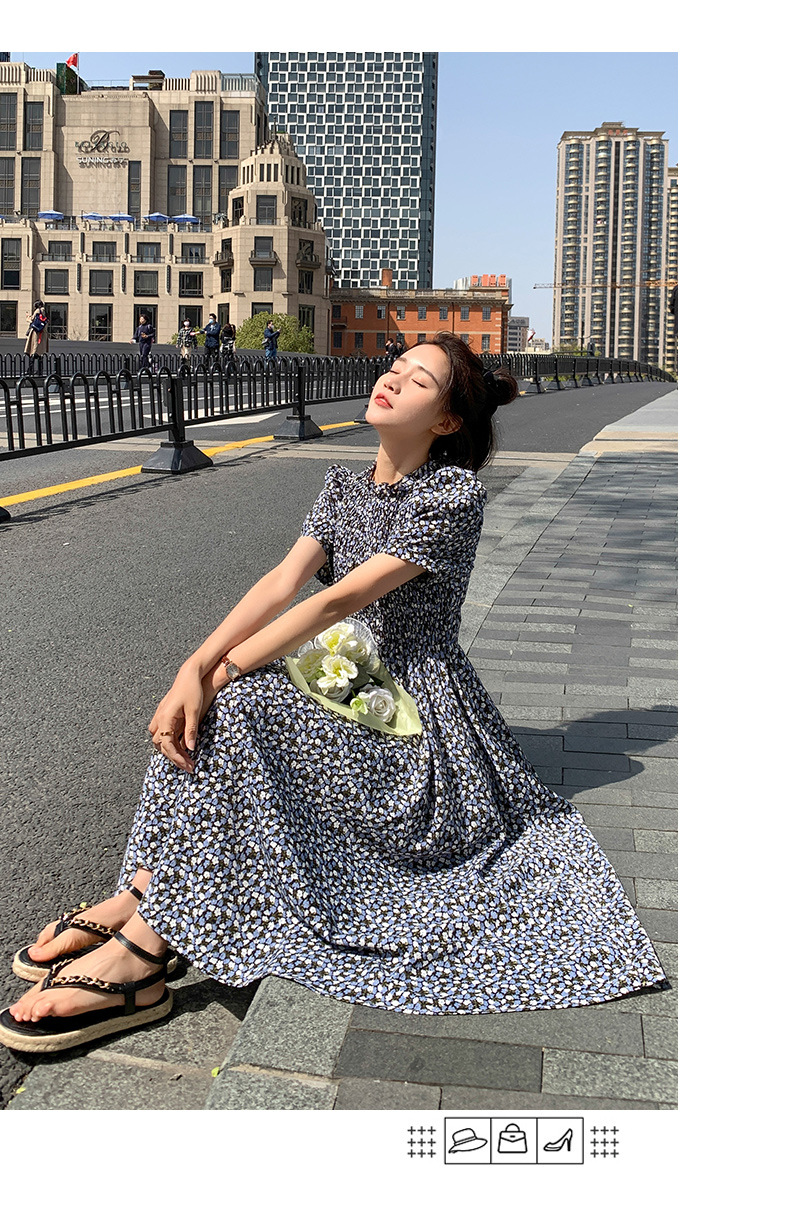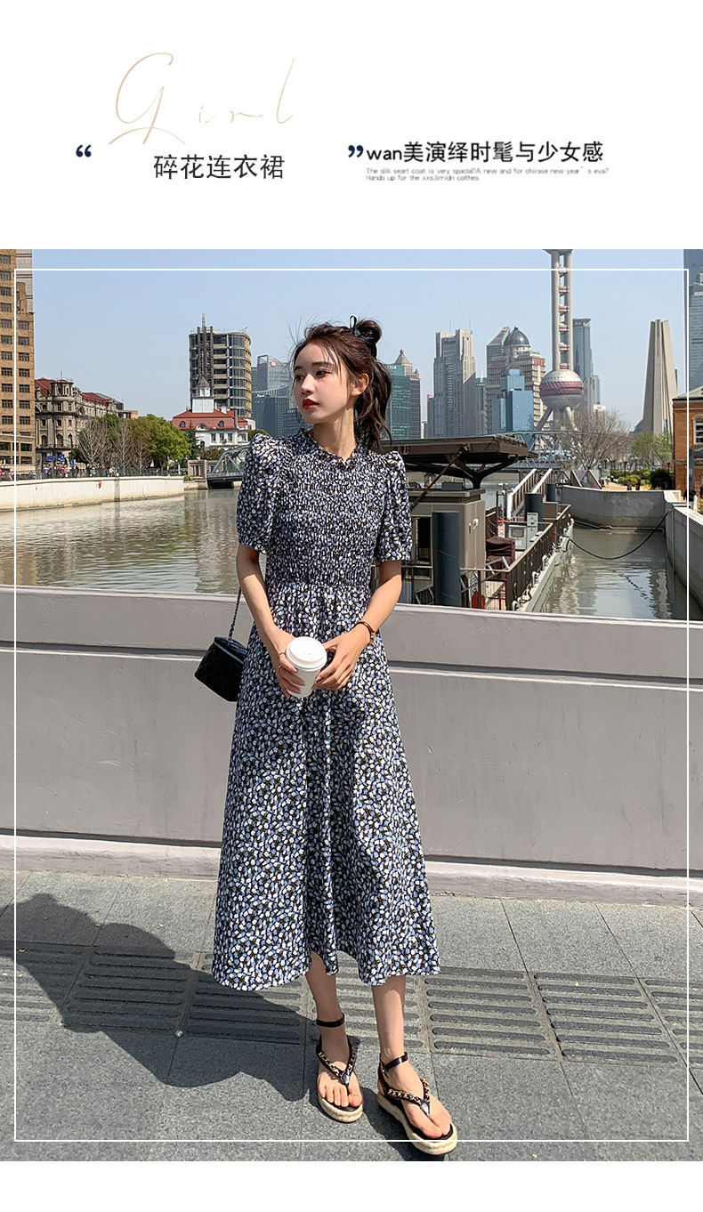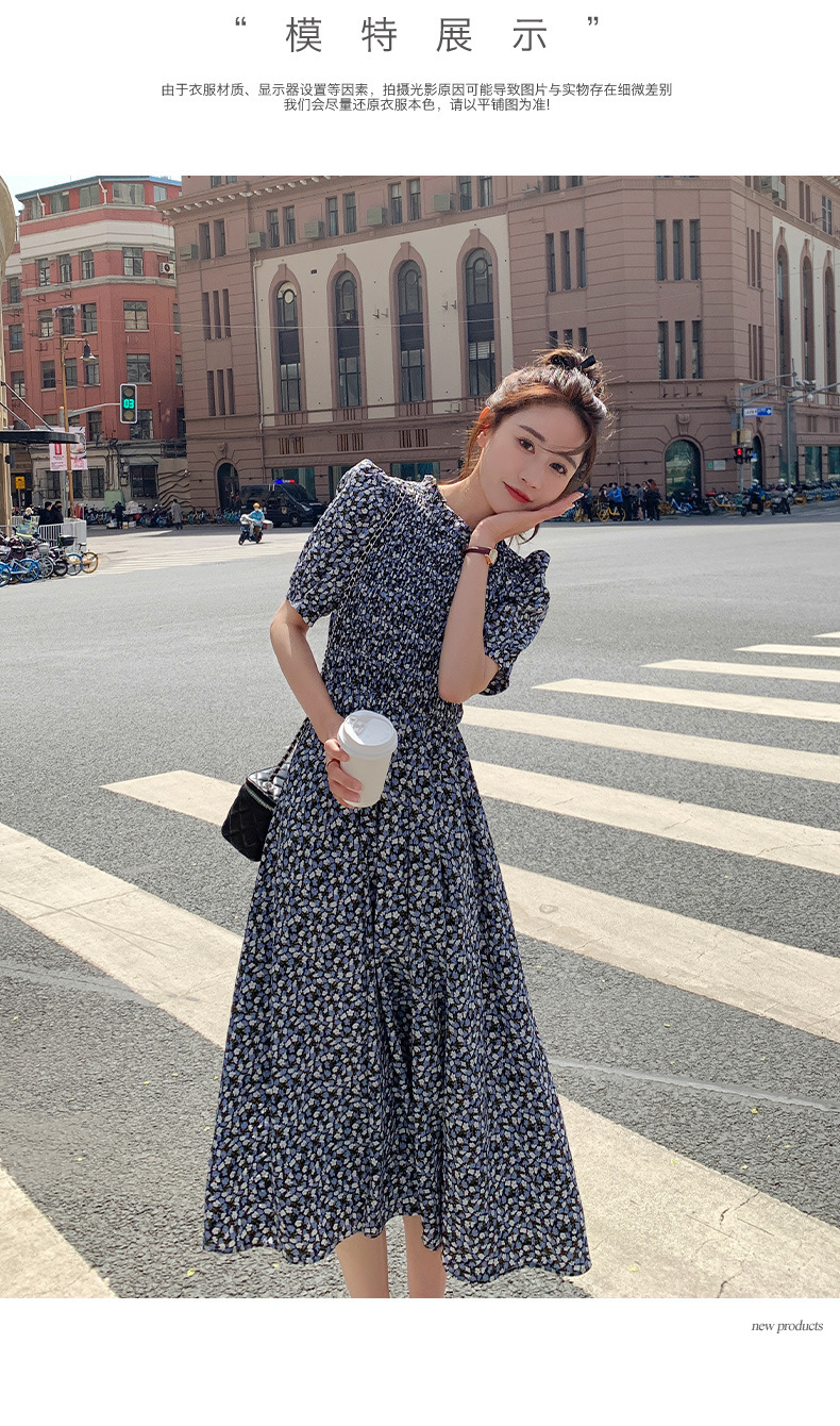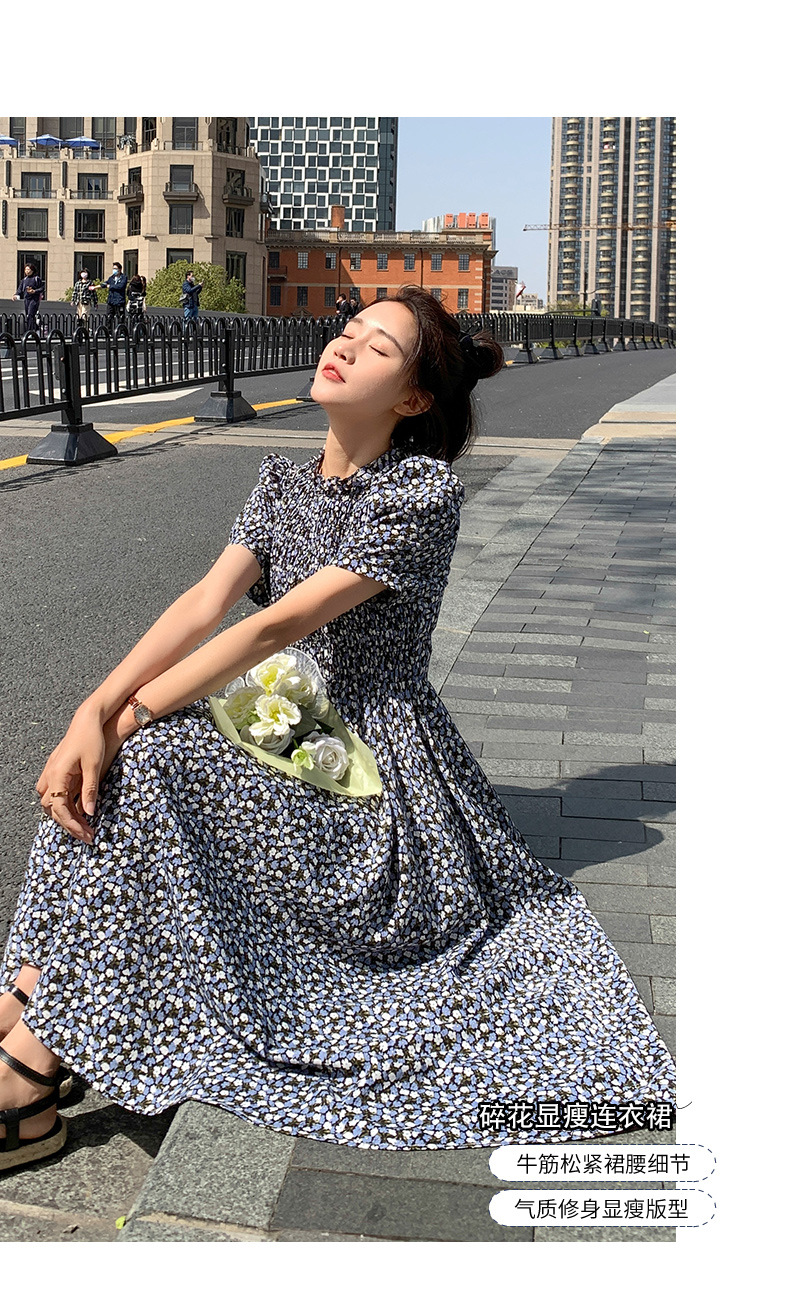 碎花连衣裙女2023年夏季新款气质小清新质设计感裙子收腰显瘦长裙