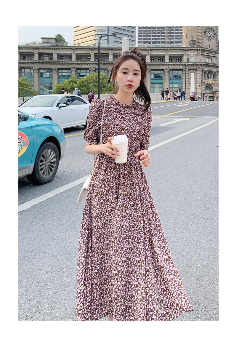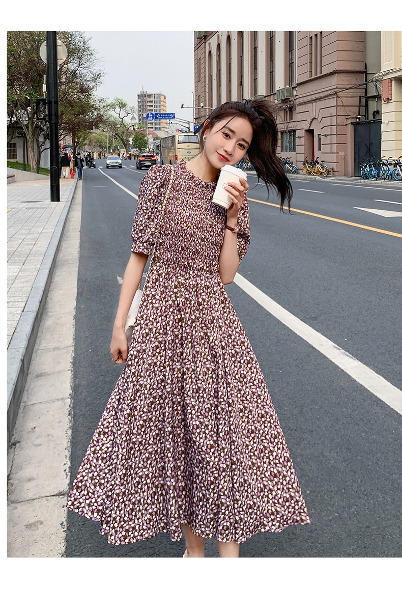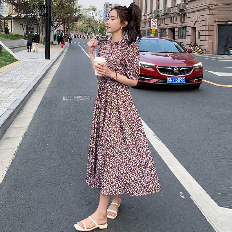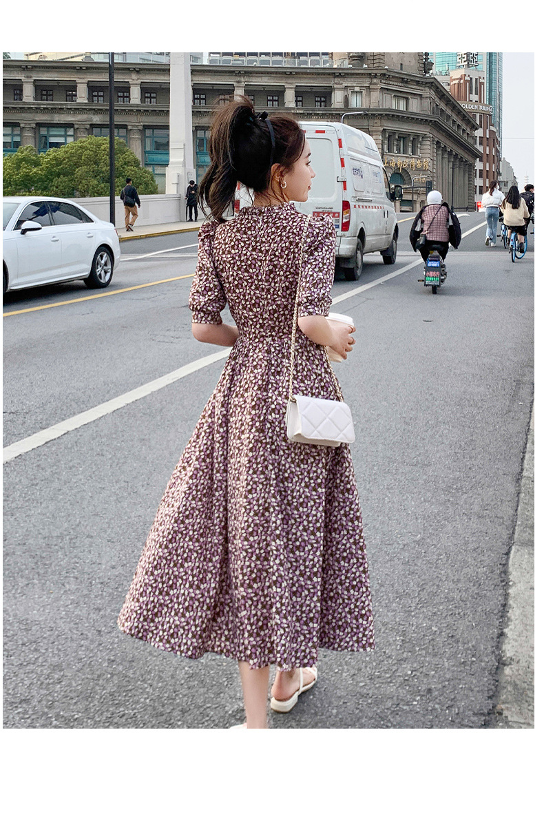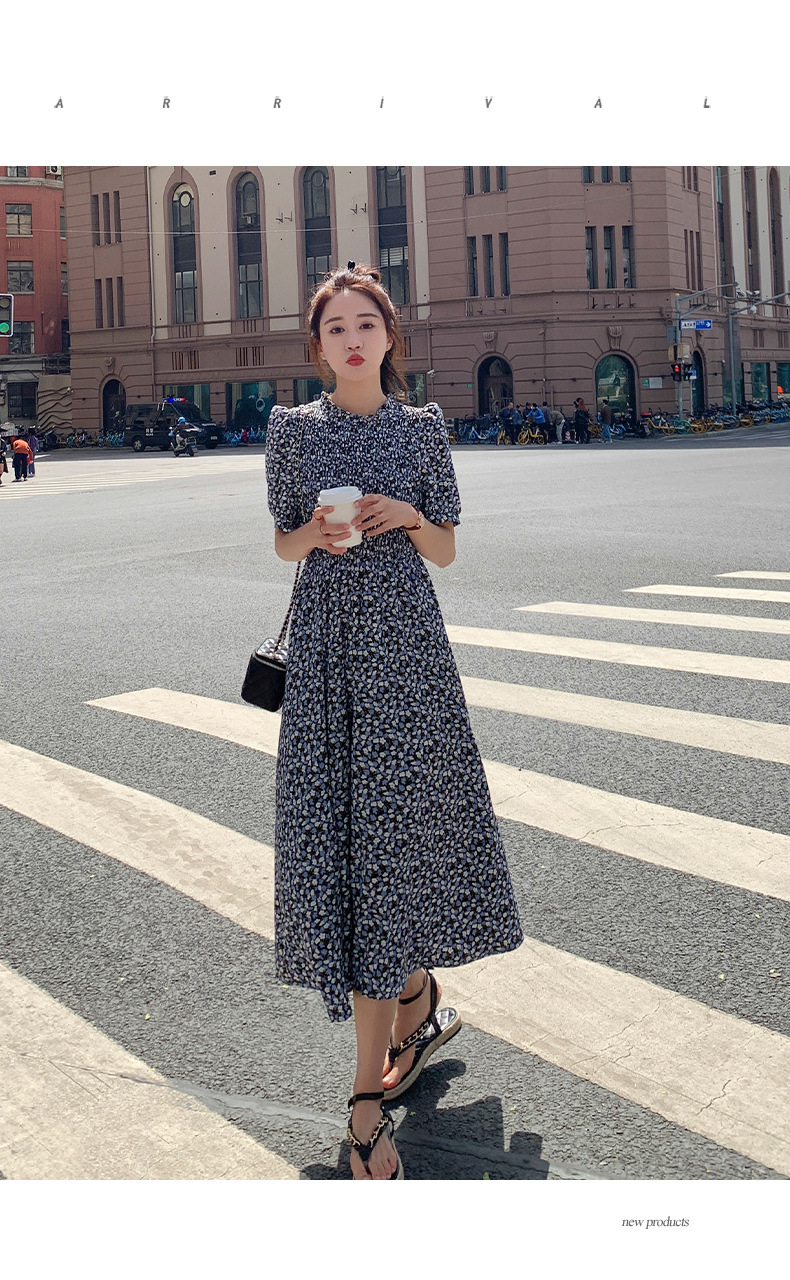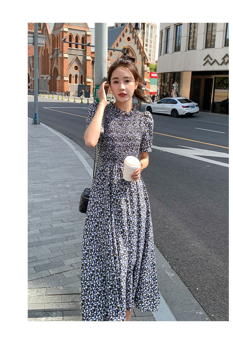 碎花连衣裙女2023年夏季新款气质小清新质设计感裙子收腰显瘦长裙