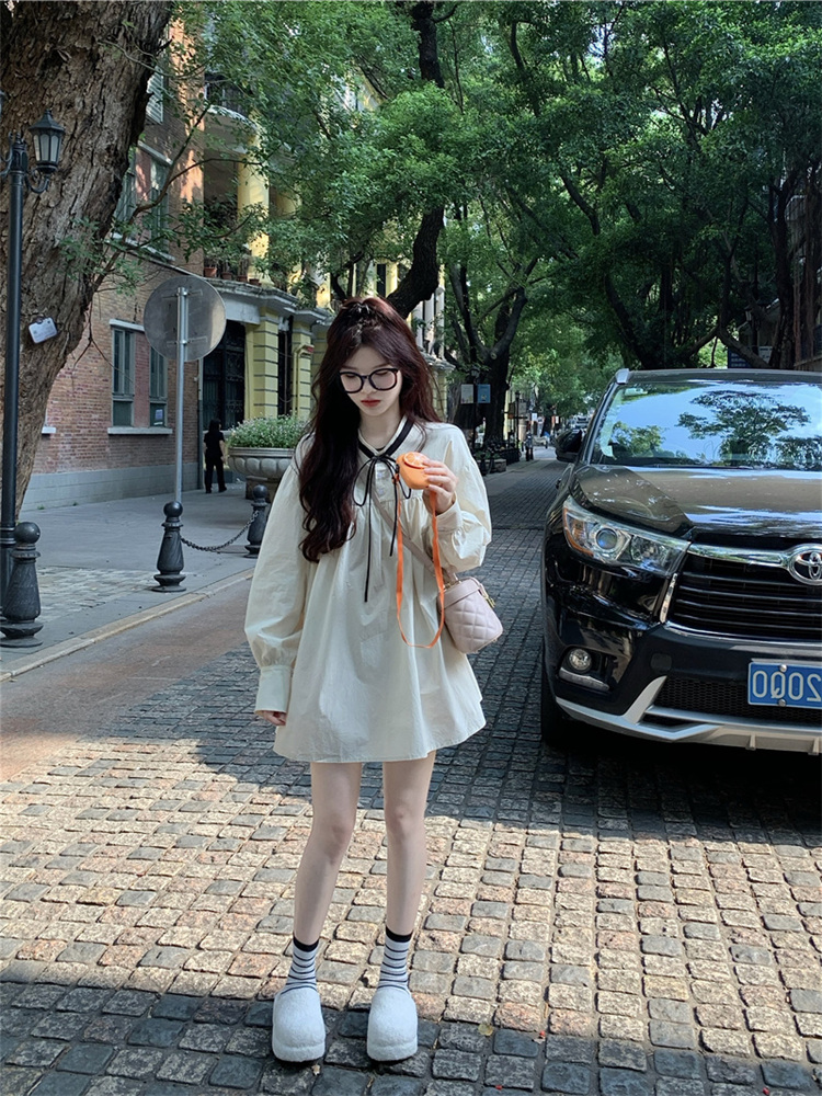 法式甜美泡泡袖洋裝女2023新款春秋夏高級設計感小眾長袖娃娃裙