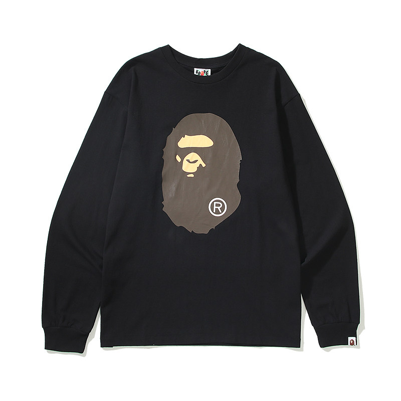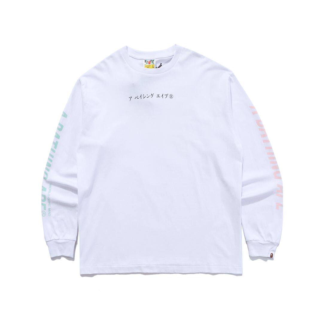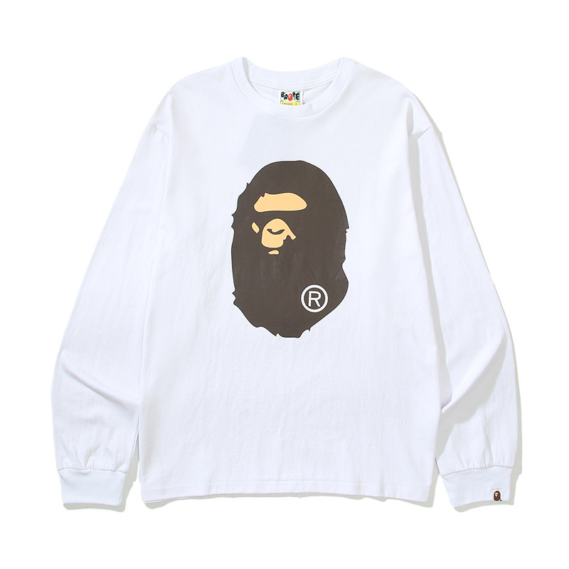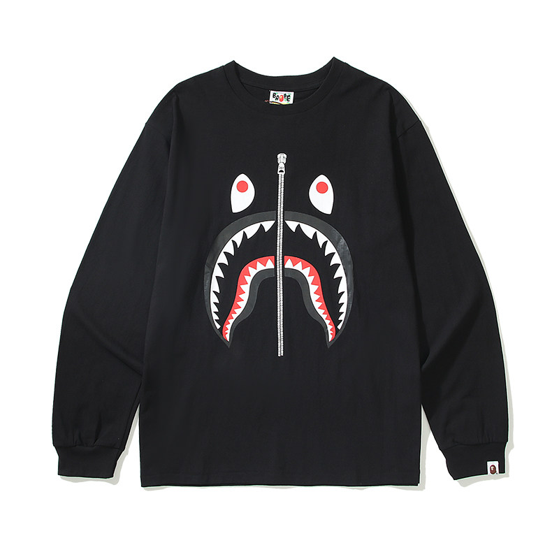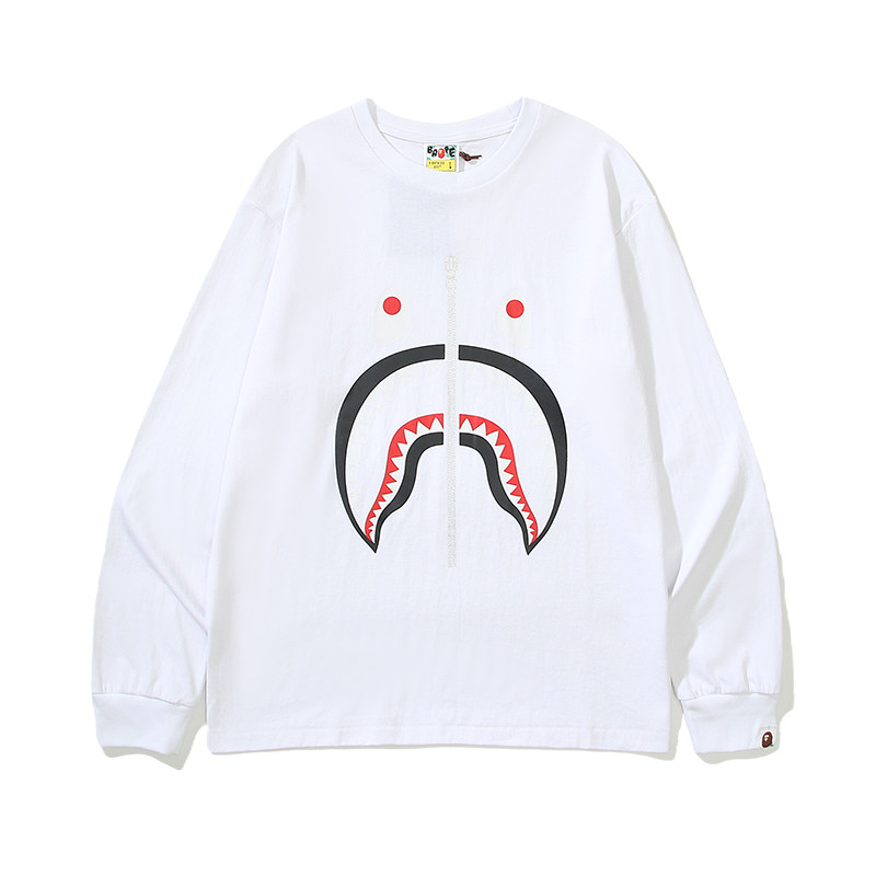 日本潮牌BAPE刺繡小標猿人頭藝妓鯊魚印花寬鬆潮流長袖T恤男女款