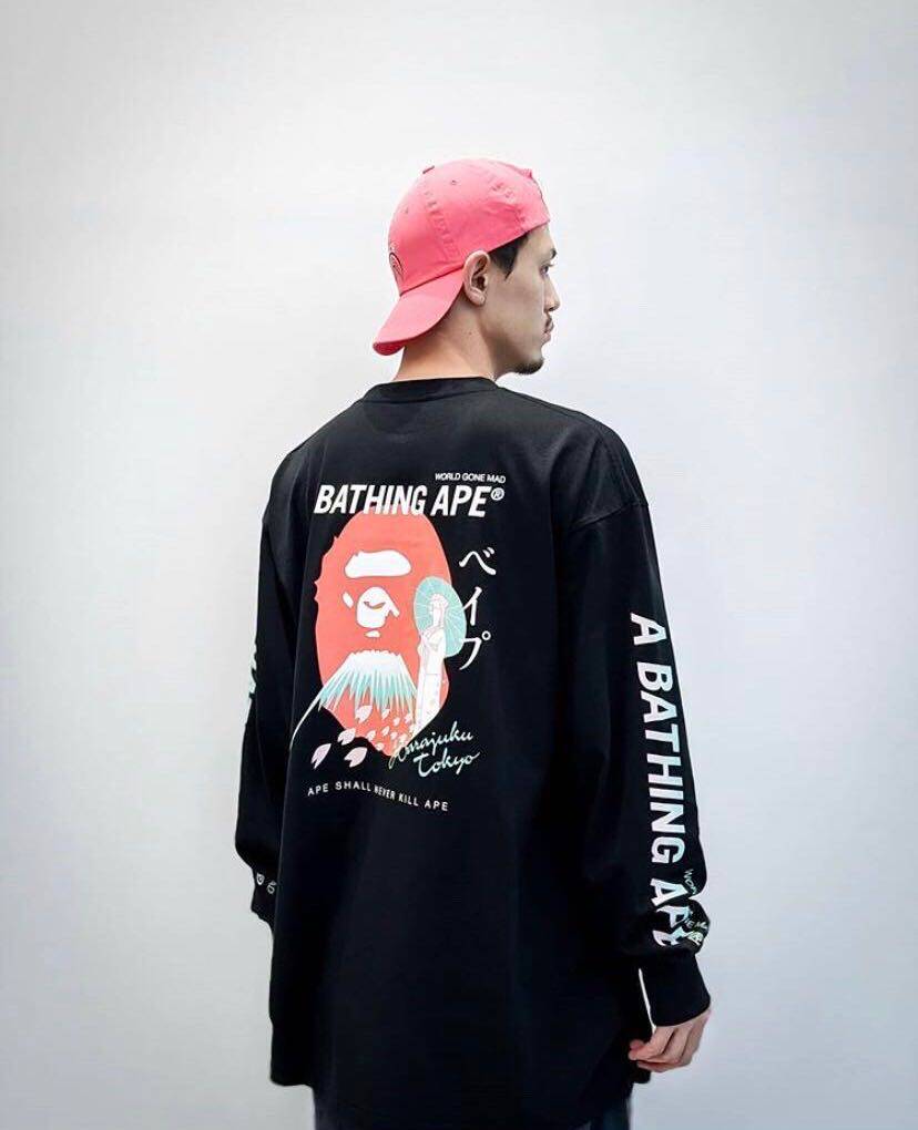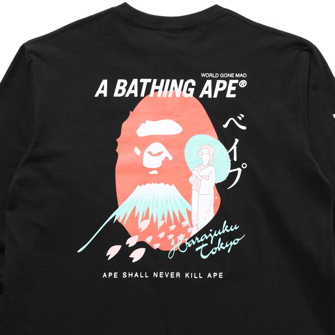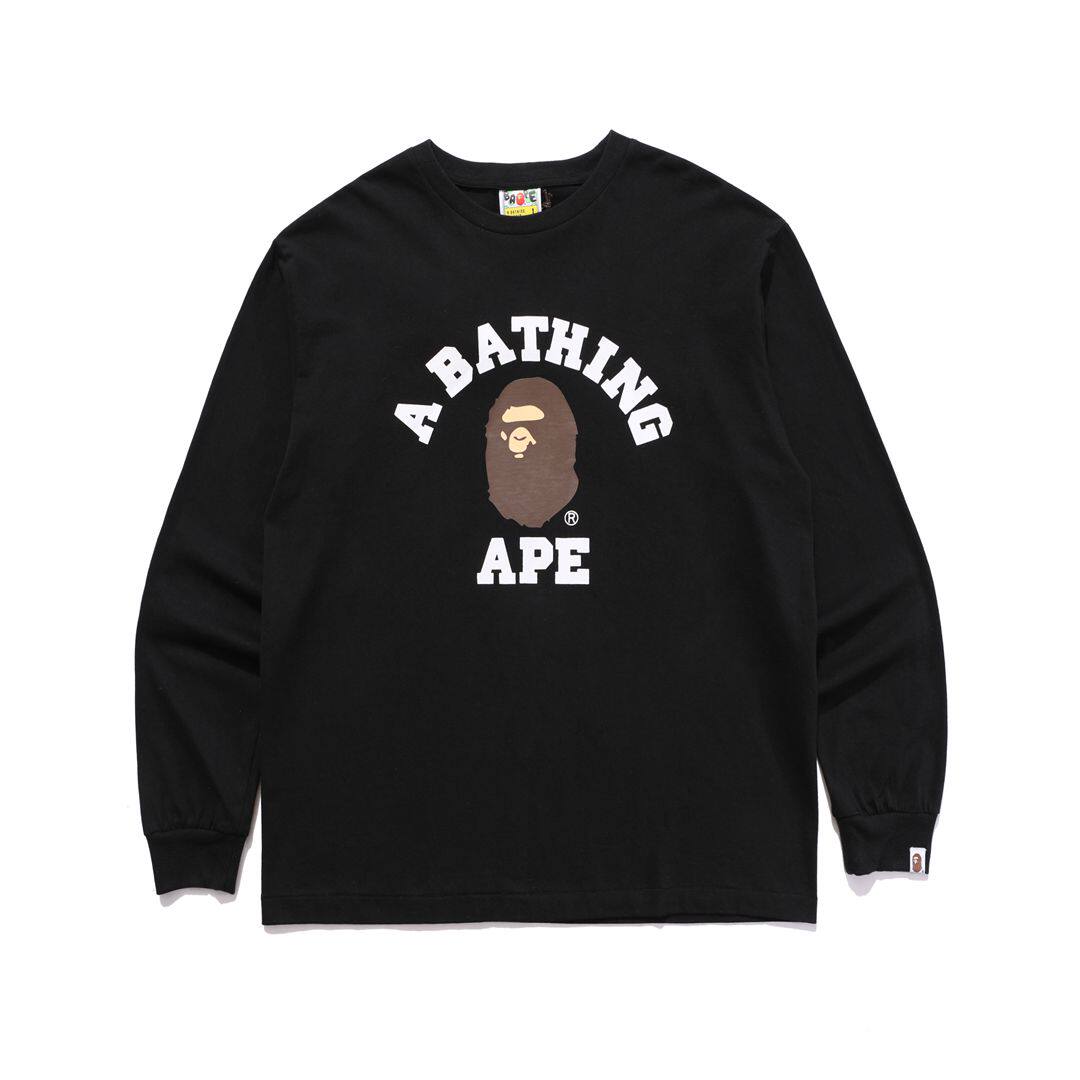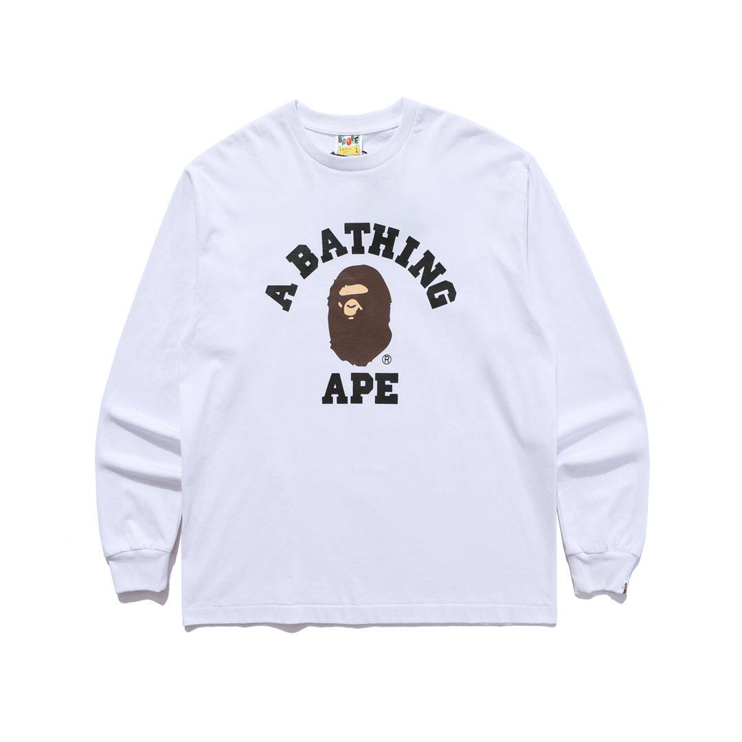 日本潮牌BAPE刺繡小標猿人頭藝妓鯊魚印花寬鬆潮流長袖T恤男女款
