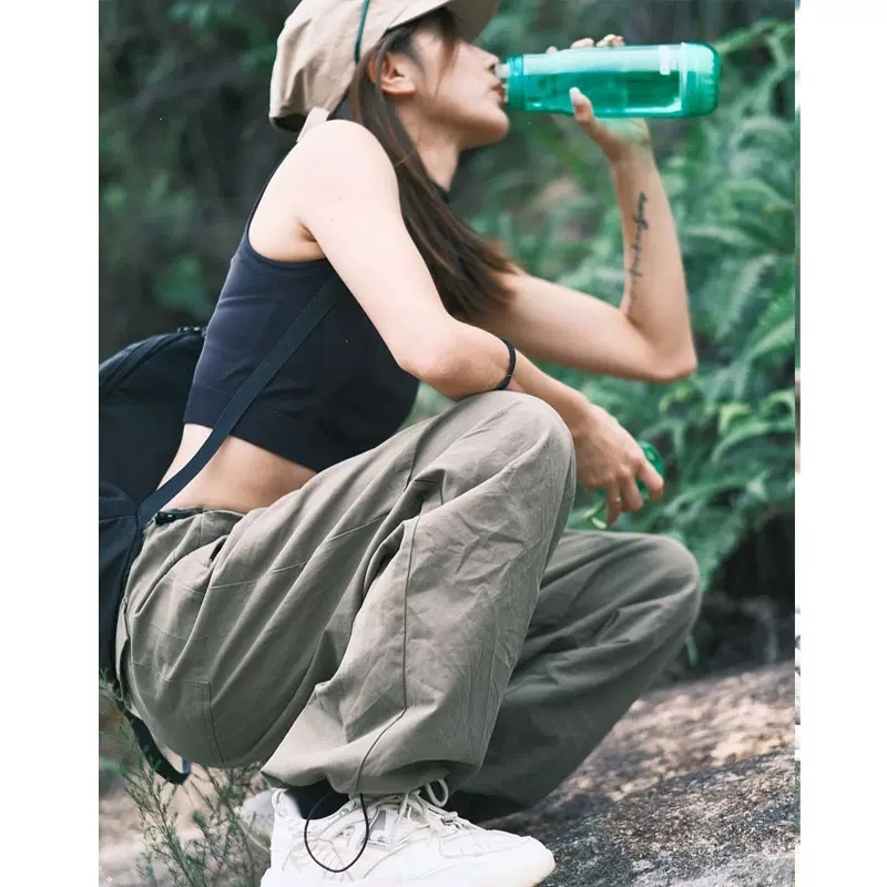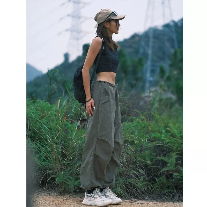 戶外防水褲子女小個子軍綠色美式工裝褲vibe風爬山穿搭登山衝鋒褲