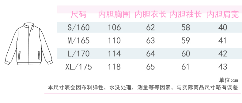 尺碼 S160 M165 L170 XL175