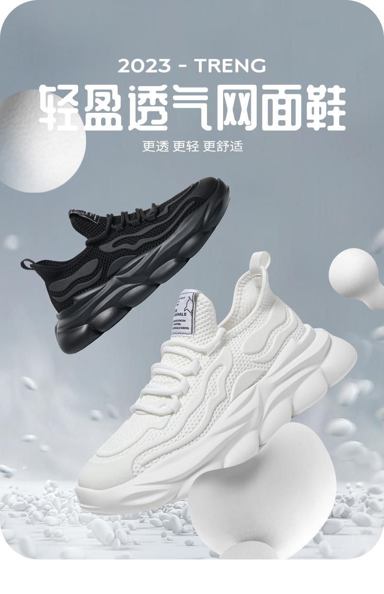 馬克華菲網面鞋男老爹透氣男鞋夏季2023新款白色運動鞋男士休閒鞋