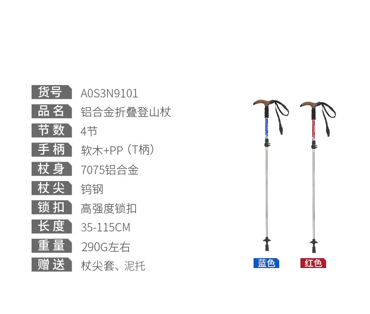 顏色分類 75%的顧客購買2支,更省力更實惠 入門款2支裝【更省力】T型柄伸縮 紅色A2LYTC149 入門款2支裝【更省力】T型柄伸縮 藍色A2LYTC148 【揹包套餐】入門款登山杖+負重揹包包 B2JYTC622 【防曬帽套餐】入門款登山杖+UPF50防曬帽B2JYTC643 【遮陽帽套餐】入門款登山杖+遮陽帽 B2JYTC621 【輕量化】碳素-直柄,伸縮 黑色A0W3N9103-1 【入門款】鋁合金-T型柄,伸縮 藍色2SA7D42-1A 【入門款】鋁合金-T型柄,伸縮 紅色2SA7D42-1A 【入門款】鋁合金-T型柄,伸縮 黑色2SA7D42-1A 【入門款】鋁合金-T型柄,伸縮 銀色2SA7D42-1A 【入門款】鋁合金-直柄,伸縮 藍色2SA7D41-1A 【入門款】鋁合金-直柄,伸縮 紅色2SA7D41-1A 【入門款】鋁合金-直柄,伸縮 黑色2SA7D41-1A 【老人款】鋁合金-T型柄,摺疊 紅色A0S3N9101 【老人款】鋁合金-T型柄,摺疊 藍色A0S3N9101 【戈壁沙漠】70鋁合金-直柄,摺疊 茶金1142253015 【戈壁沙漠】70鋁合金-直柄,摺疊 赤焰紅1142253015 【夜晚螢光】鋁合金-直柄,伸縮 玫紅T1S3N9101 【夜晚螢光】鋁合金-直柄,伸縮 螢光黃T1S3N9101 【夜晚螢光】鋁合金-直柄,伸縮 螢光綠T1S3N9101 【徒步助走】鋁合金-直柄,摺疊 紅色A0S3N9102 【徒步助走】鋁合金-直柄,摺疊 藍色A0S3N9102 【輕量化】碳素-T型柄,伸縮 紅色A9W3M5109-1 【輕量化】碳素-T型柄,伸縮 黑色A9W3M5109-1 【高級款】碳素-直柄,摺疊 青綠色A0W3N9115-1 【高級款】碳素-直柄,摺疊 暗夜紅A0W3N9115-1 【高級款】碳素-直柄,摺疊 藍色A0W3N9115-1 1142253013,鈦合金 1142253013,青玉
