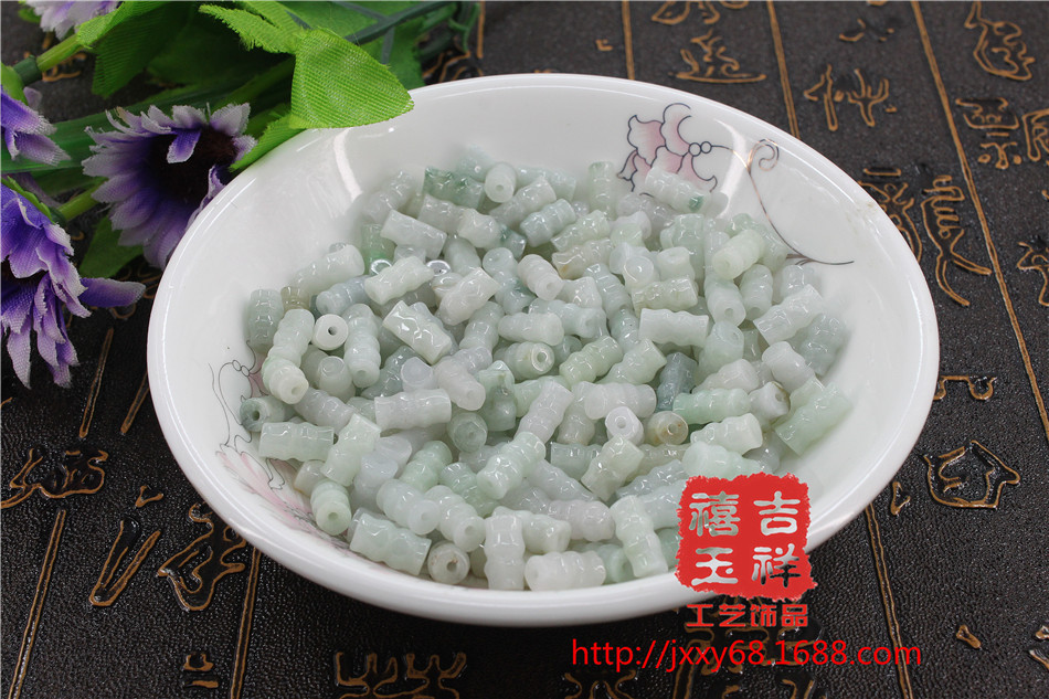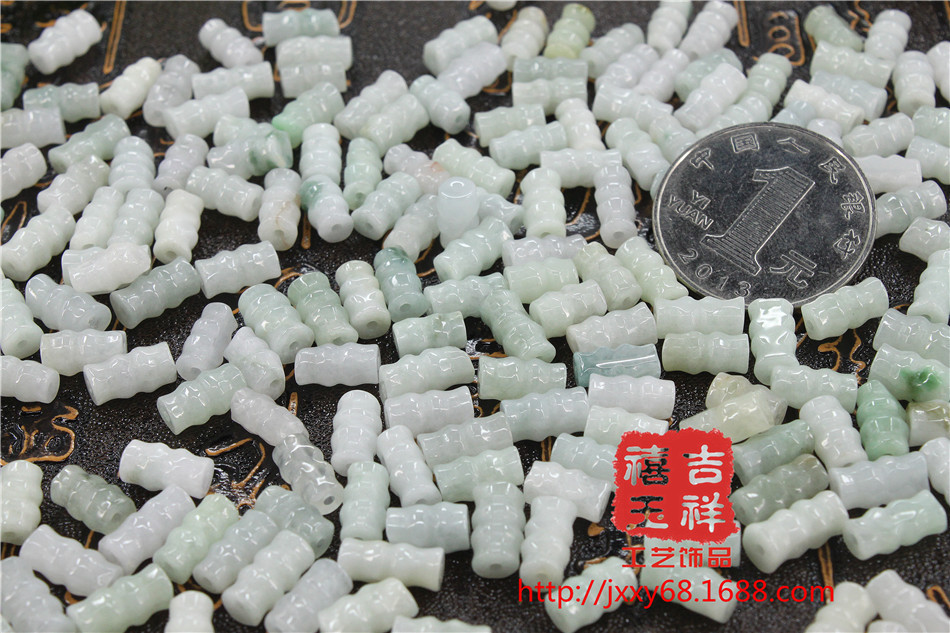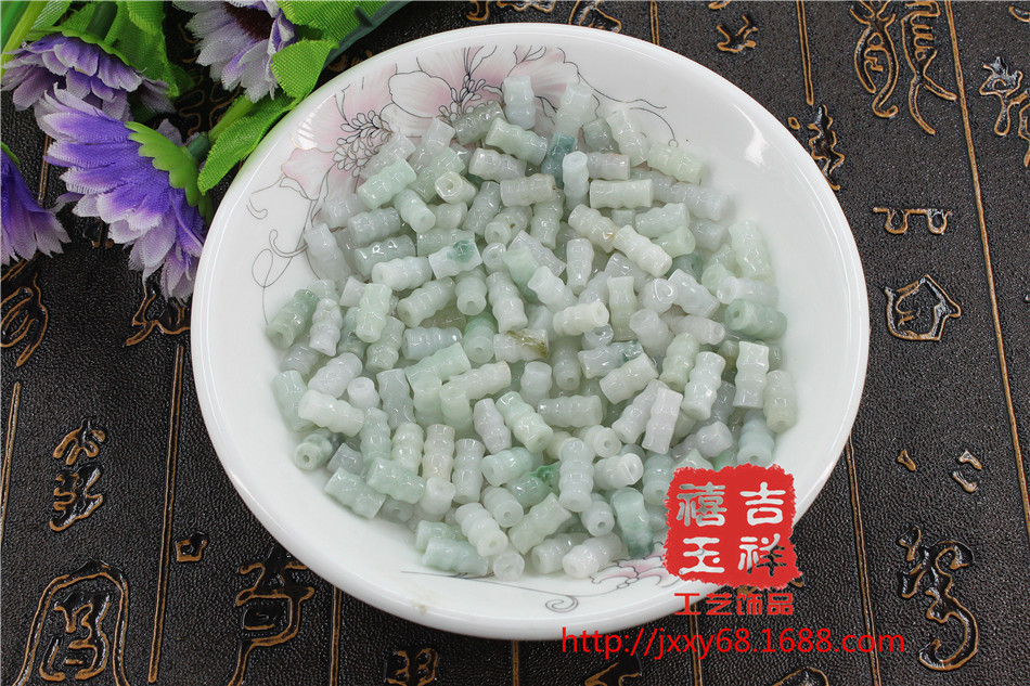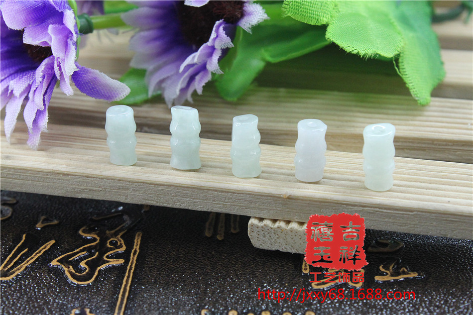 天然翡翠A货饰品玉竹节散珠节节高升翡翠配饰车挂包挂编织珠