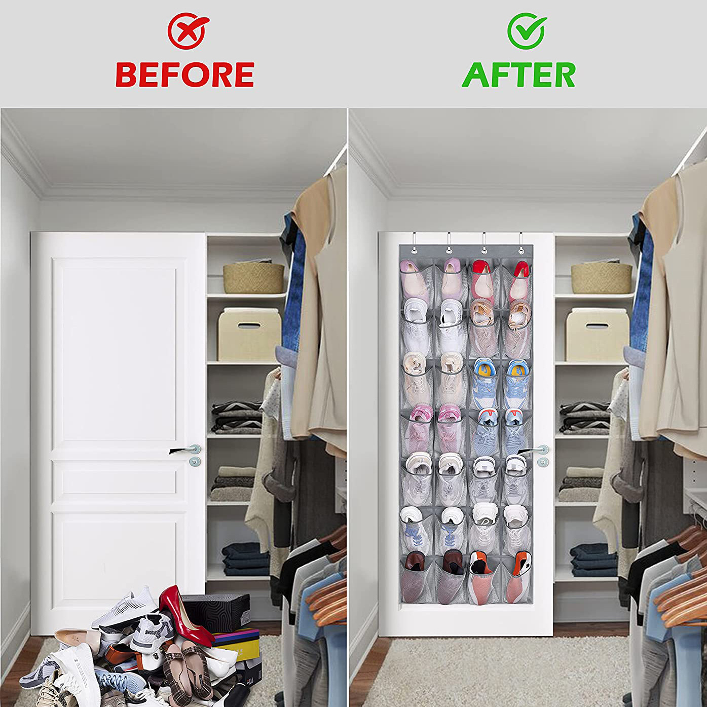 亚马逊新品28格无纺布门后透明网布帽鞋靴子衣柜大号多层收纳挂袋
