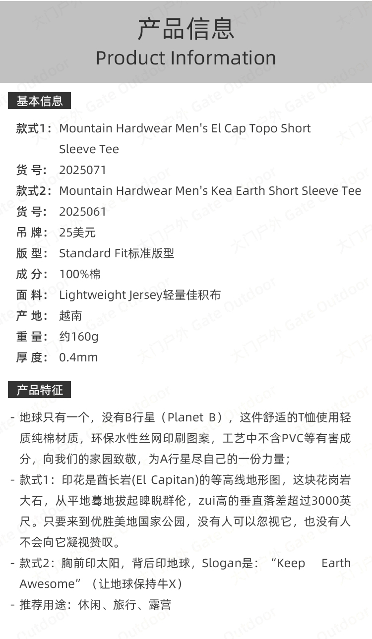 Mountain Hardwear山浩MHW男款短袖T恤純棉印花戶外休閒透氣23款