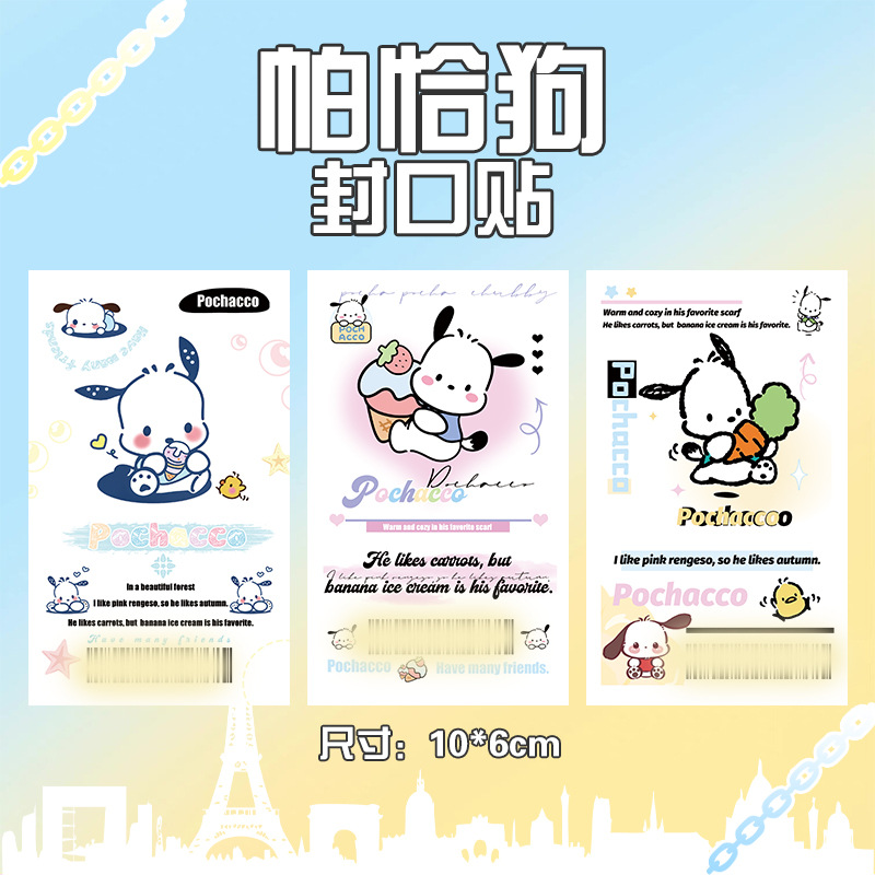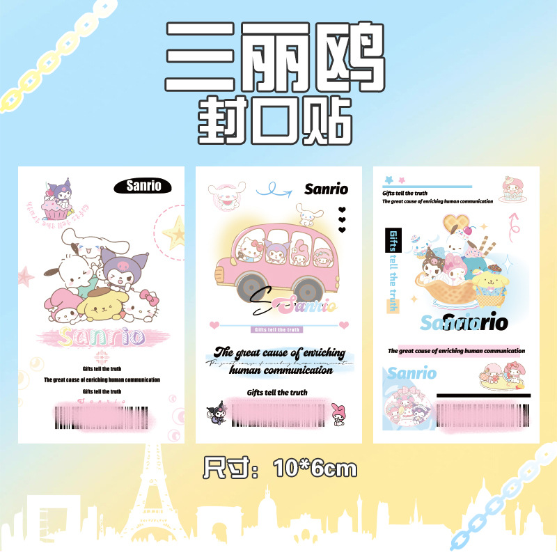 颜色 三丽鸥封口贴(30张1包),玉桂狗封口贴(30张1包),库洛米封口贴(30张1包),美乐蒂封口贴(30张1包),帕恰狗封口贴(30张1包),凯蒂猫封口贴(30张1包)