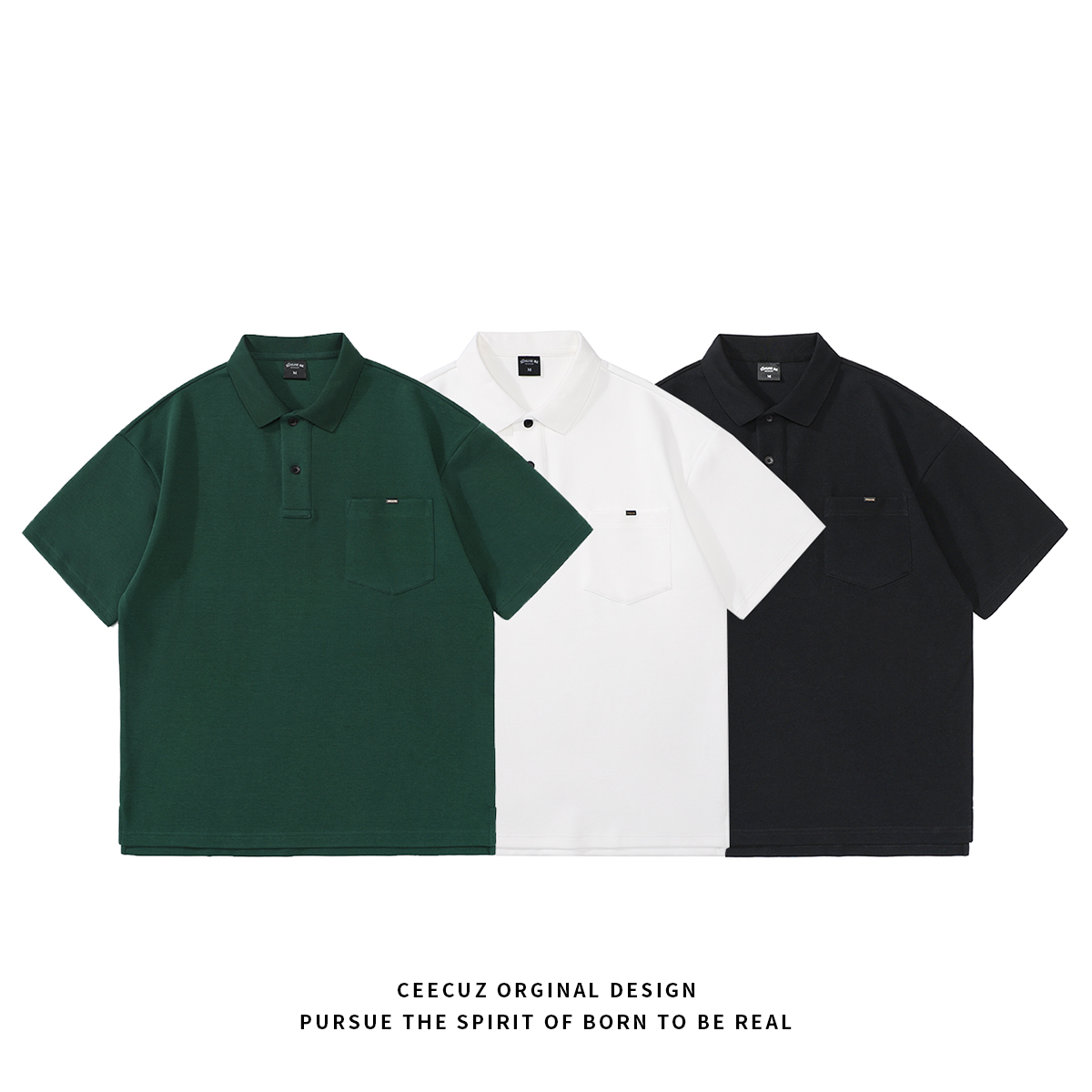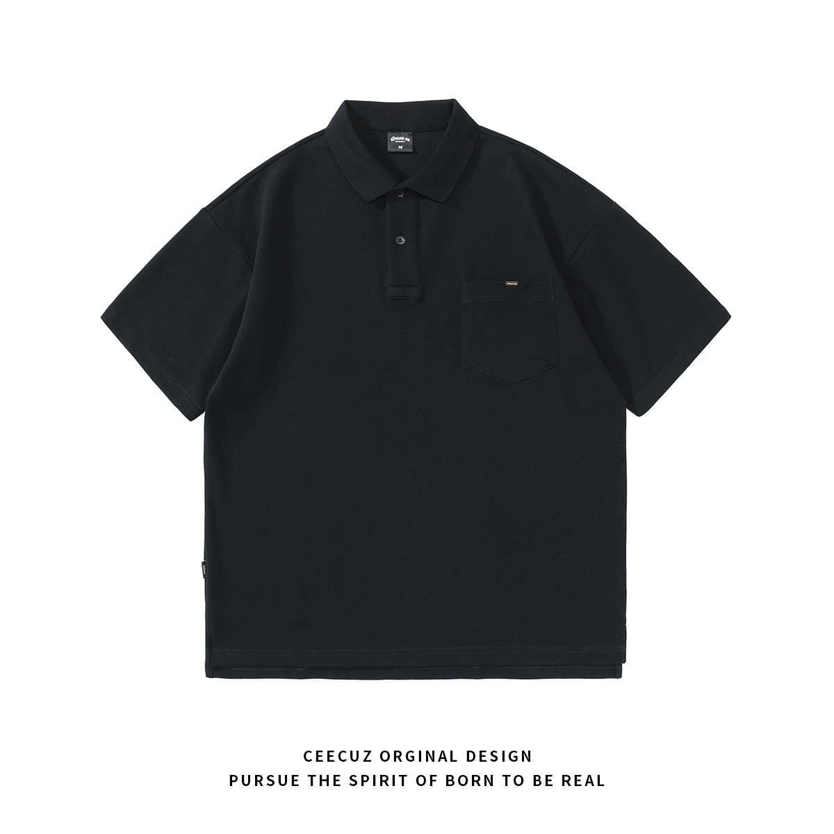 Ceecuz 300G重磅太空棉廓形短袖Polo衫男寬鬆潮流半袖T恤拉夫·勞倫馬球衫