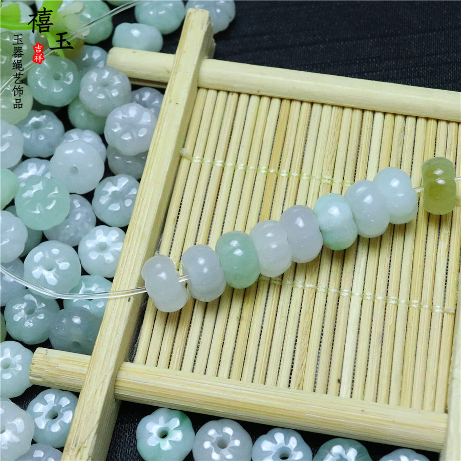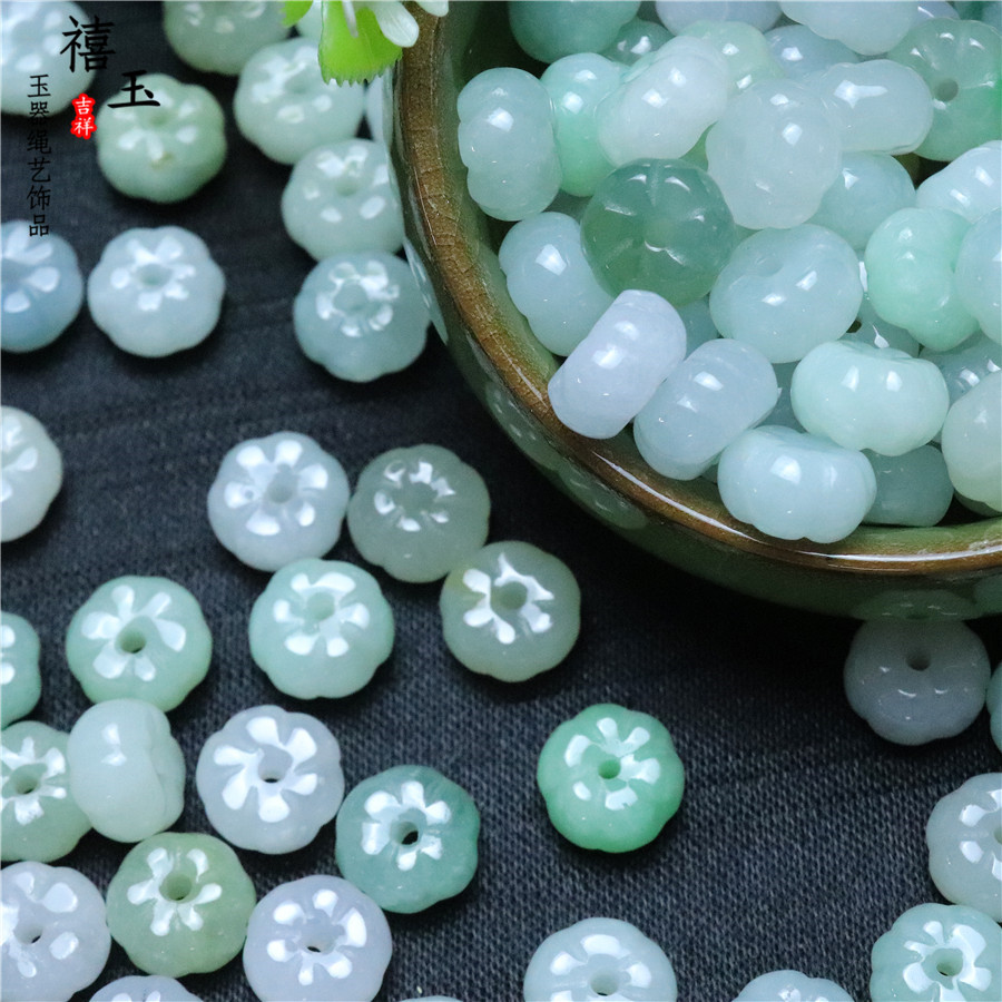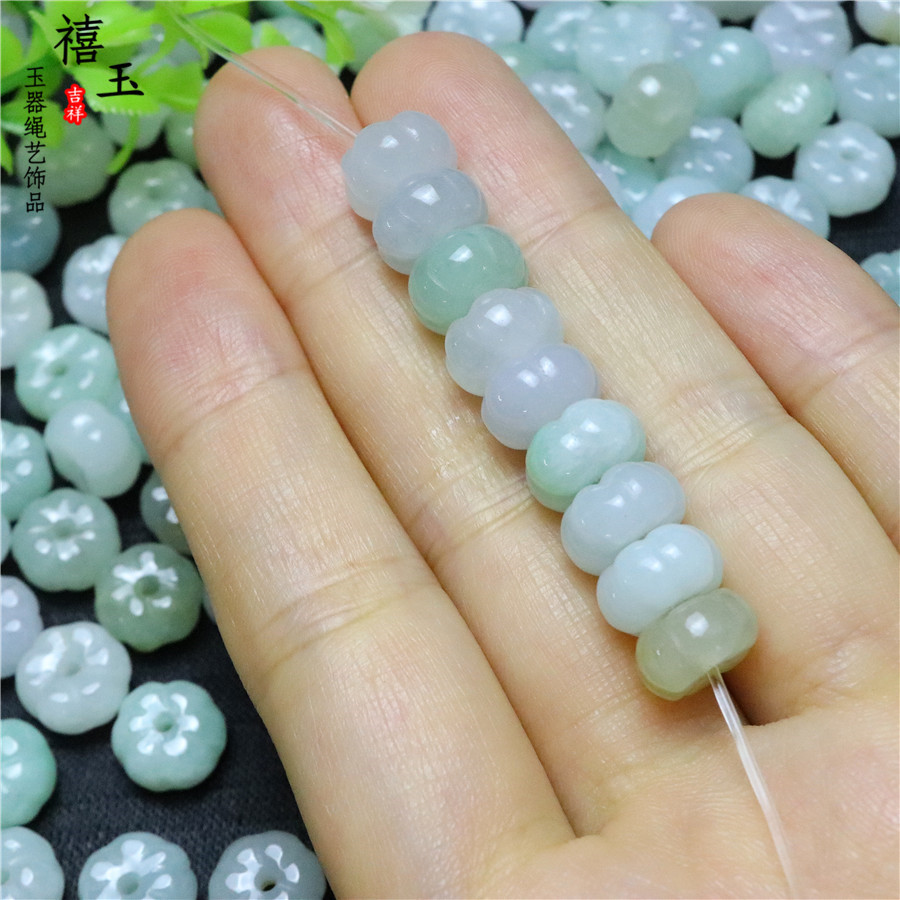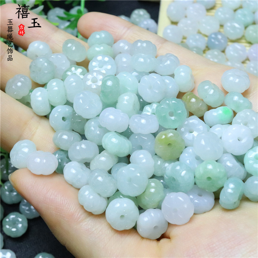 产地直销四会翡翠A货9mm南瓜珠扁型手工DIY珠链饰品配件批发散珠