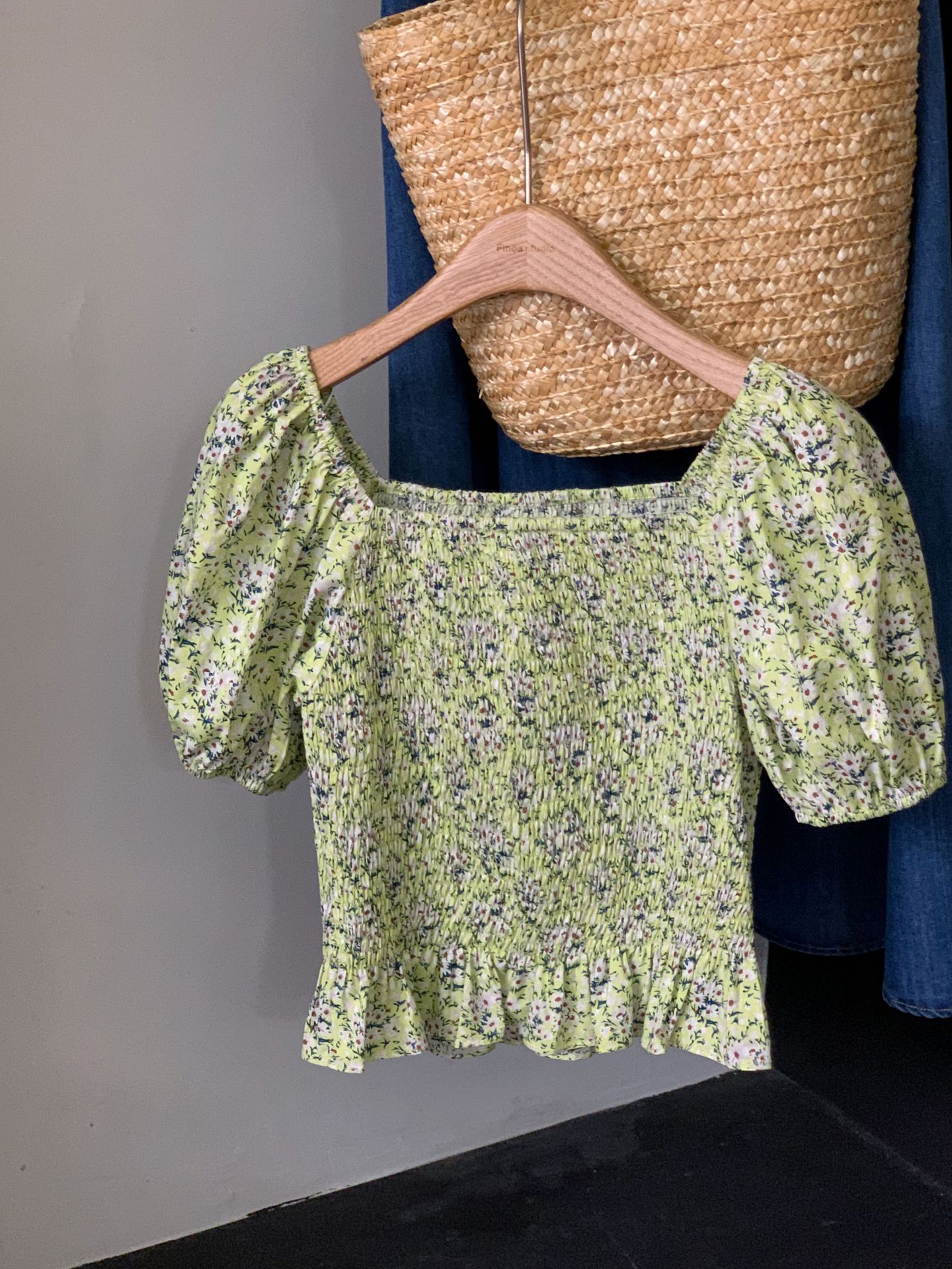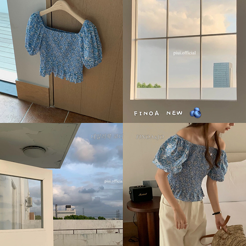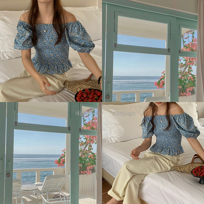 十三行清仓不退不换法式甜美碎花衬衫韩版清新一字肩上衣11156