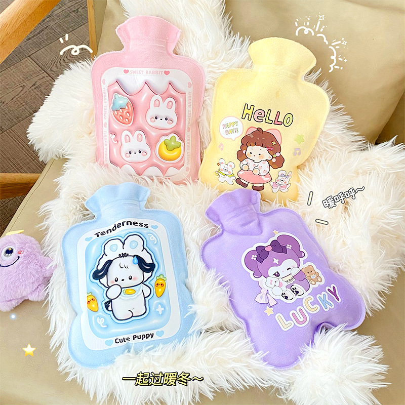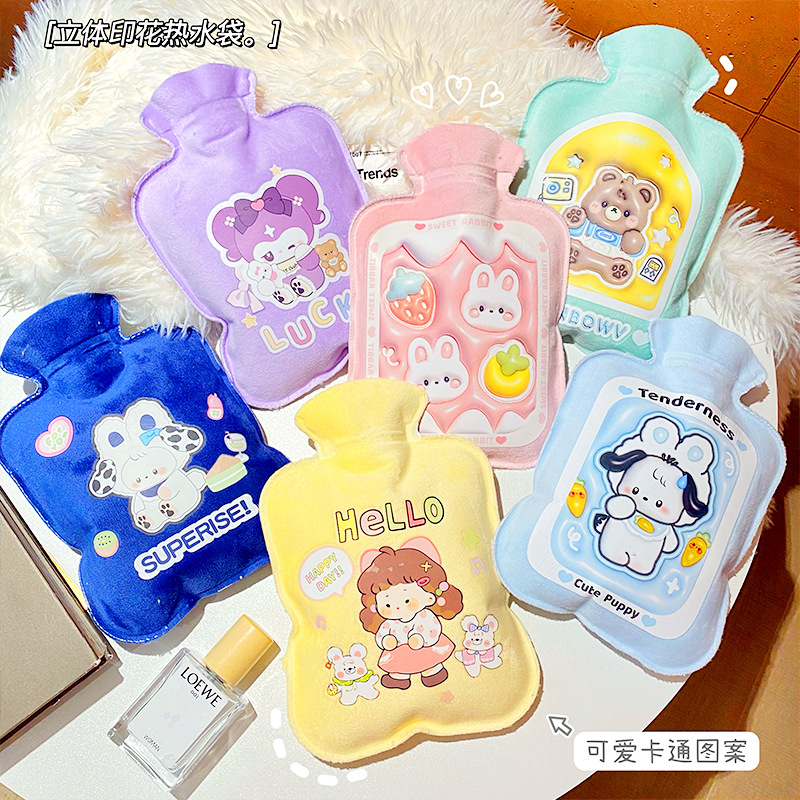 2023新款卡通立体热水袋550ml容量植绒暖水袋学生暖手灌水袋批发