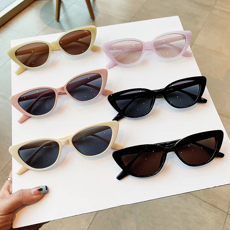 千艾新款复古小猫眼太阳镜 女潮素颜遮阳墨镜糖果色外贸跨境眼镜
