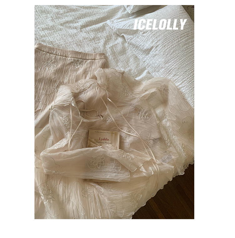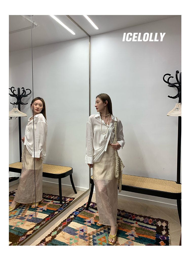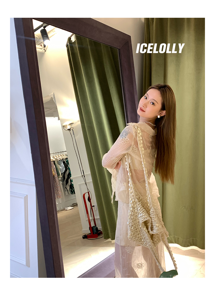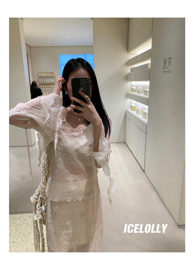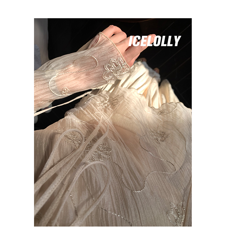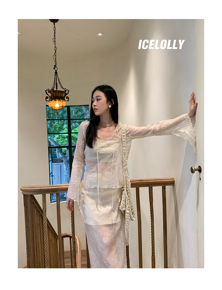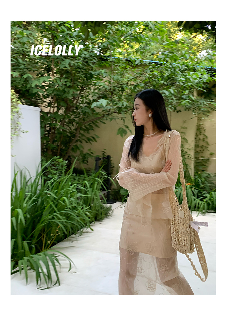 ICELOLLY長袖天絲襯衫女夏法式小衫獨特別致小上衣雪紡衫兩件式套裝