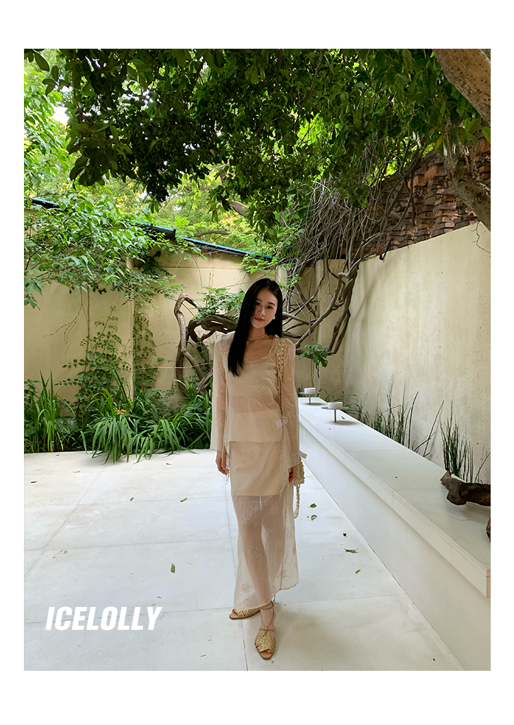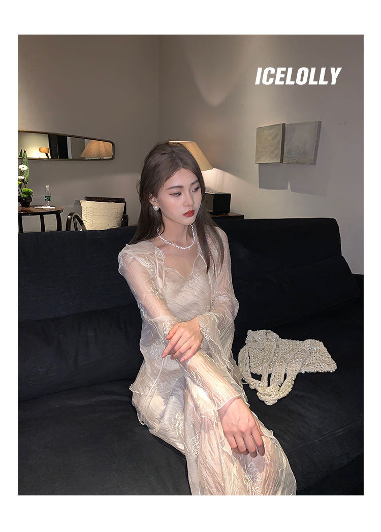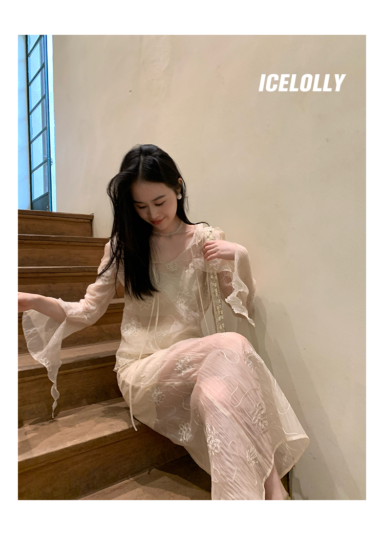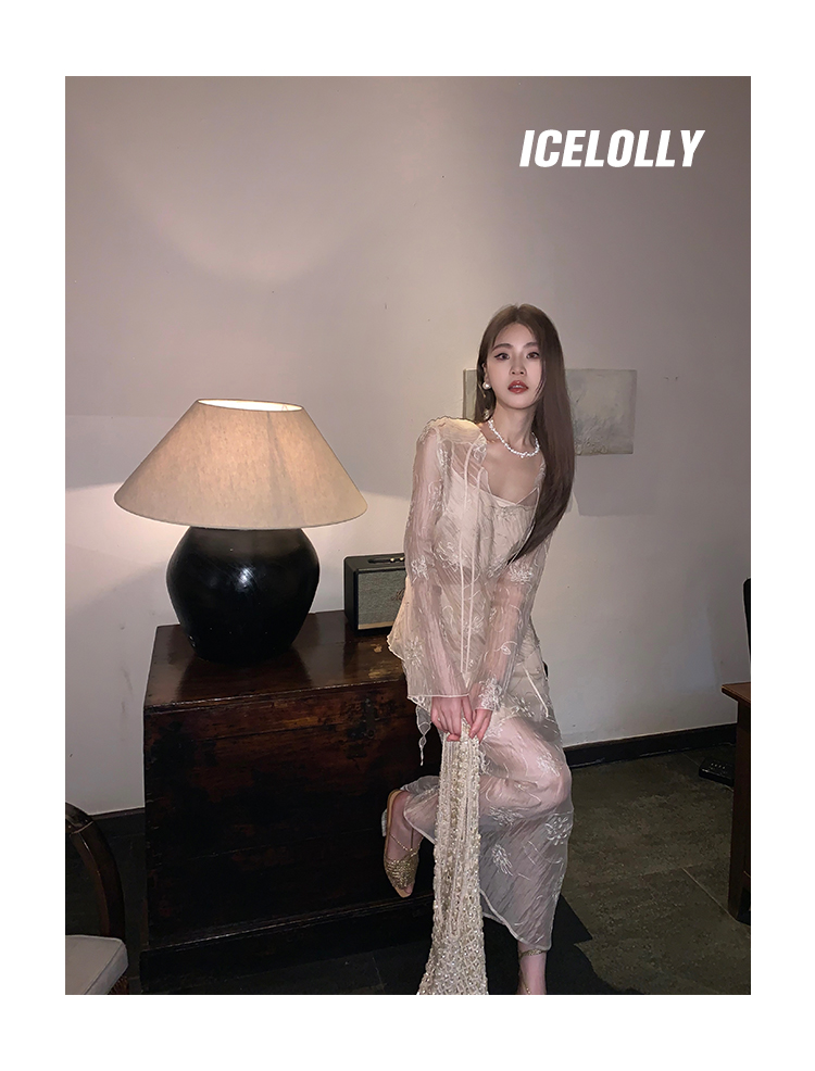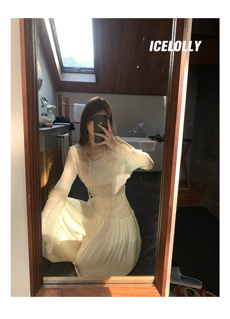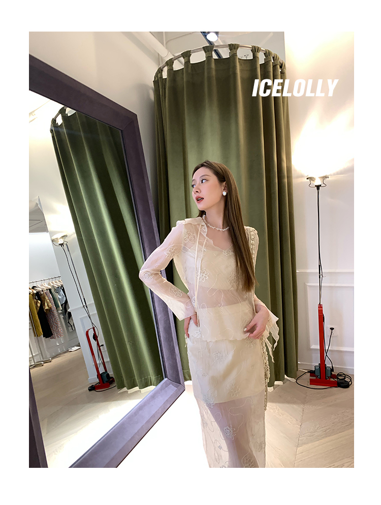 ICELOLLY長袖天絲襯衫女夏法式小衫獨特別致小上衣雪紡衫兩件式套裝