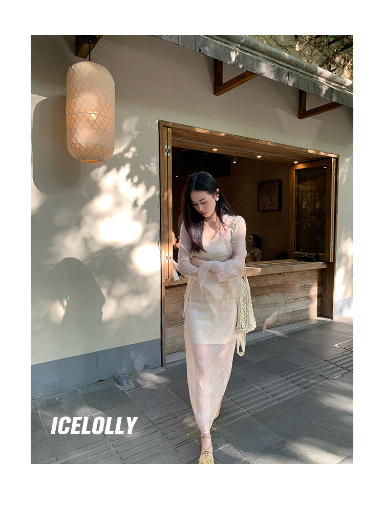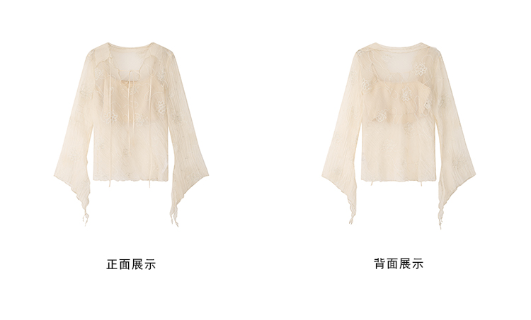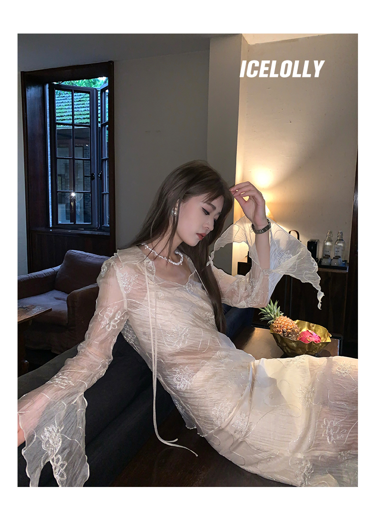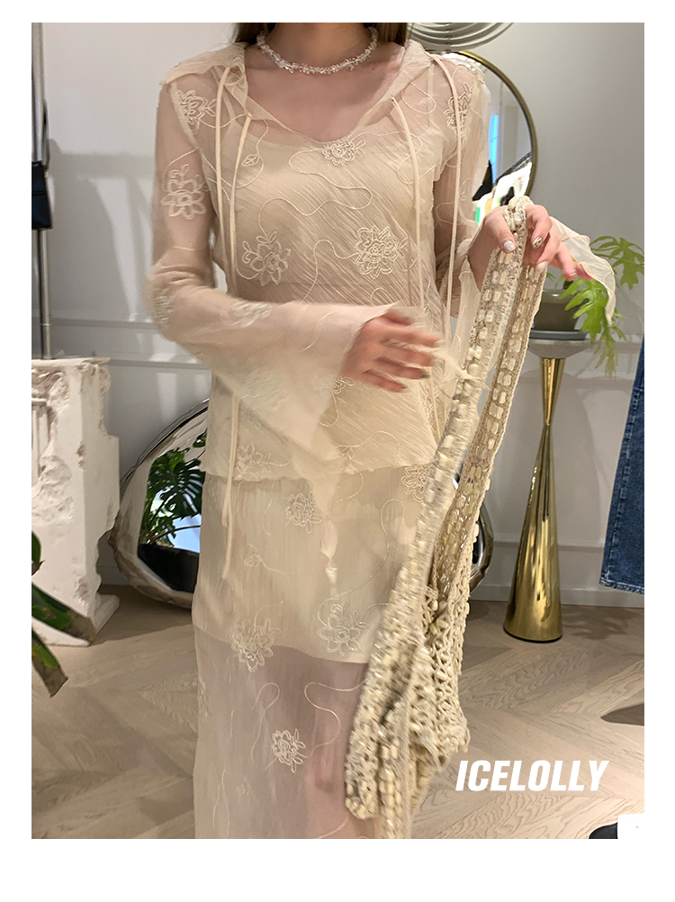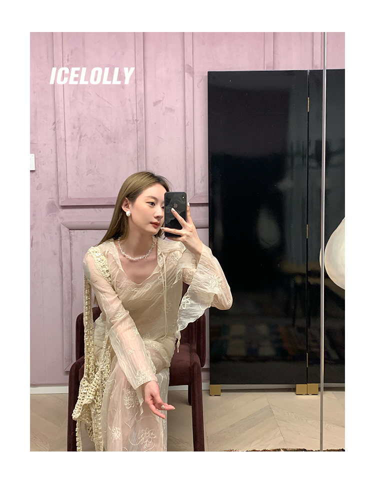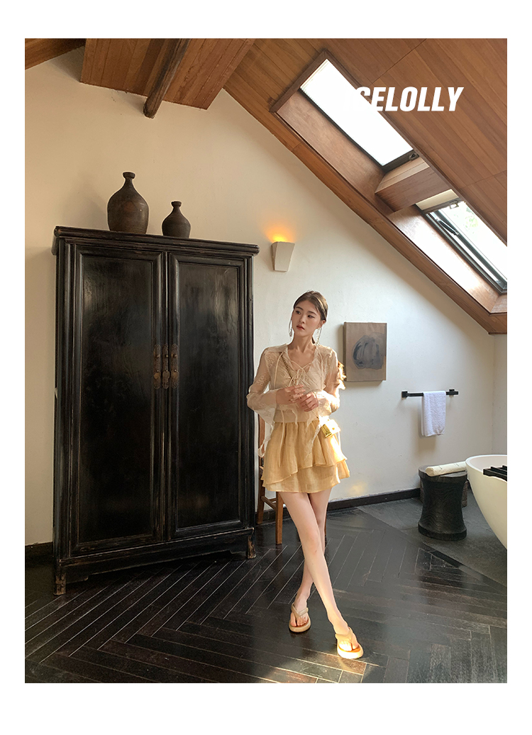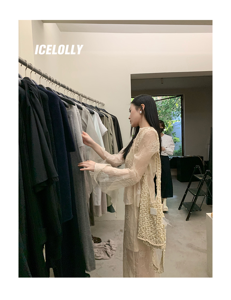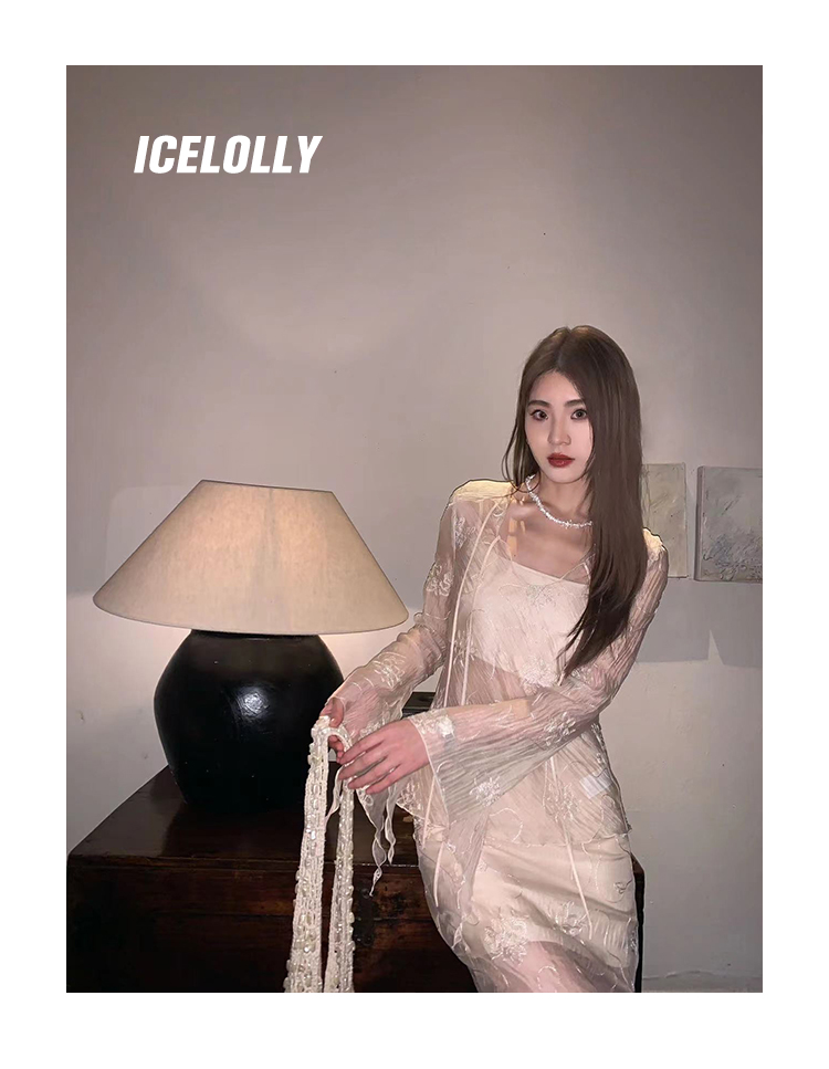 ICELOLLY長袖天絲襯衫女夏法式小衫獨特別致小上衣雪紡衫兩件式套裝