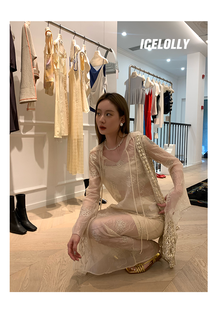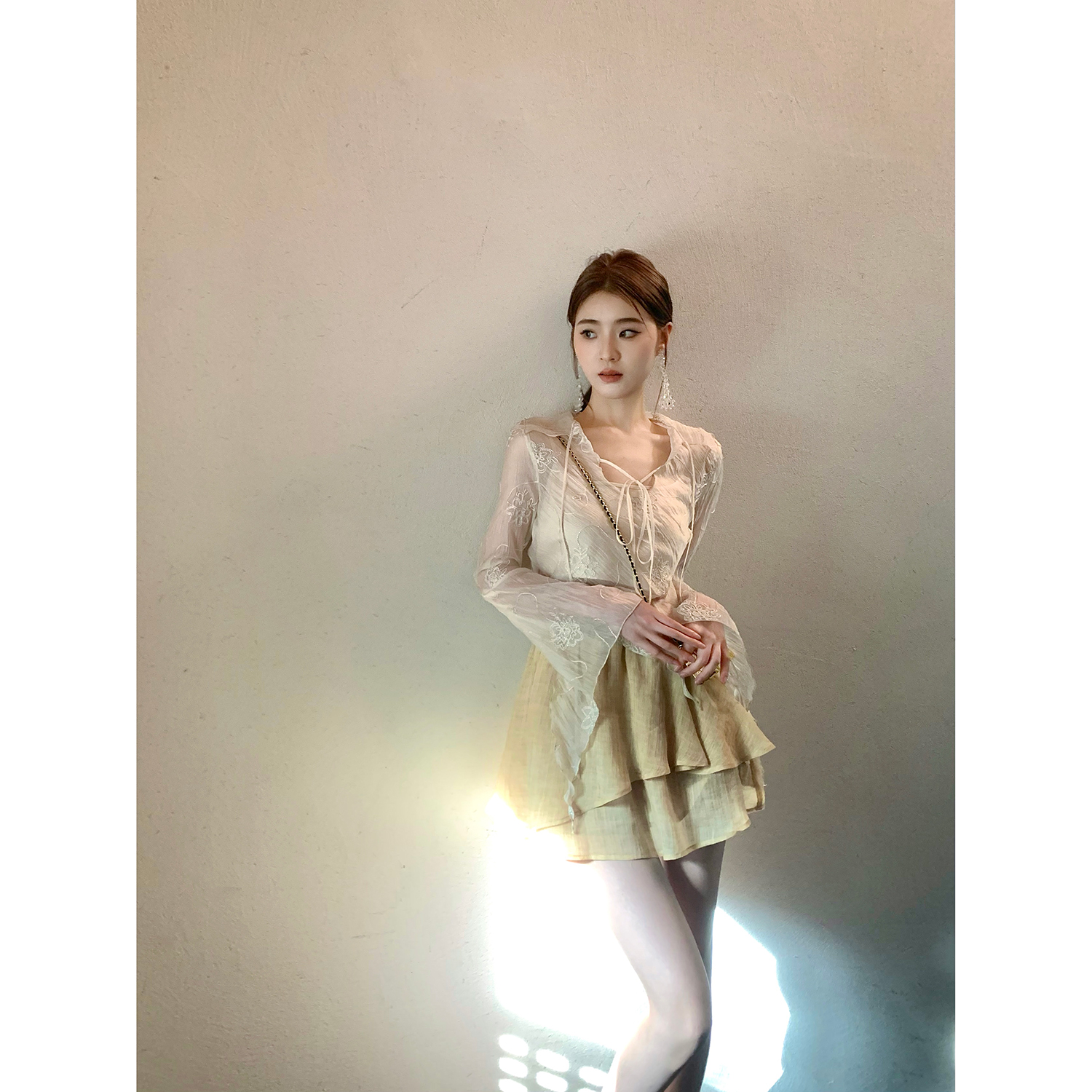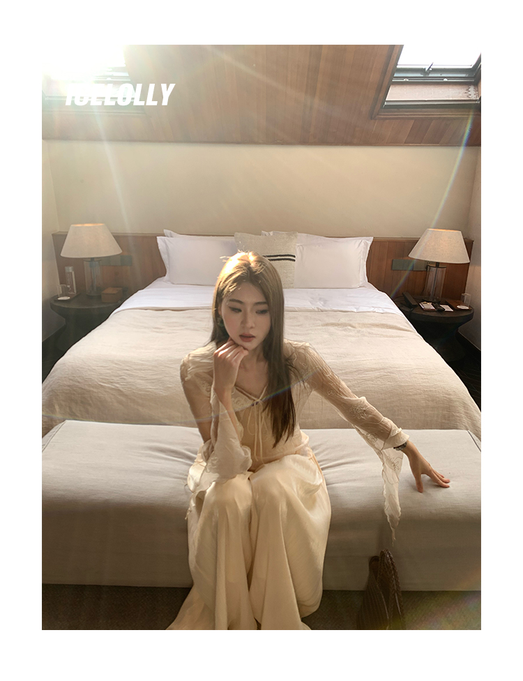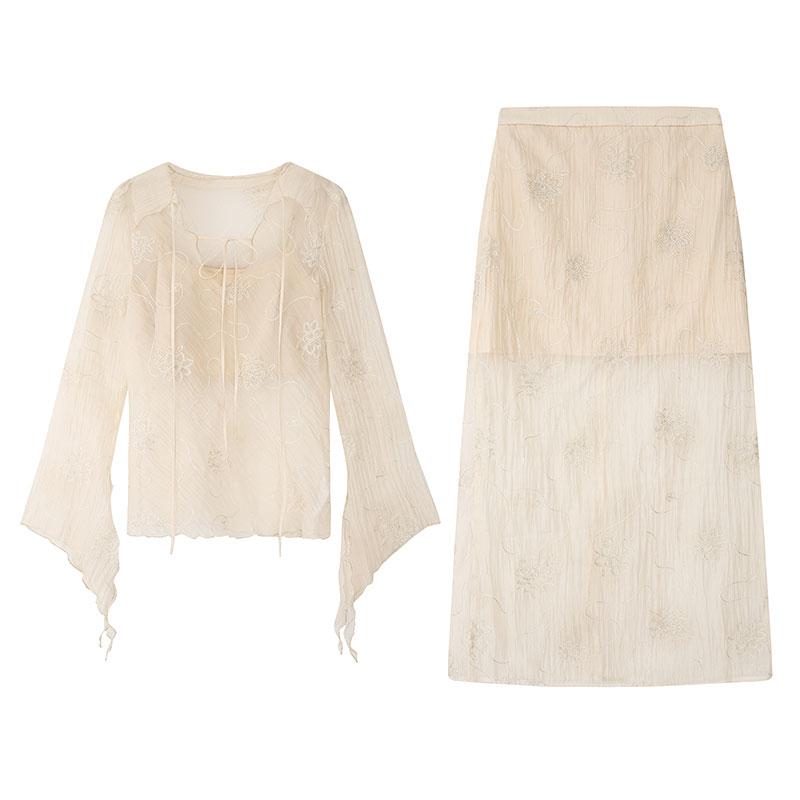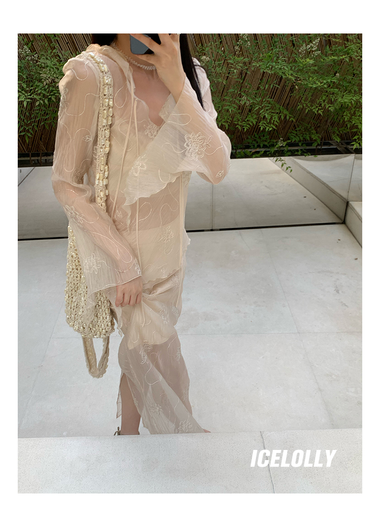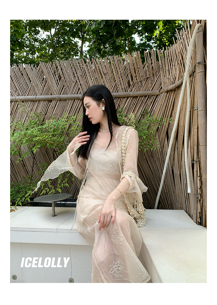 ICELOLLY長袖天絲襯衫女夏法式小衫獨特別致小上衣雪紡衫兩件式套裝