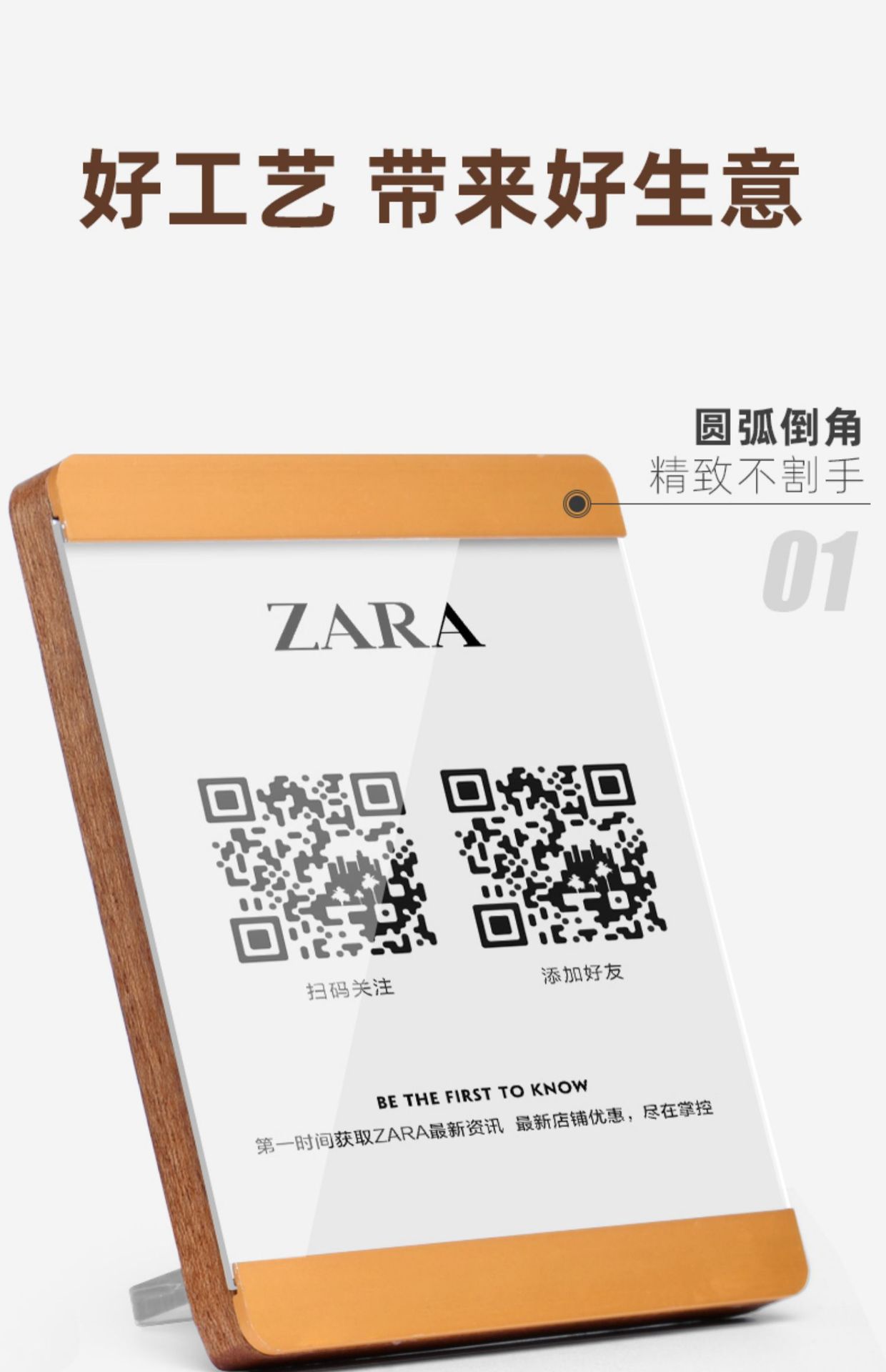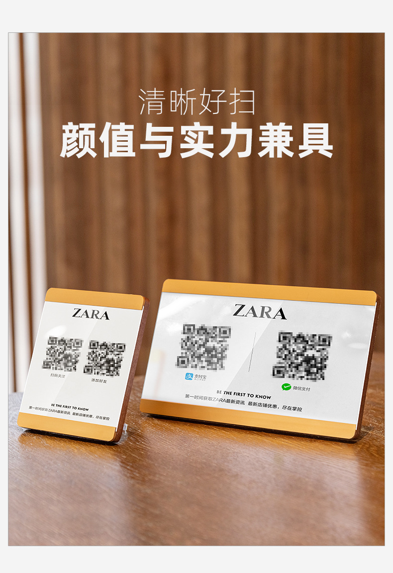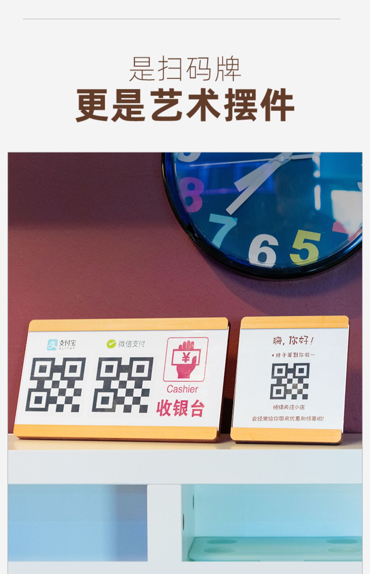 sviao/速销宝 二维码支付收钱码牌 原木扫码牌摆台桌牌架子牌打印