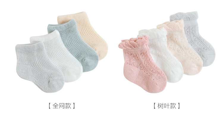 23新品婴儿袜子夏季超薄网眼新生儿童袜宝宝防蚊透气可爱无骨短袜
