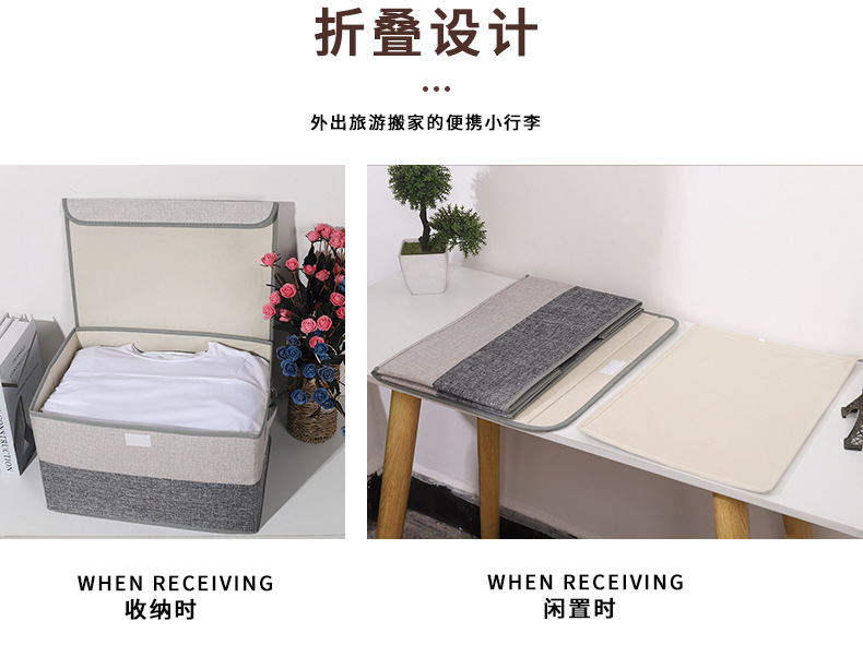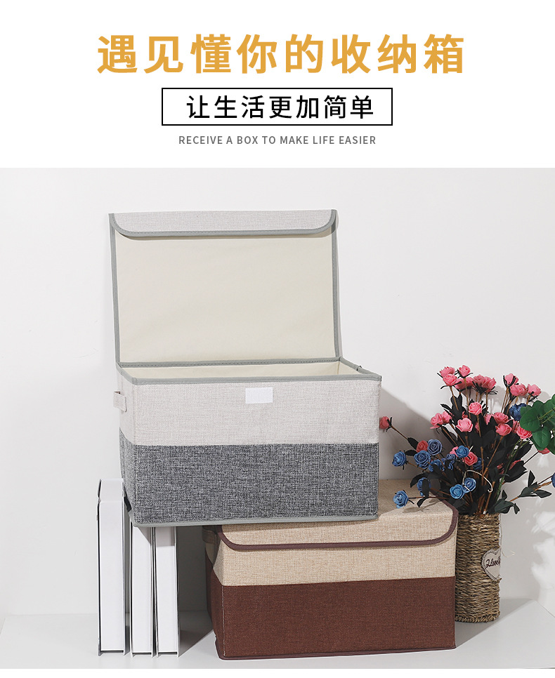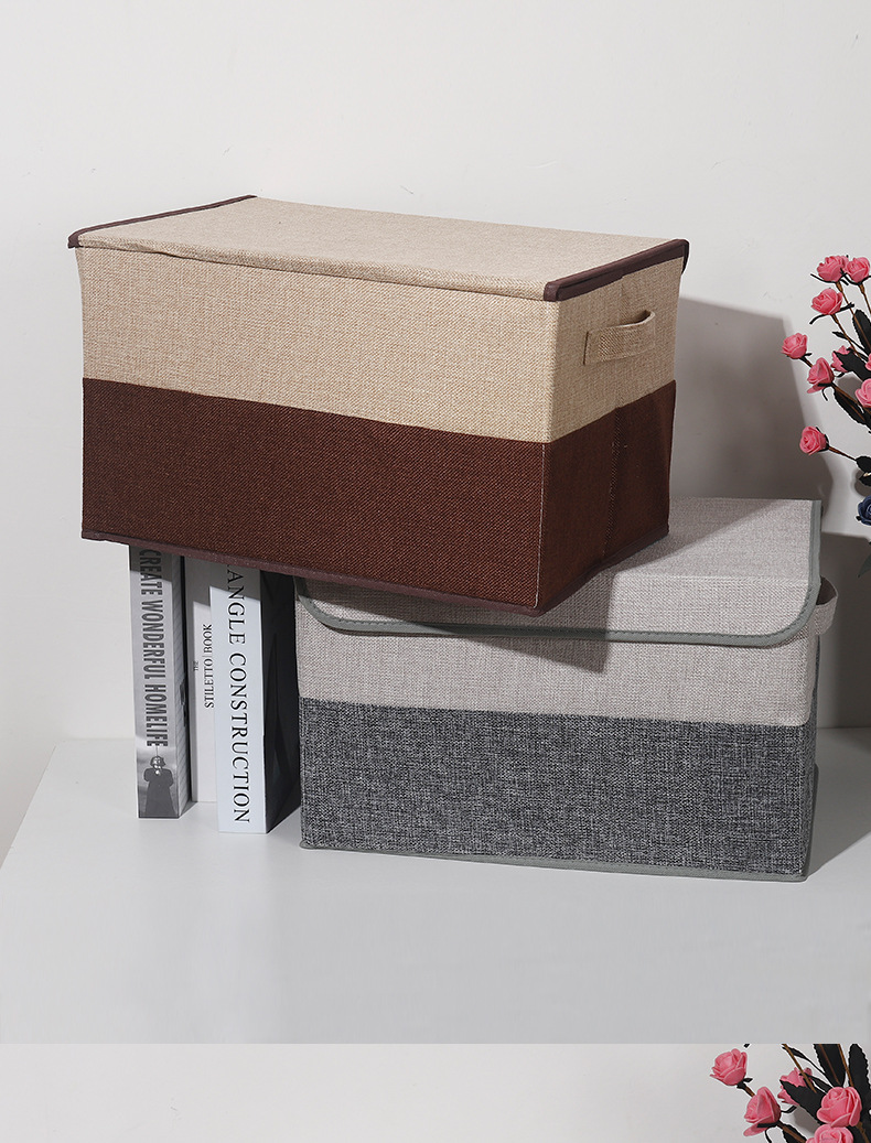 加厚收纳箱厂家直销韩式可折叠衣物整理箱优质棉麻带盖收纳盒现货