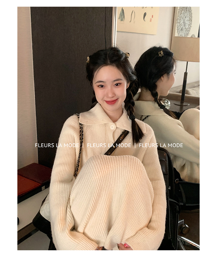 五折【非質量問題不退不換】FLEURS秋冬新款POLO領多種穿法針織