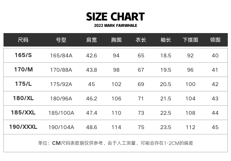 尺碼 165/S 170/M 175/L 180/XL 185/XXL 190/XXXL
