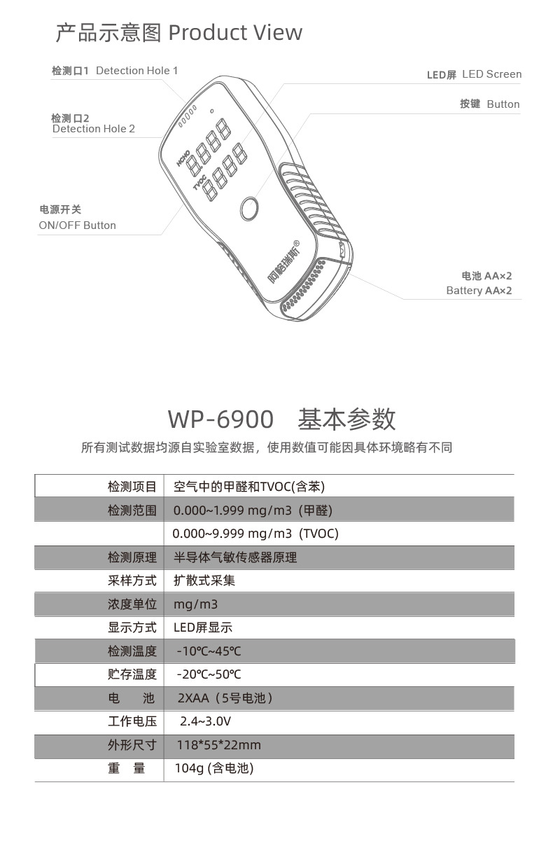 阿格瑞斯正品、WP6900甲醛检测仪、室内空气检测仪