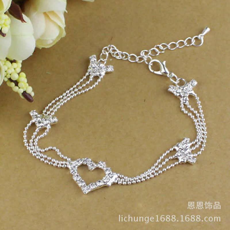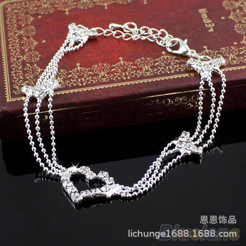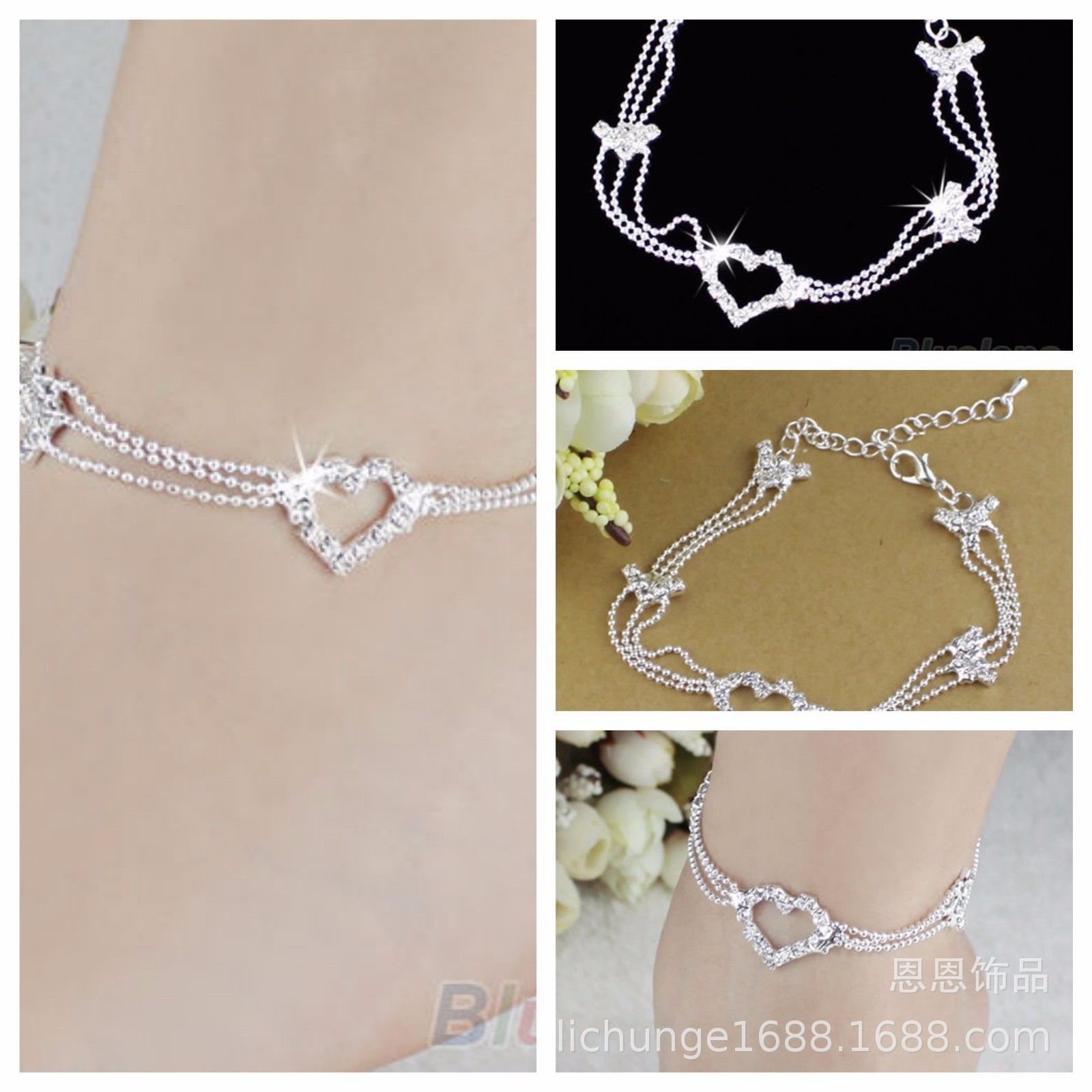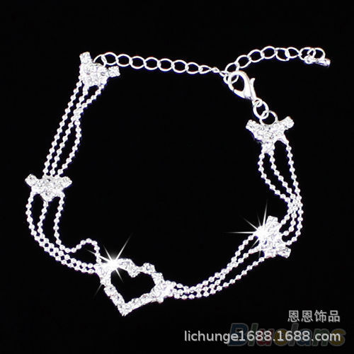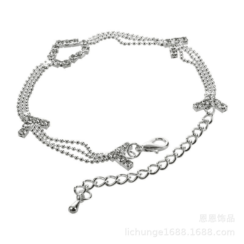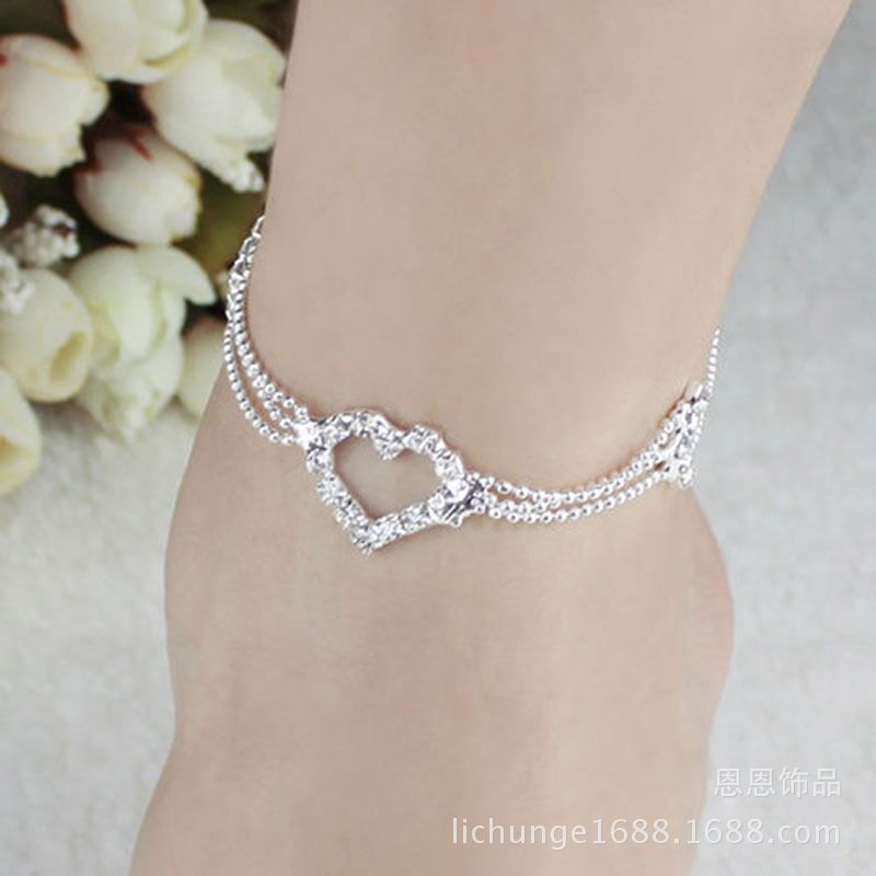 源头工厂精品镶钻心型脚链 女式三层心型新娘婚纱珠宝脚饰