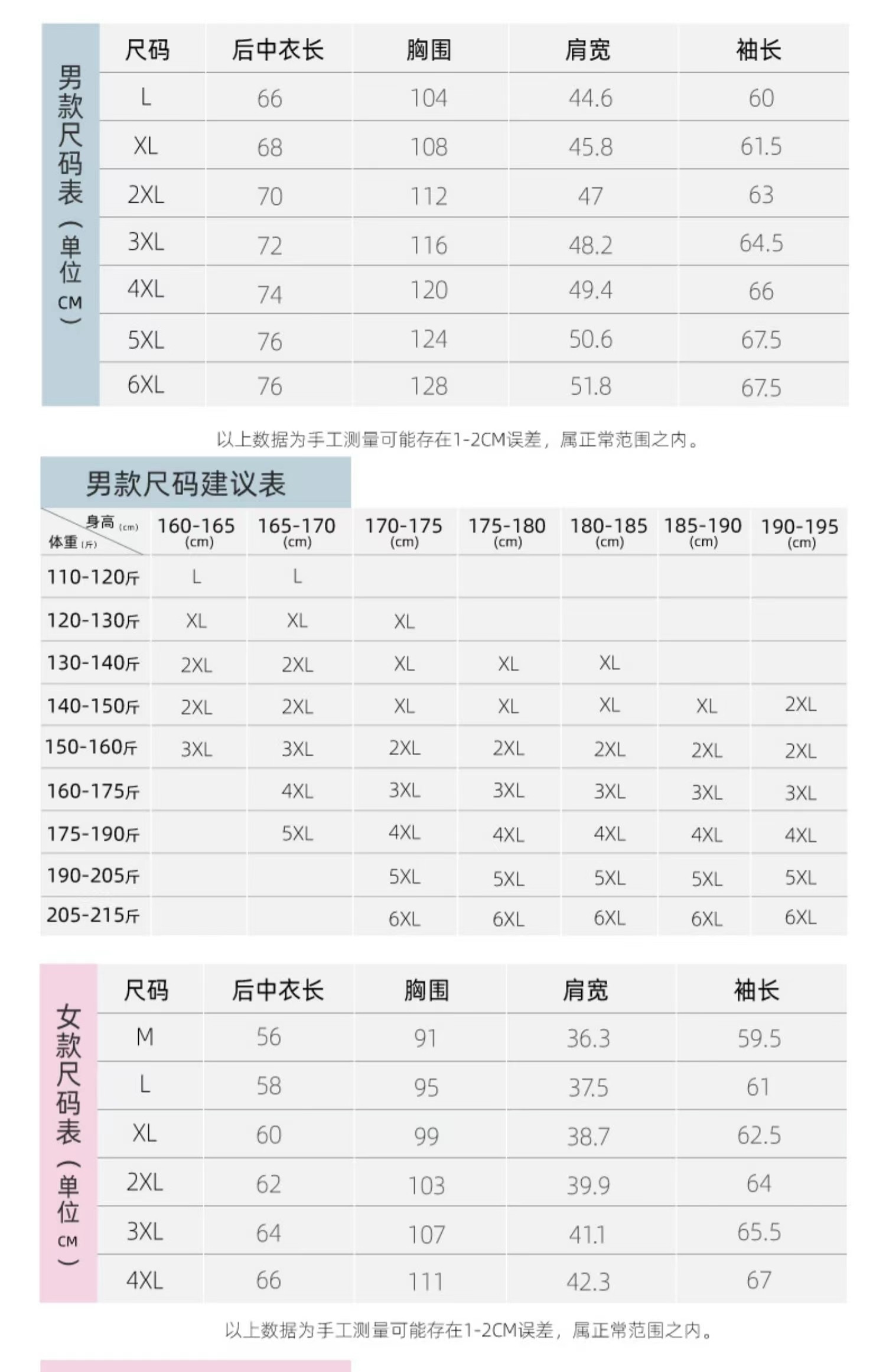 尺碼 M,L,XL,XXL,XXXL,4XL,5XL,6XL