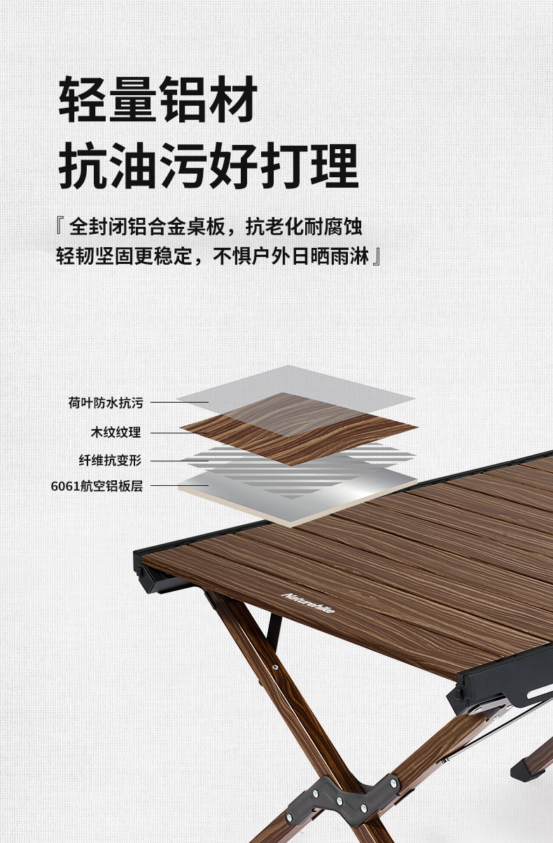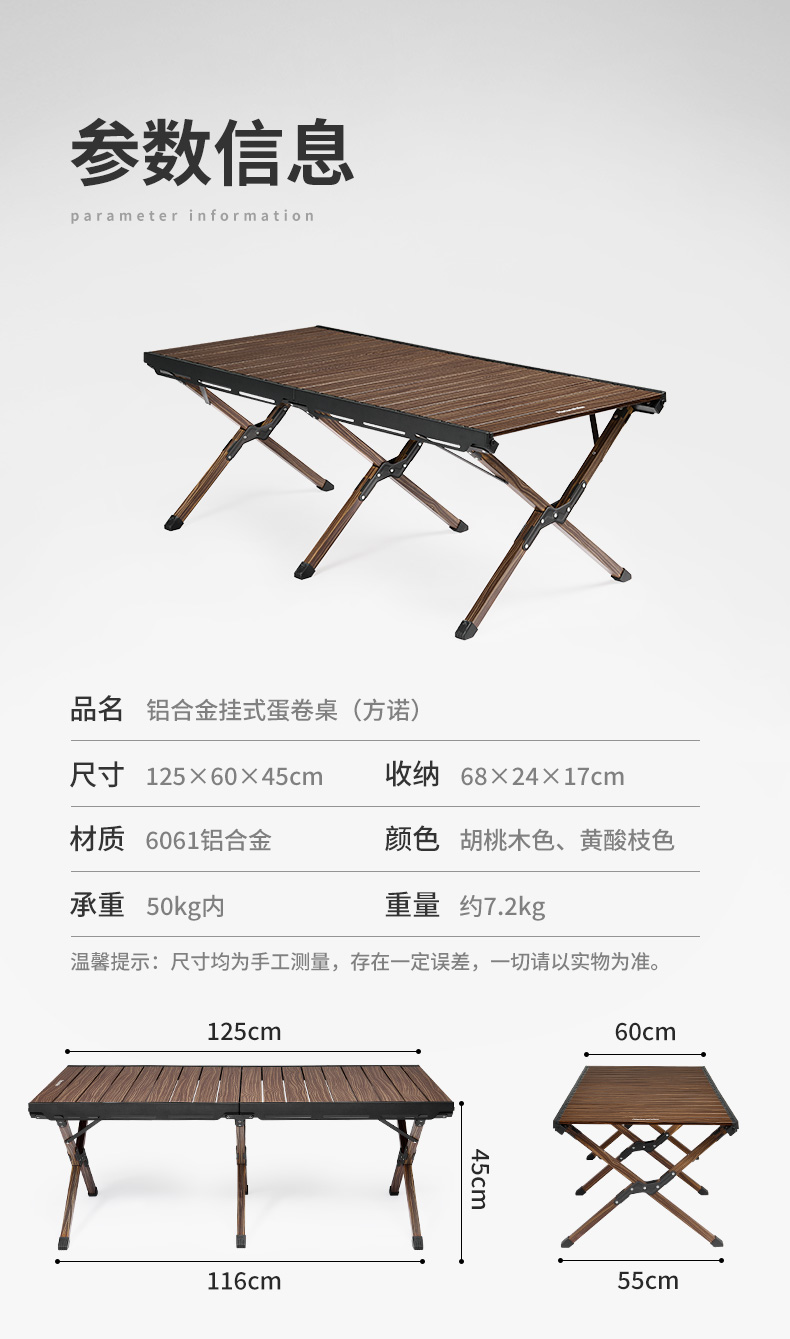 Naturehike挪客鋁合金蛋卷桌可攜式戶外露營摺疊桌露天野餐燒烤桌子