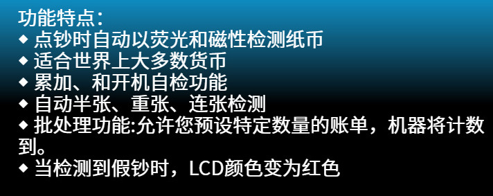 4. Batch function: allows you to preset a specific number of bills that the machine will count up to