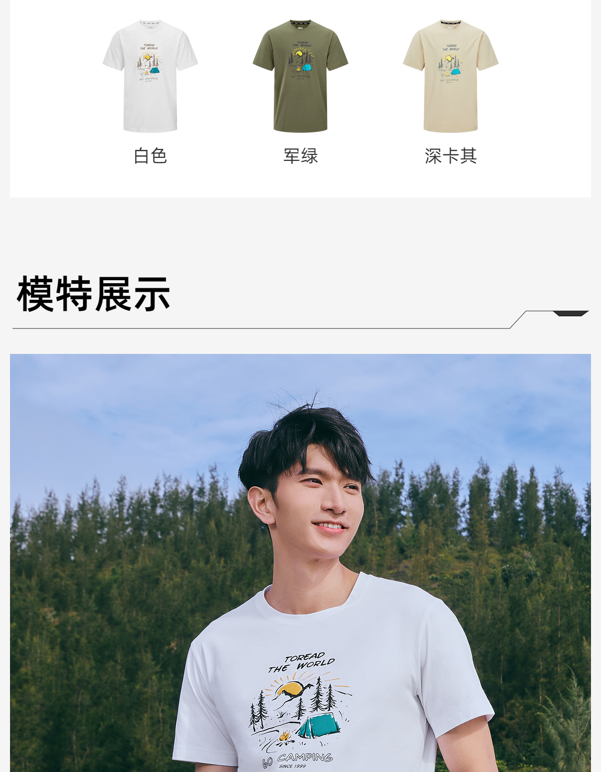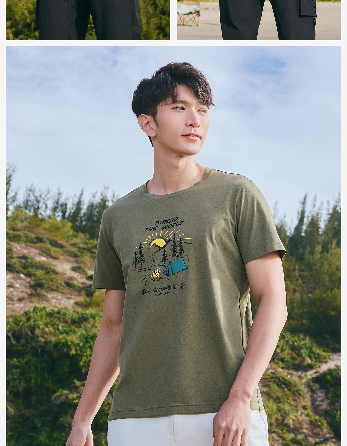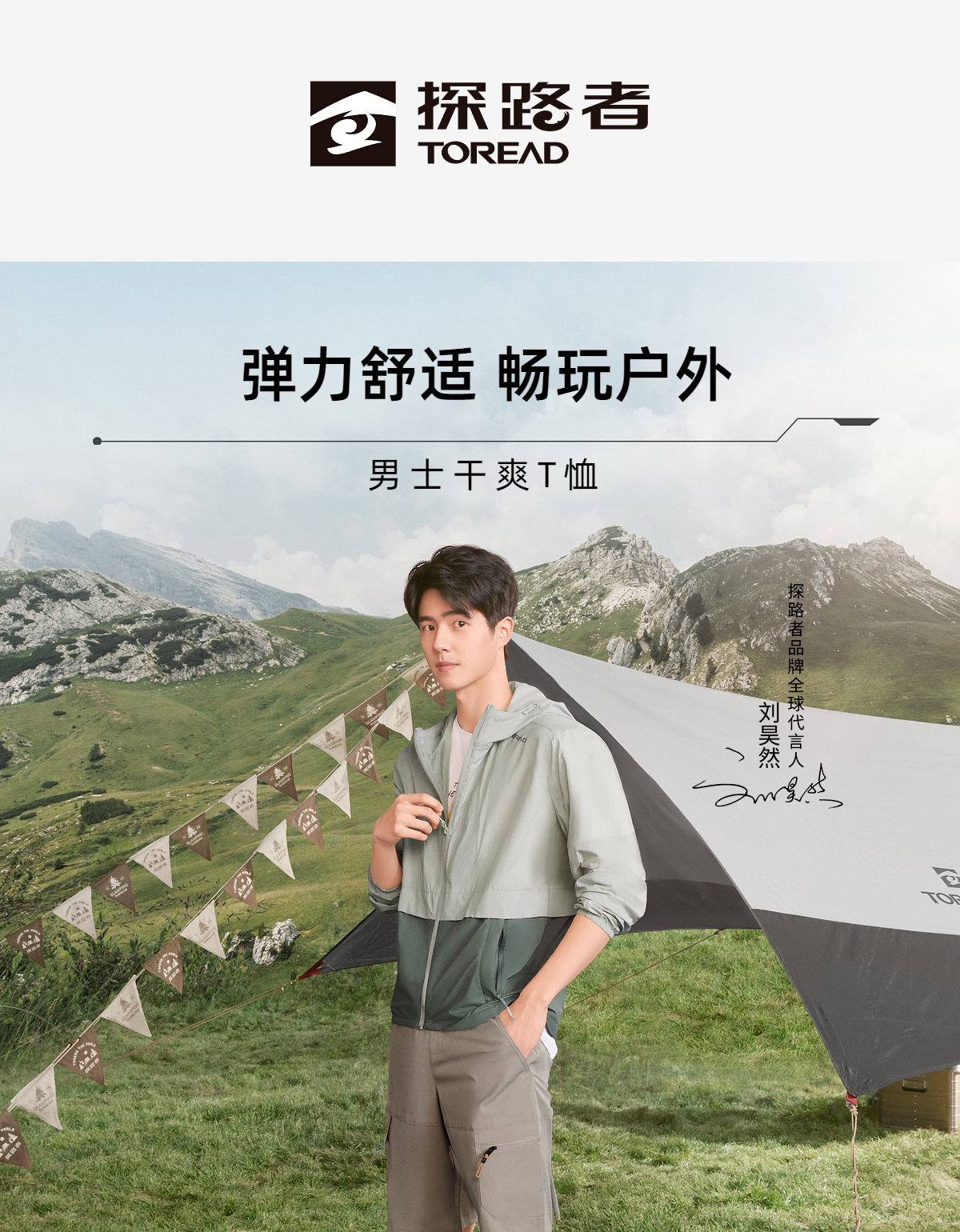 劉昊然同款探路者T恤2023新款蜂巢仿生速乾透氣戶外運動男短袖