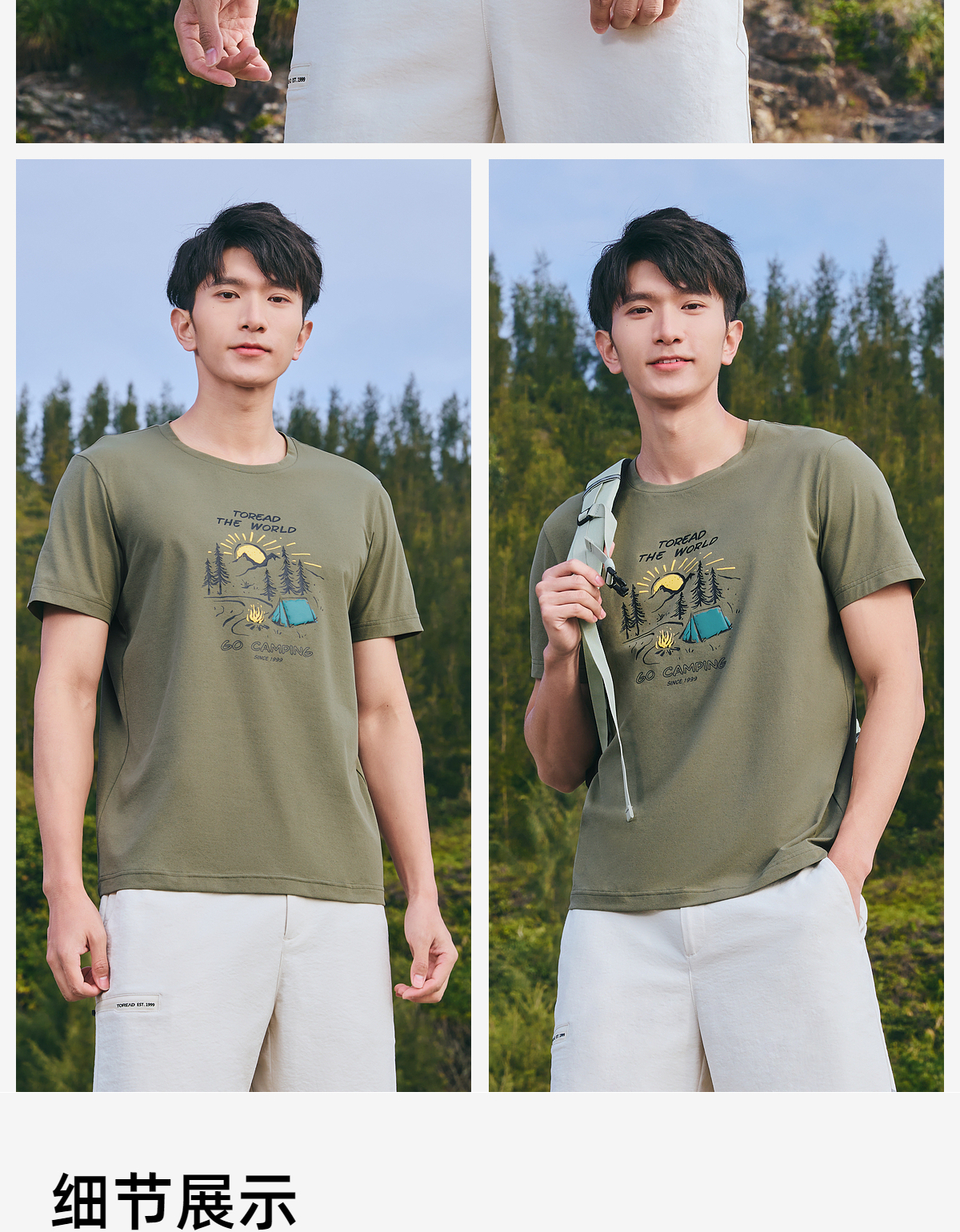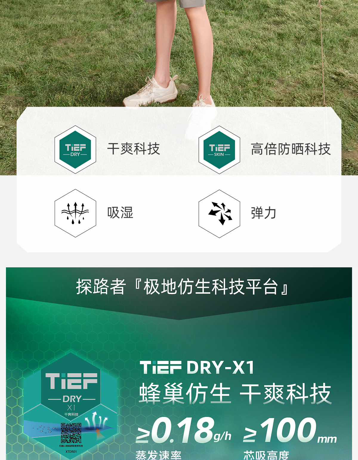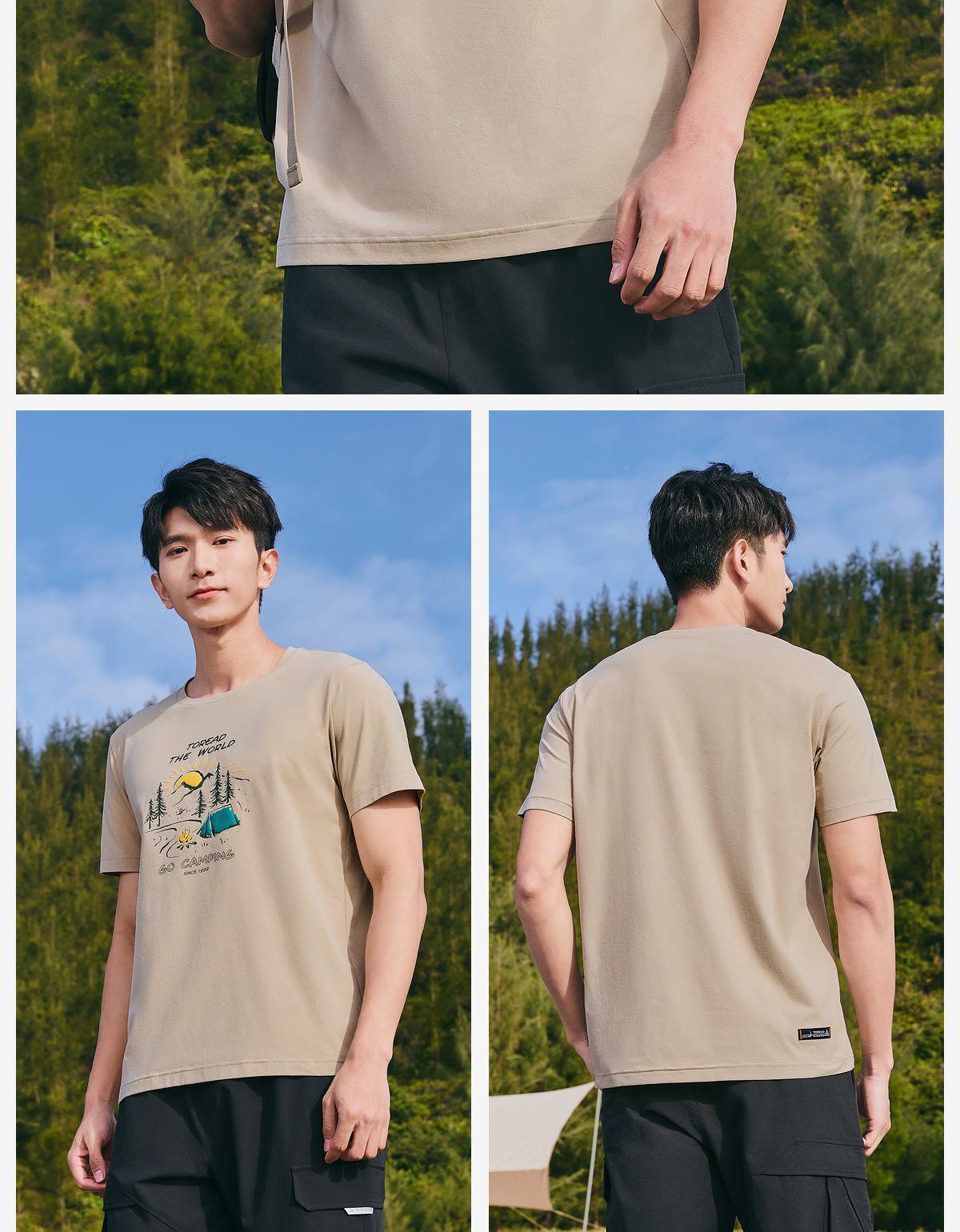 劉昊然同款探路者T恤2023新款蜂巢仿生速乾透氣戶外運動男短袖
