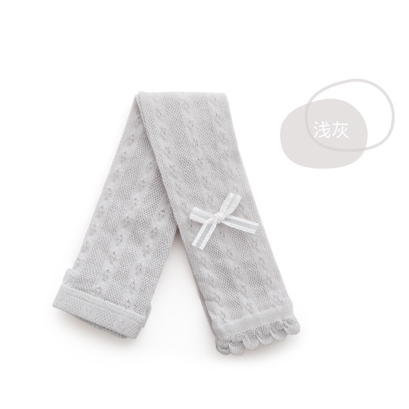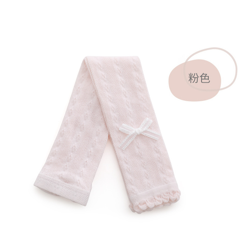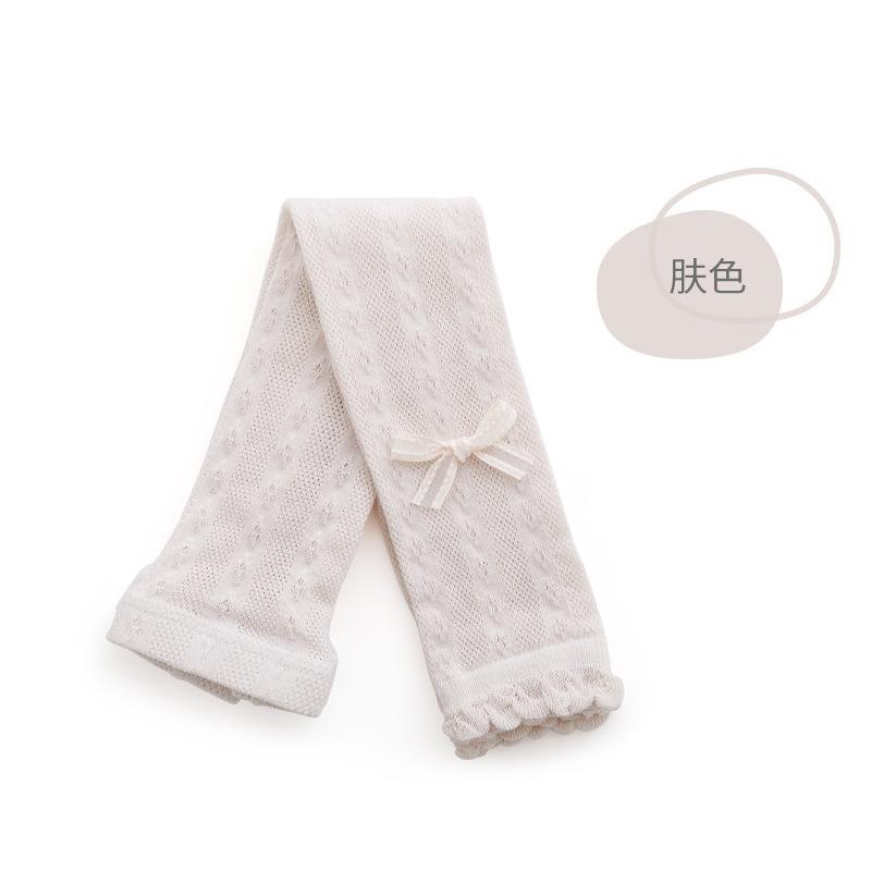 女童打底裤夏季超薄网眼蝴蝶结公主宝宝白色连体裤婴儿花边九分裤