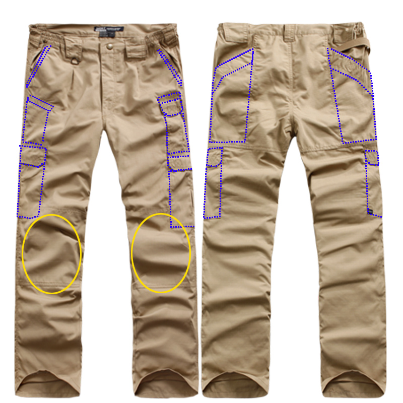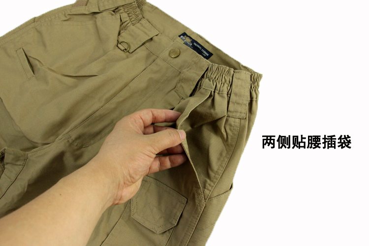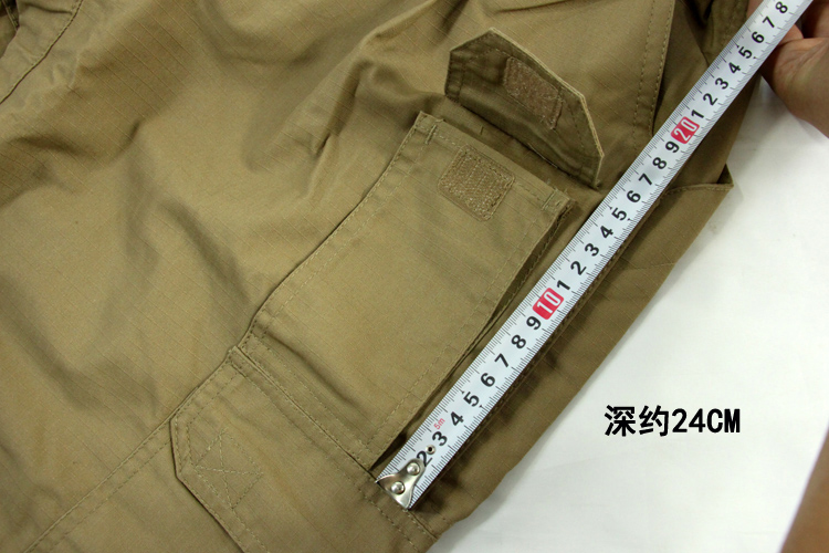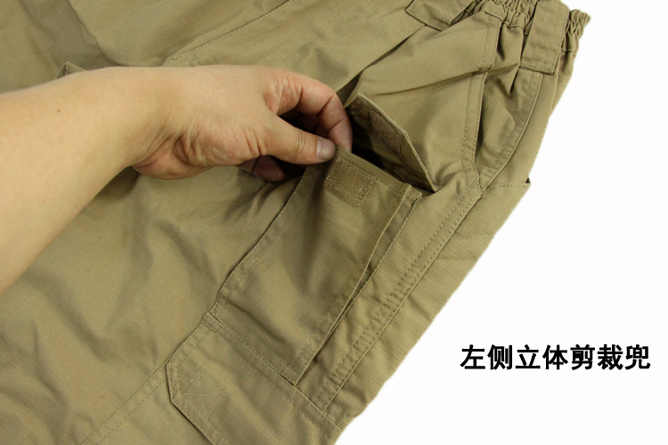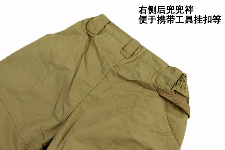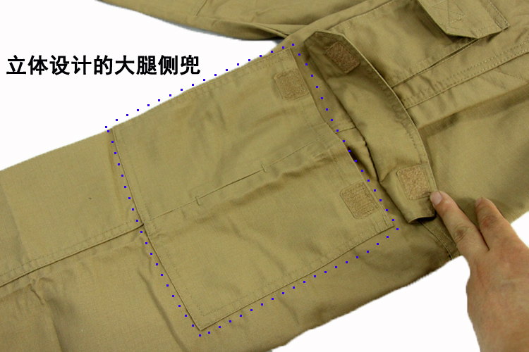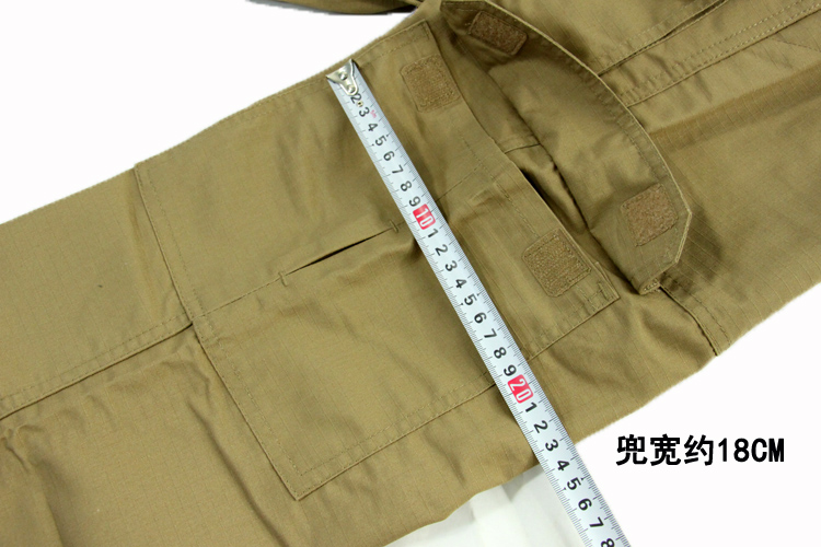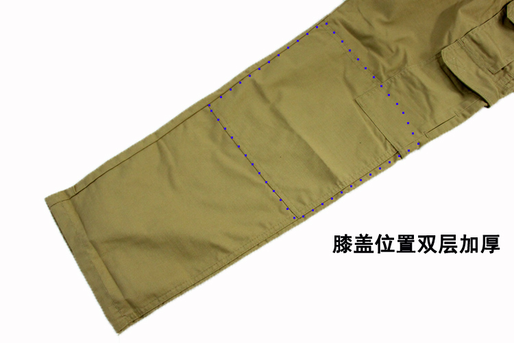8口袋设计,防撕裂面料,涂层处理,抗污防尘。臀部膝盖位置加固处理,适应各类战术动作施展。