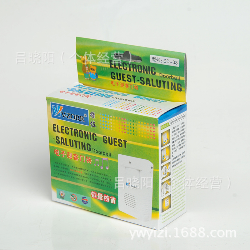 使用方法:将电子迎客门铃挂在客人要经过的地方,并将开关拨到档或者第二档。当有客人到访时,电子迎客门铃就会发出“叮咚叮咚”(您好,欢迎光临)。该产品适用于正常光线环境使用,并建议在光线充足的地方使用。该款电子迎客门铃,采用先进微电脑制造技术,全自动光感功能,性能卓越,节能易用。特设无串响装置,直至悠美音乐完毕,灵敏度强。更适合市场的需要,更贴近消费者的生活内容,办公写字楼、家居、商店、工厂等各种场合均可使用,带来方便之余,更带来意想不到的快乐和安全感。