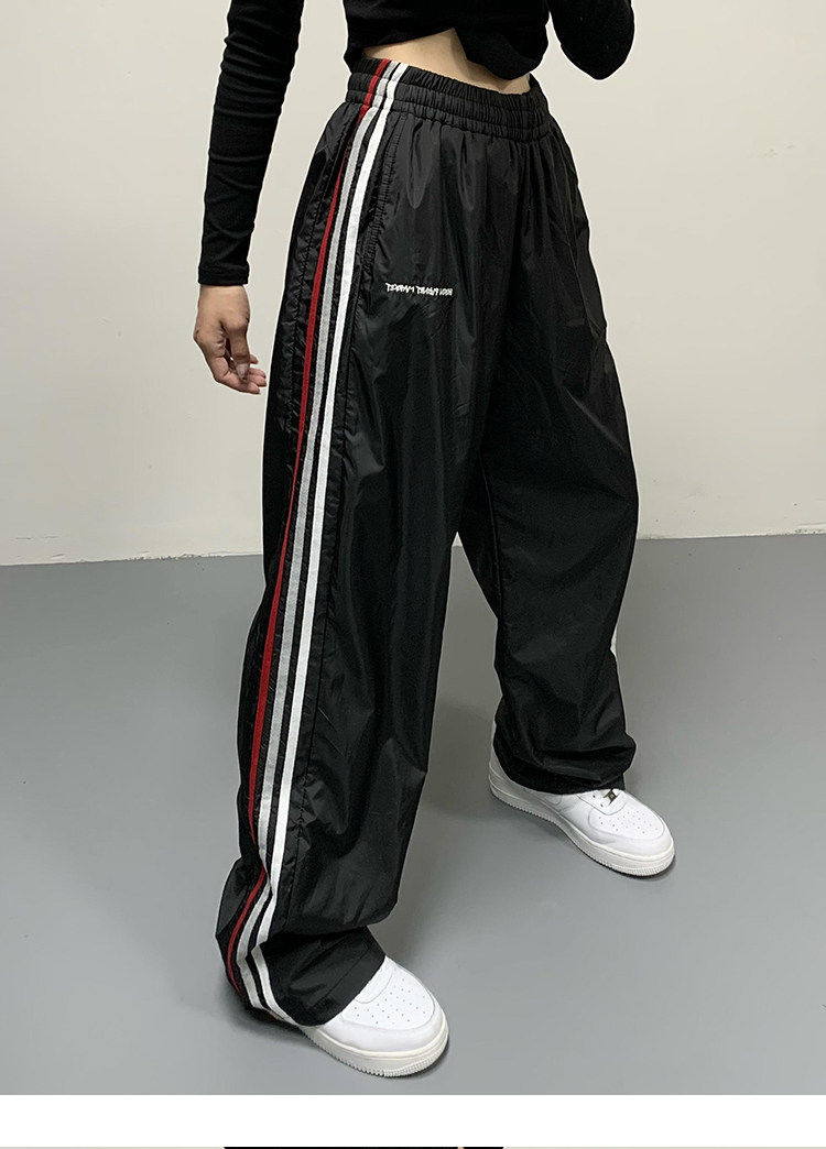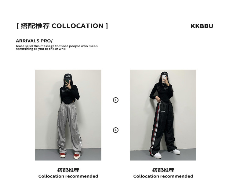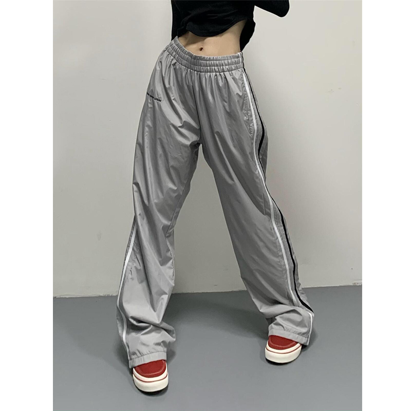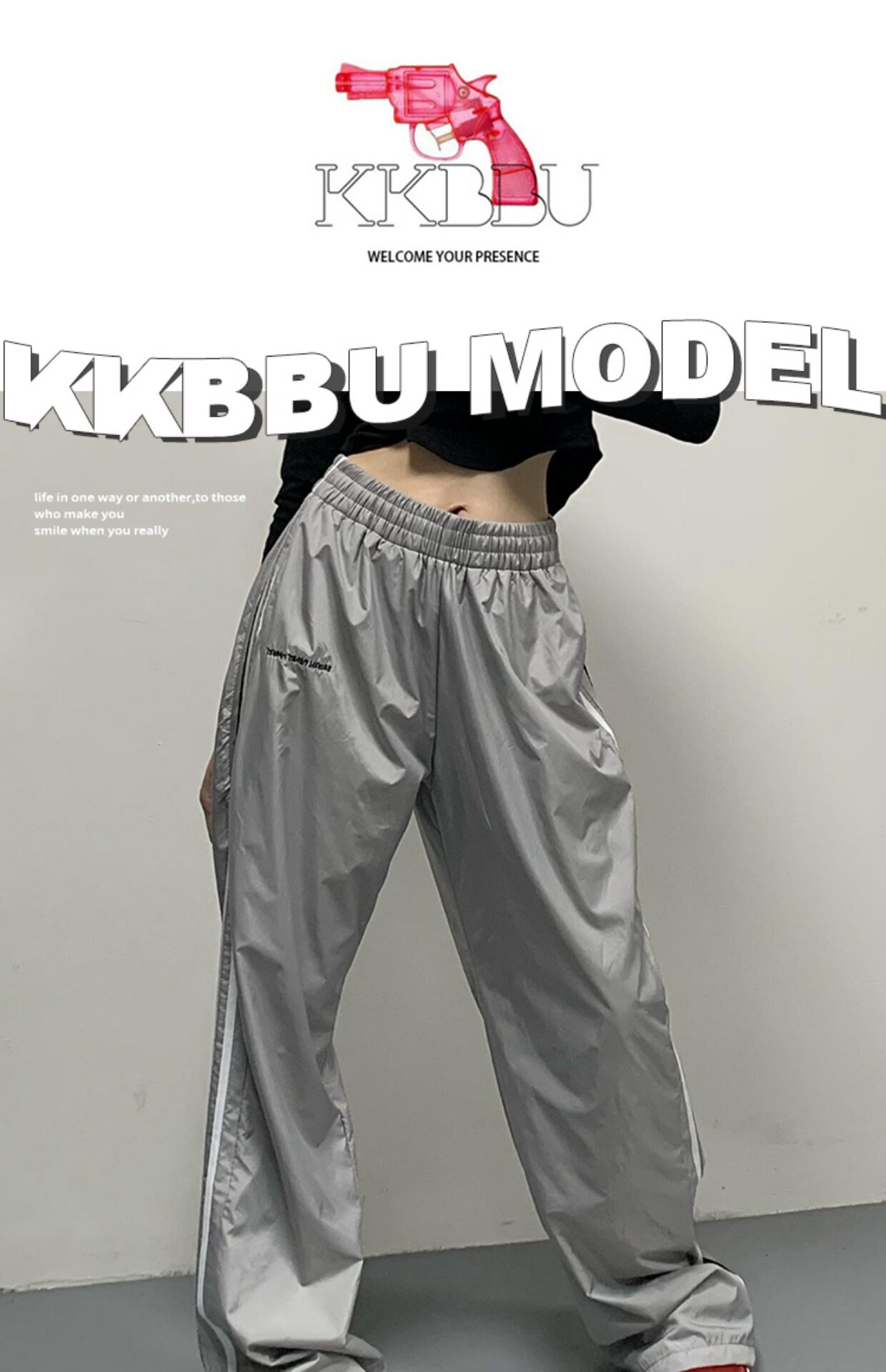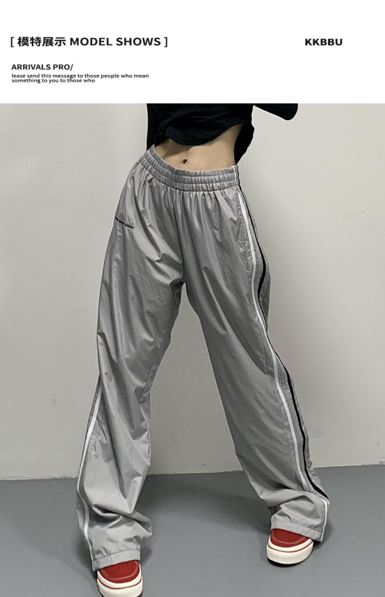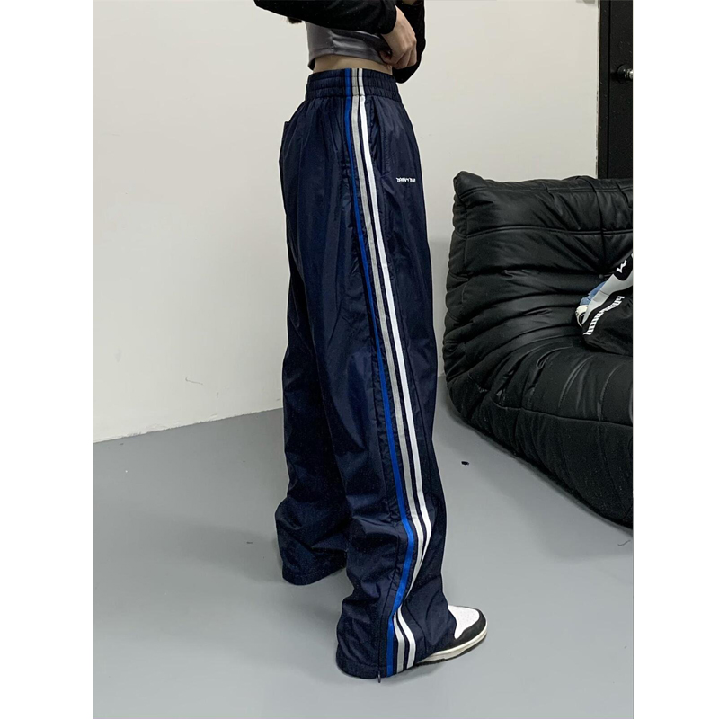 KKBBU美式復古寬鬆直筒條紋運動褲男女街頭垂地感潮流拖地休閒褲