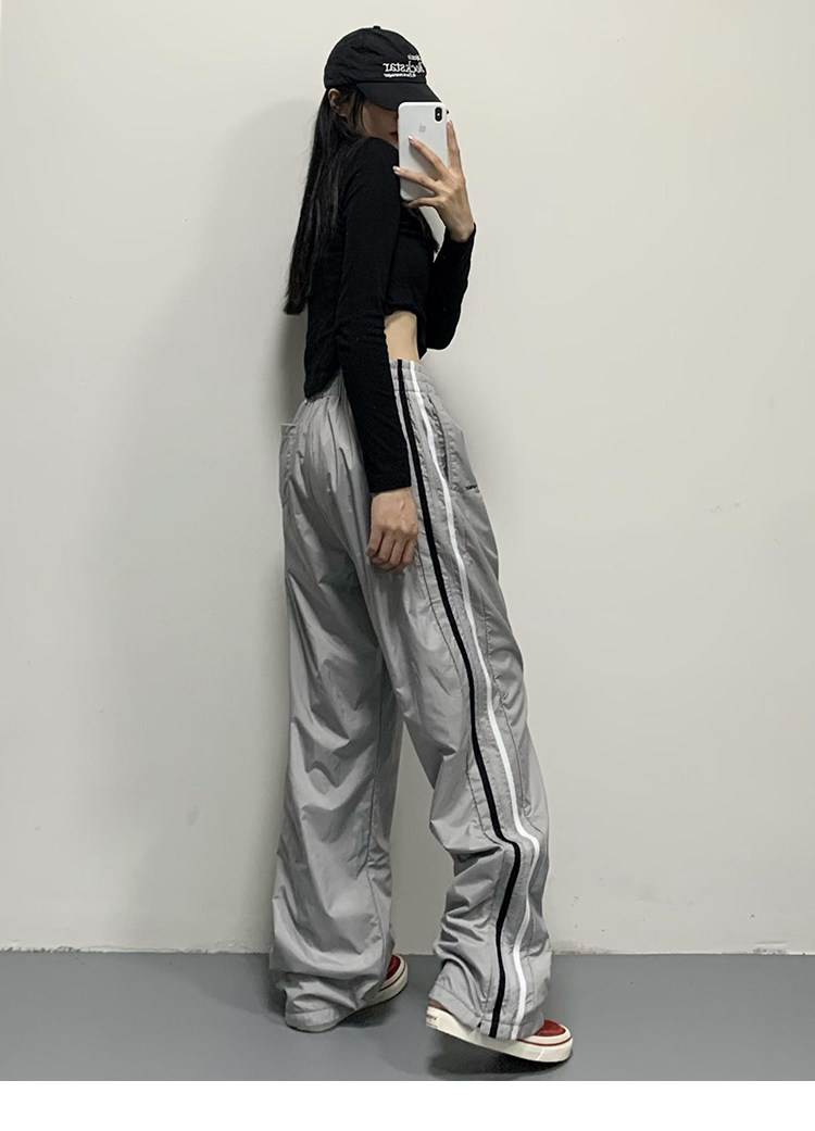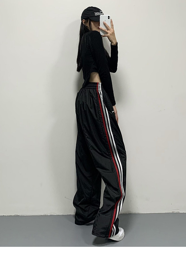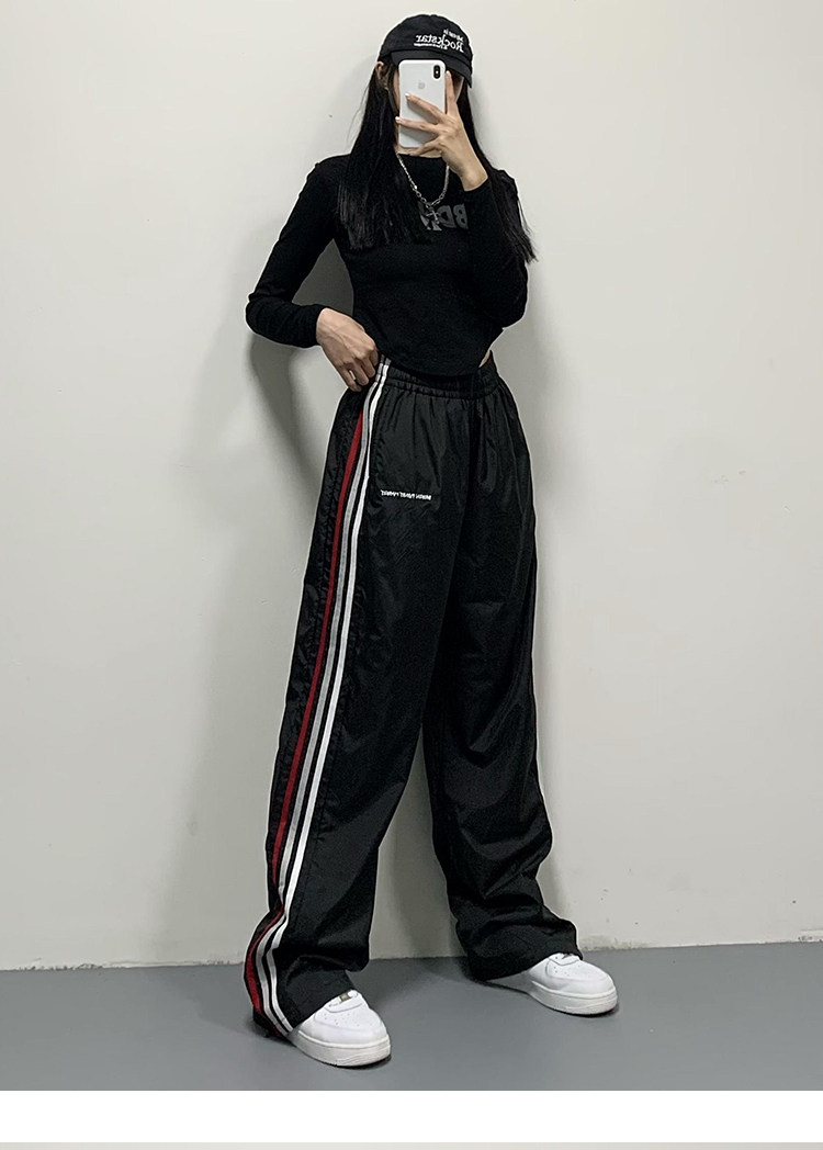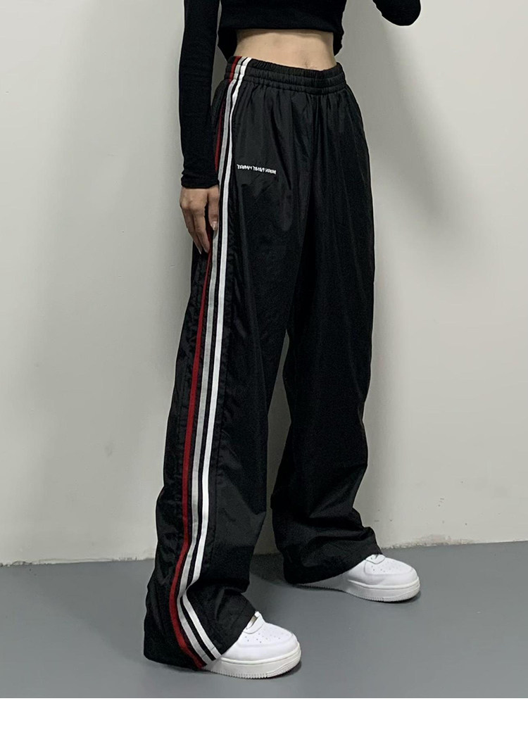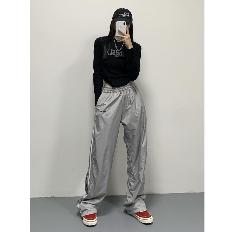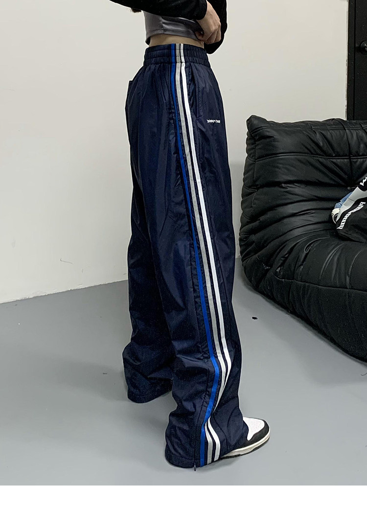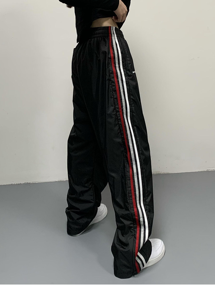 KKBBU美式復古寬鬆直筒條紋運動褲男女街頭垂地感潮流拖地休閒褲
