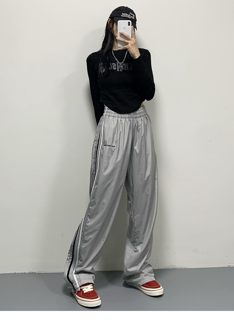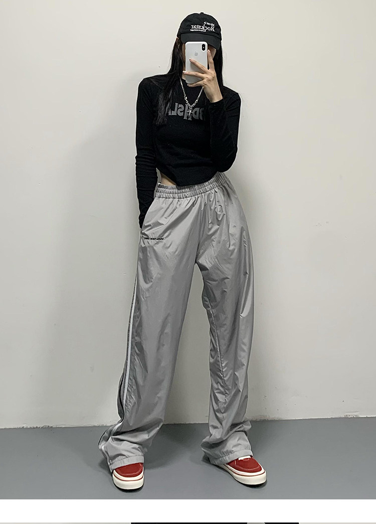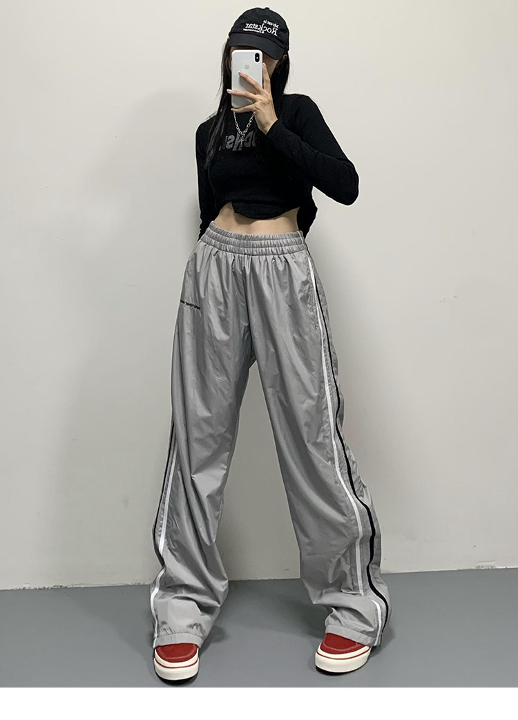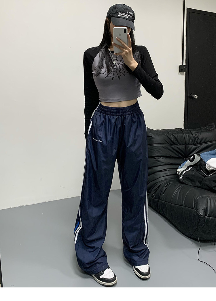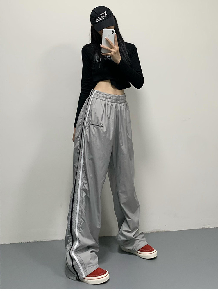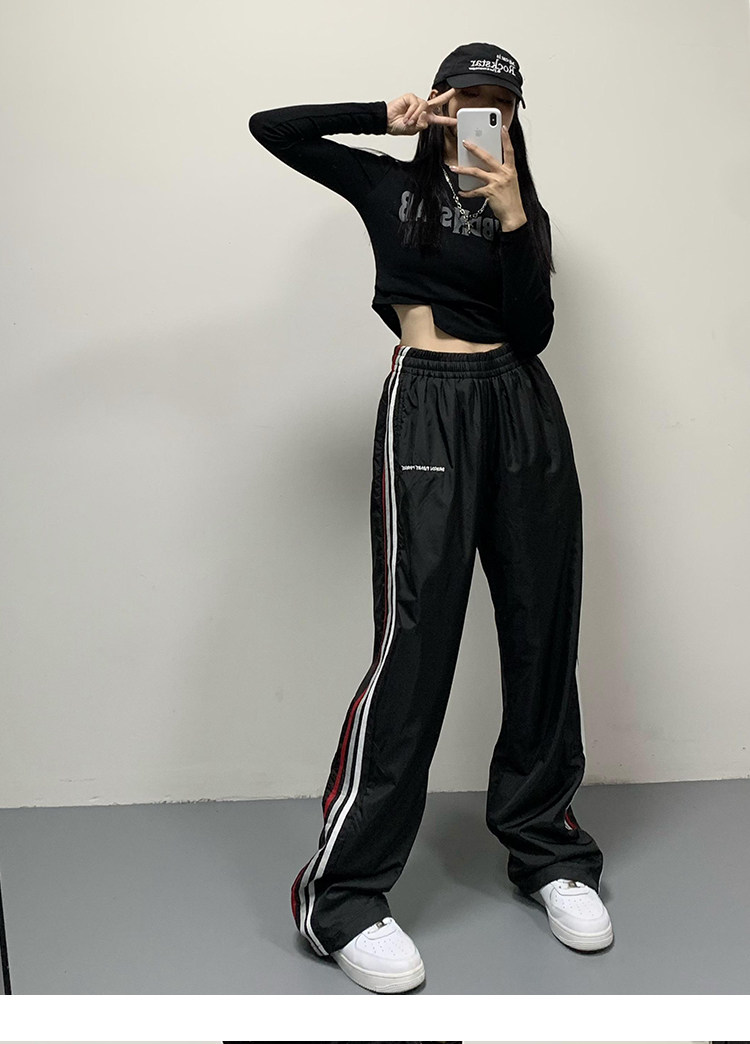 KKBBU美式復古寬鬆直筒條紋運動褲男女街頭垂地感潮流拖地休閒褲