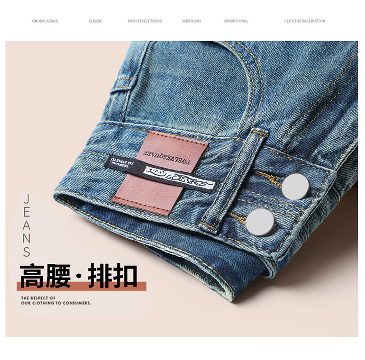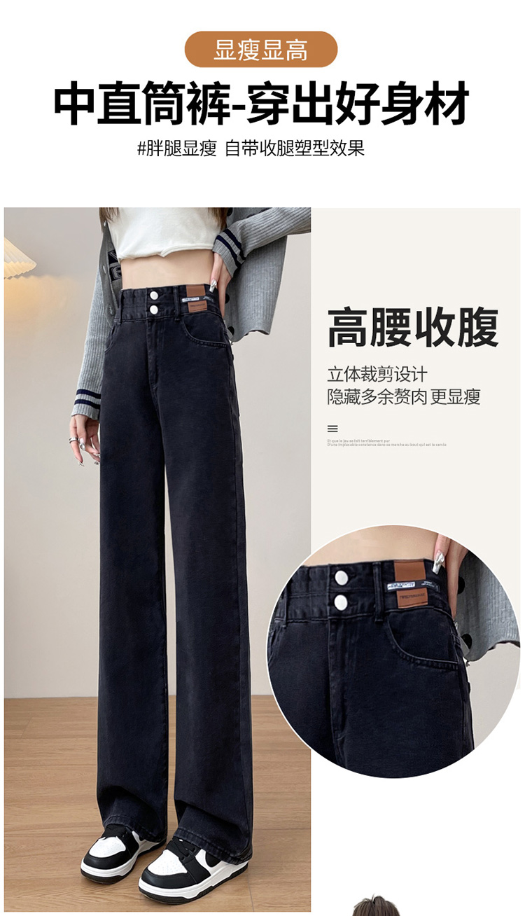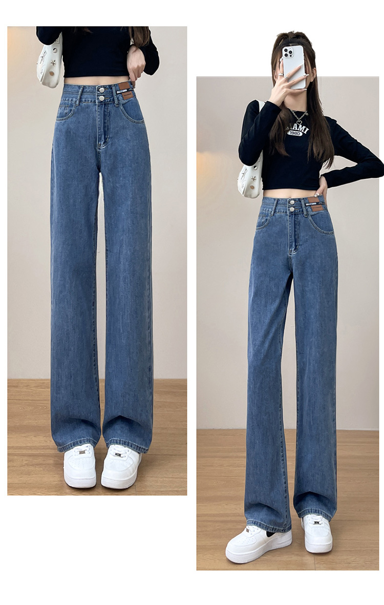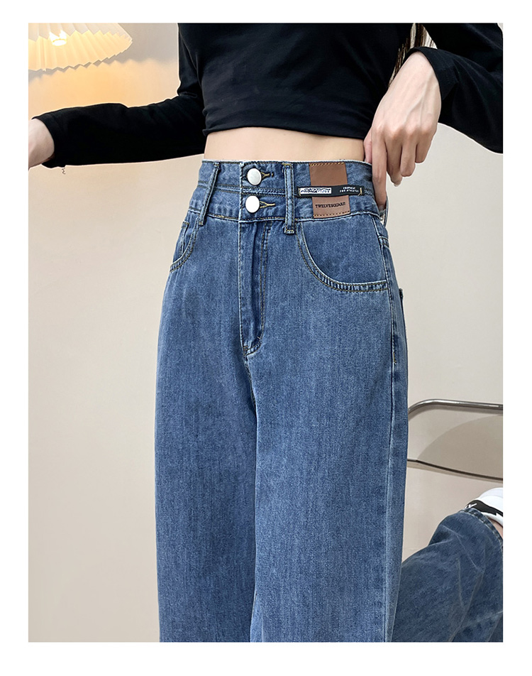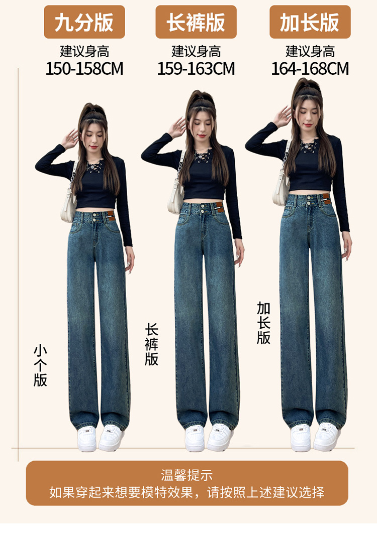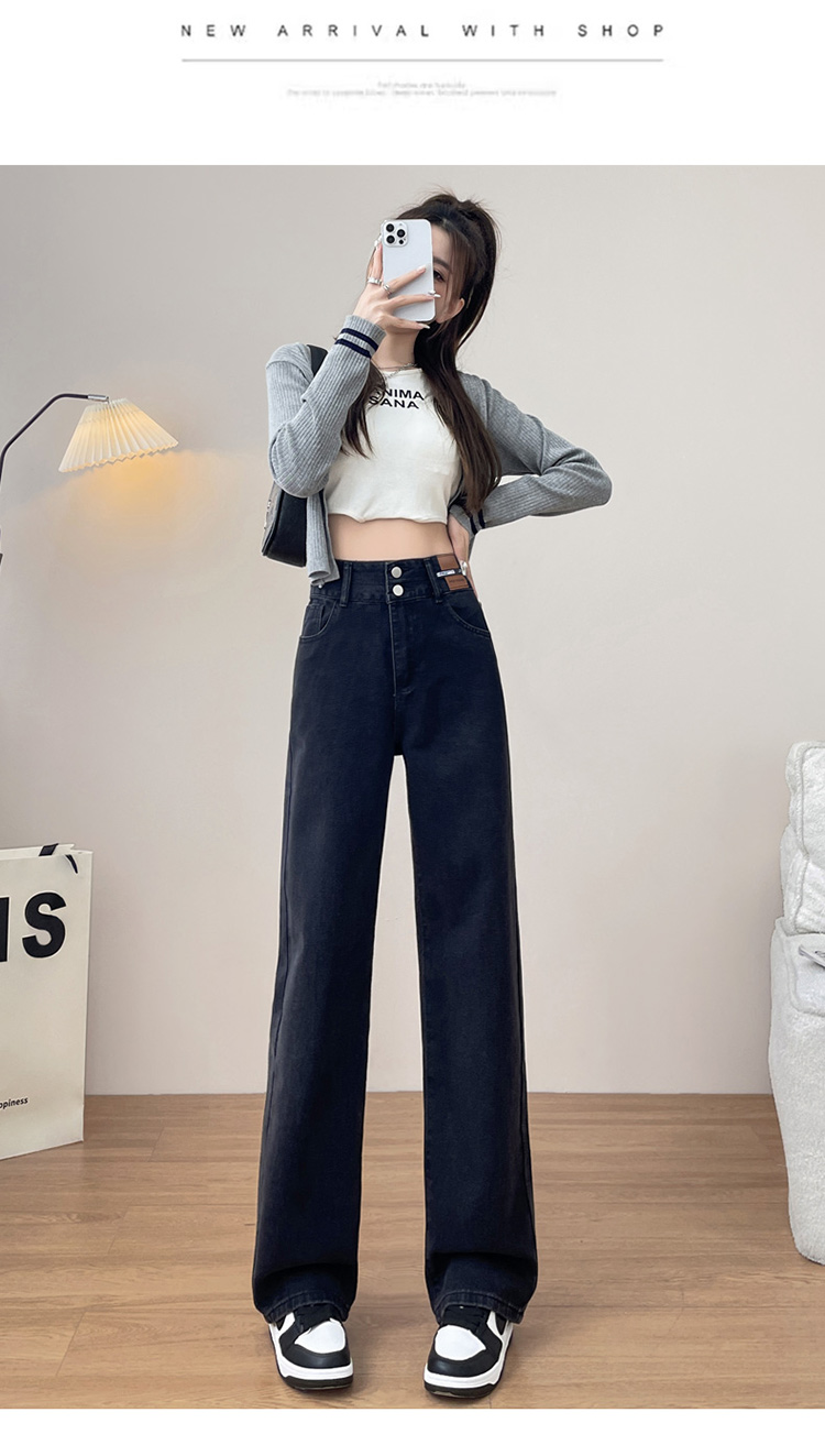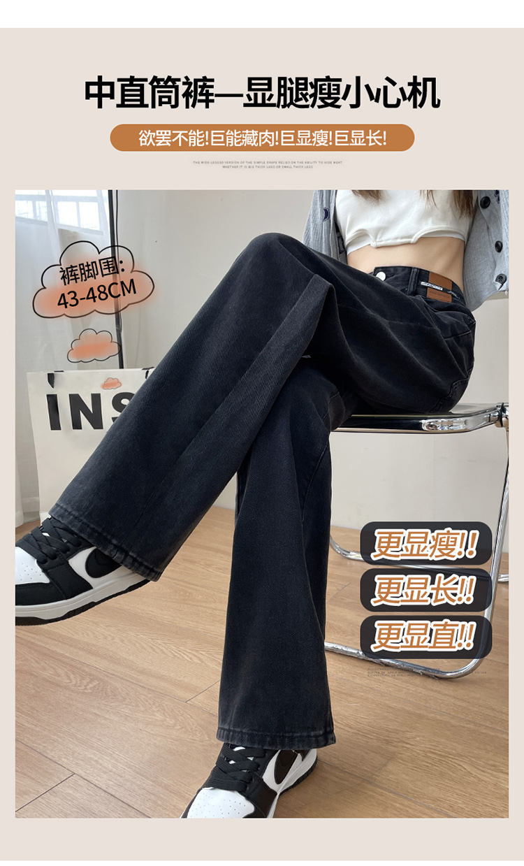 復古牛仔褲女直筒寬鬆高腰春秋季2023年新款小個子拖地窄版闊腿褲