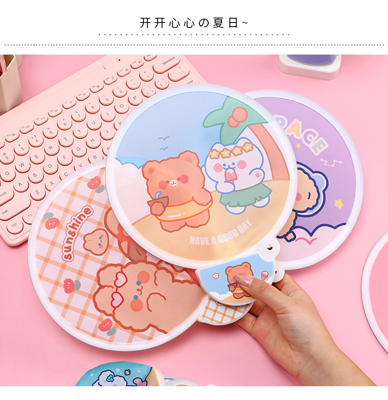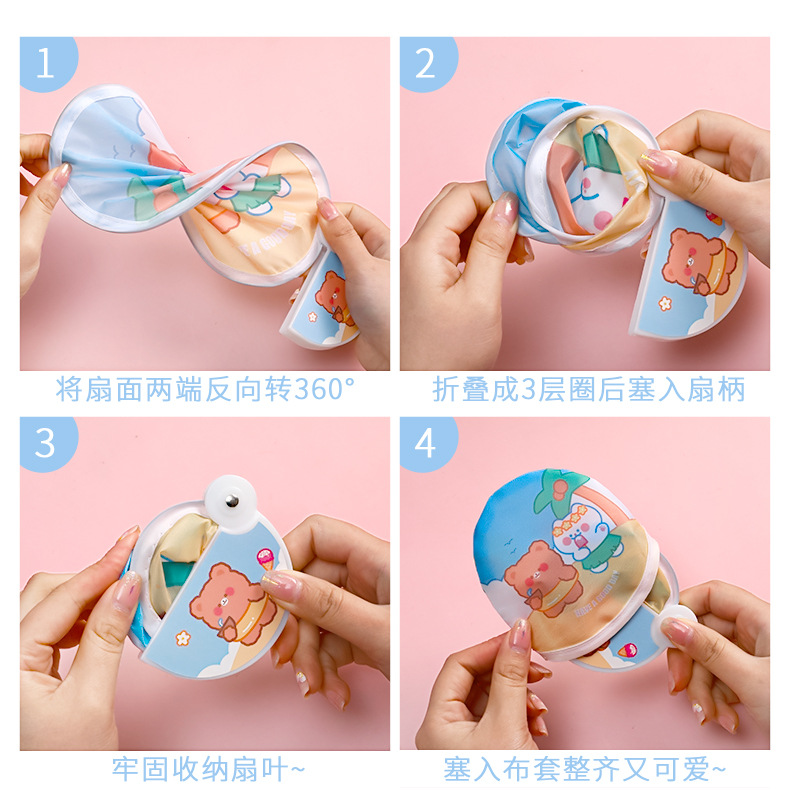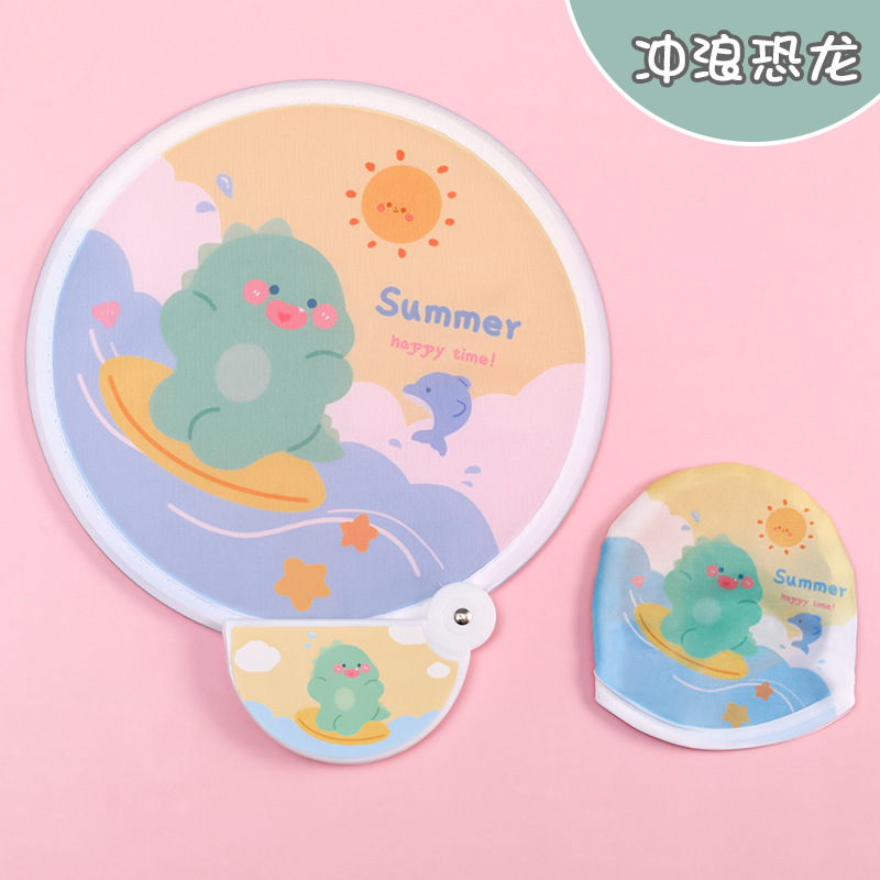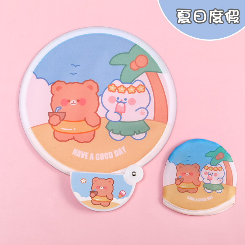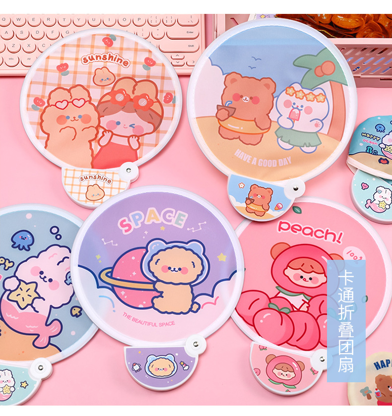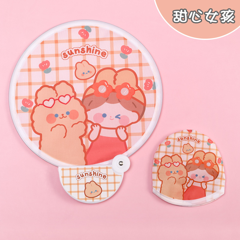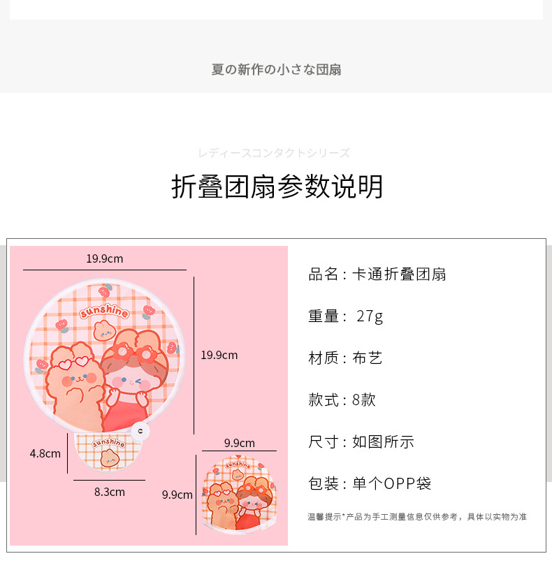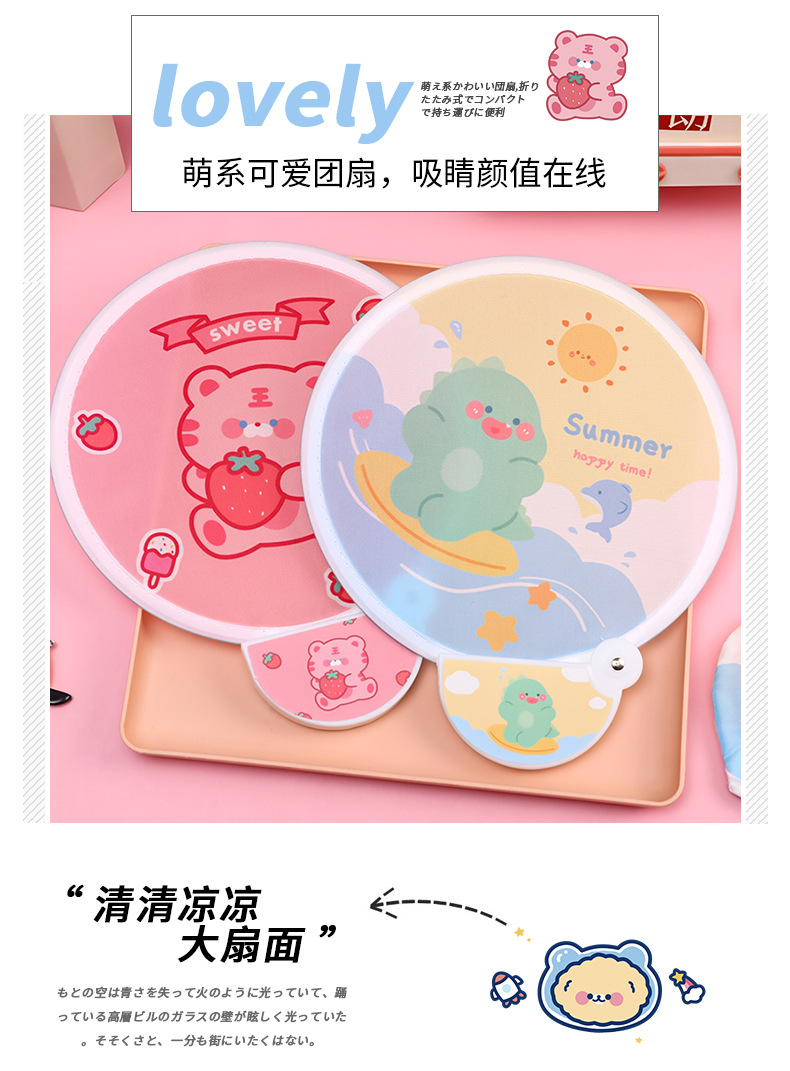 卡通折叠团扇夏季可爱迷你布面随身便携扇子儿童节日礼品带柄折扇
