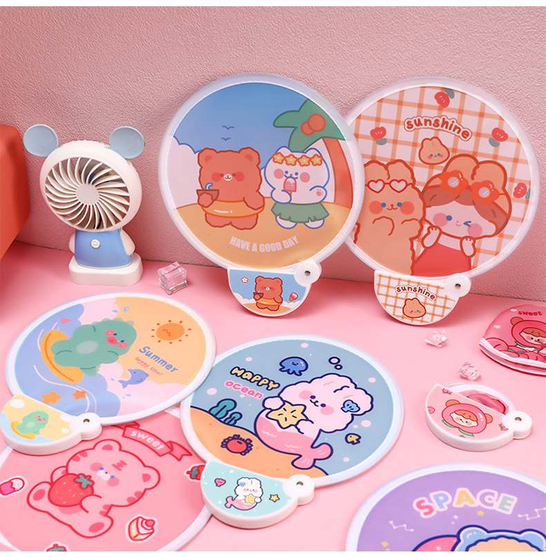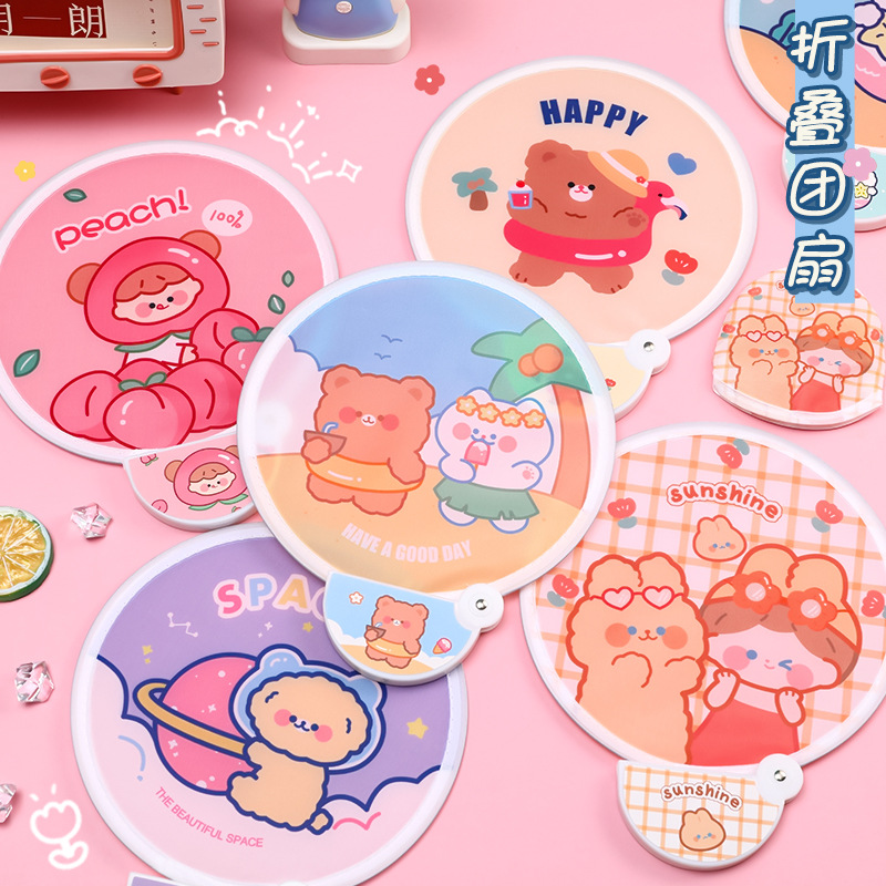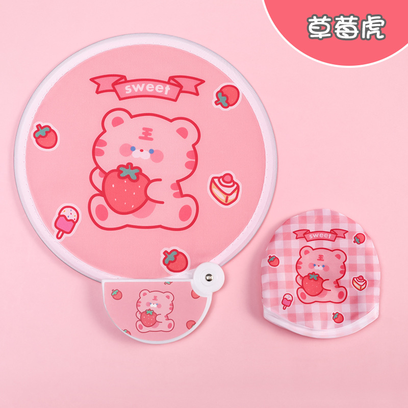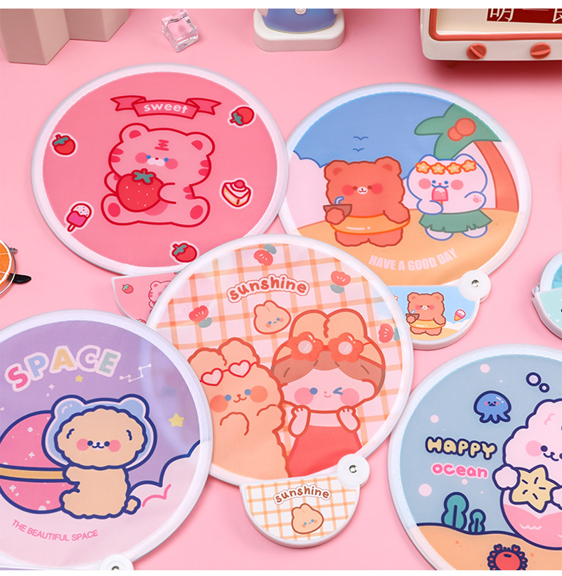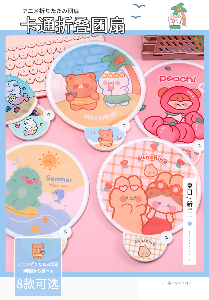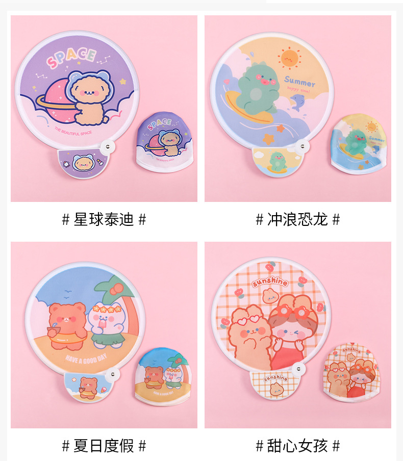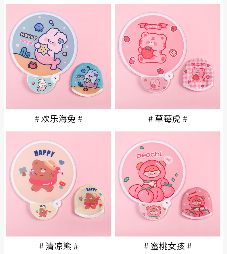 卡通折叠团扇夏季可爱迷你布面随身便携扇子儿童节日礼品带柄折扇
