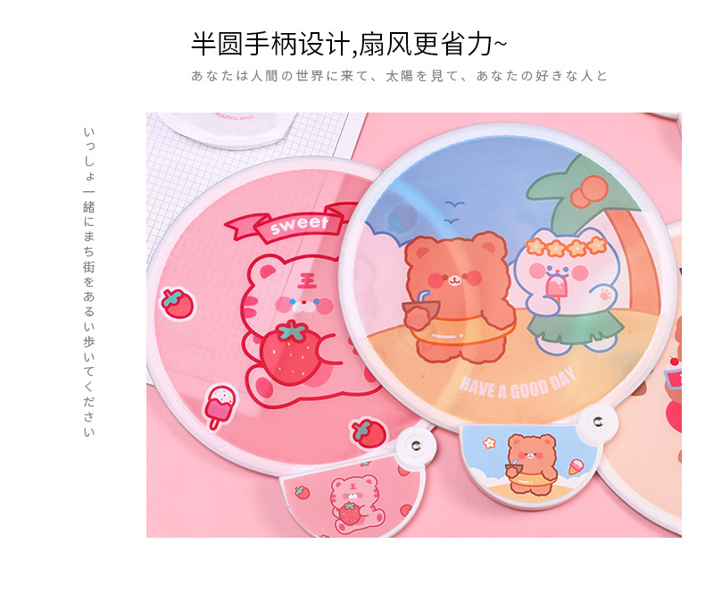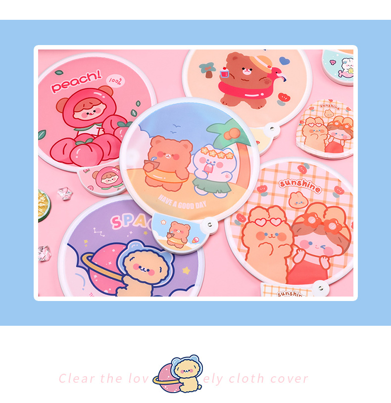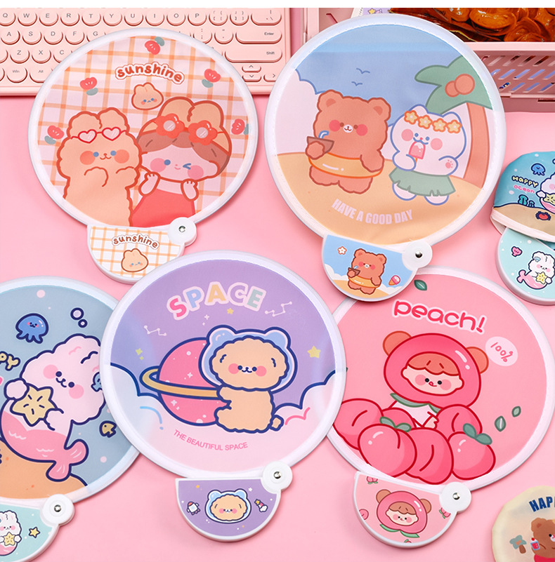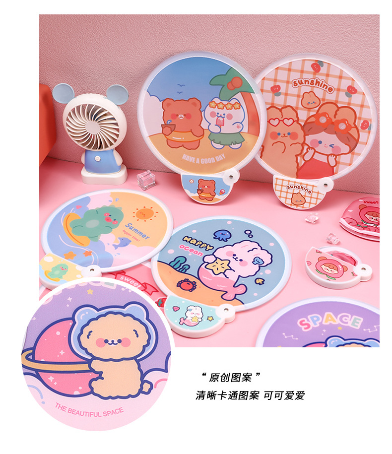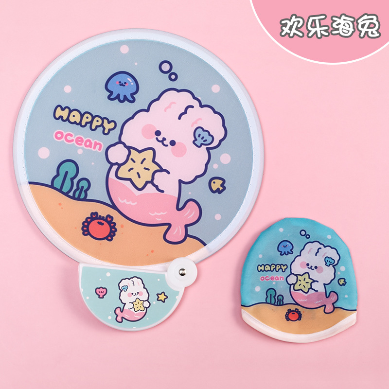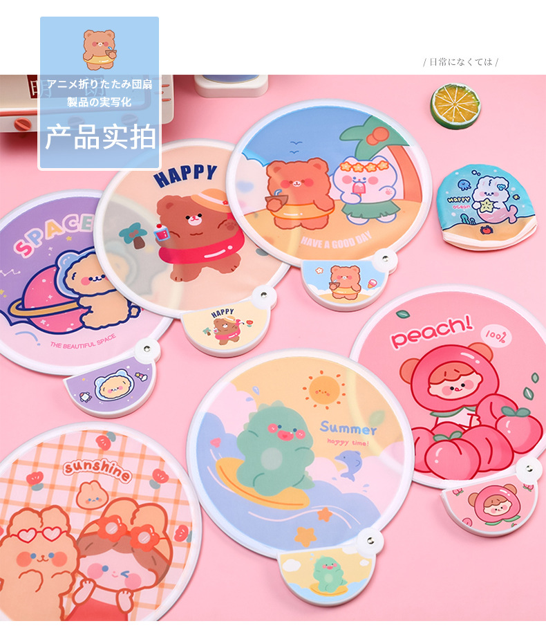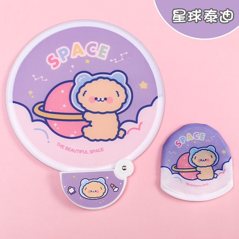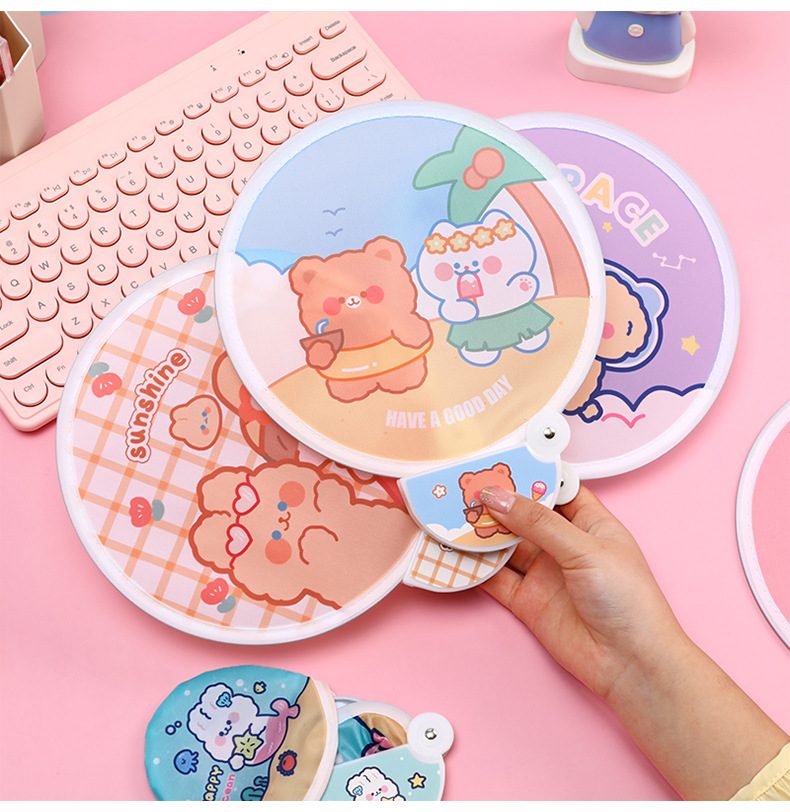 卡通折叠团扇夏季可爱迷你布面随身便携扇子儿童节日礼品带柄折扇