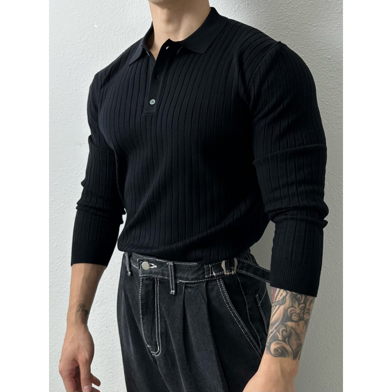 polo衫男士長袖T恤春秋薄款寬鬆休閒百搭翻領針織衫上衣韓版潮流