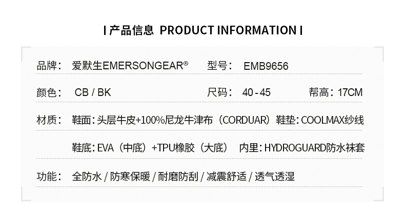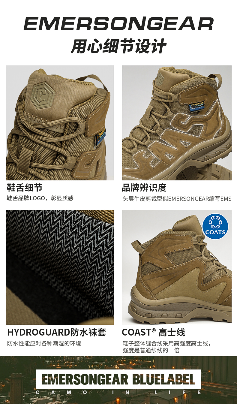 愛默生“行者”戰術靴男中邦戶外登山鞋徒步鞋防水防滑沙漠靴透氣