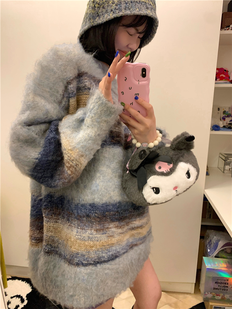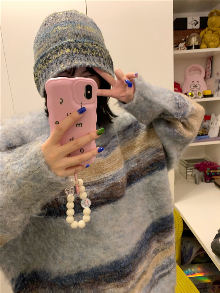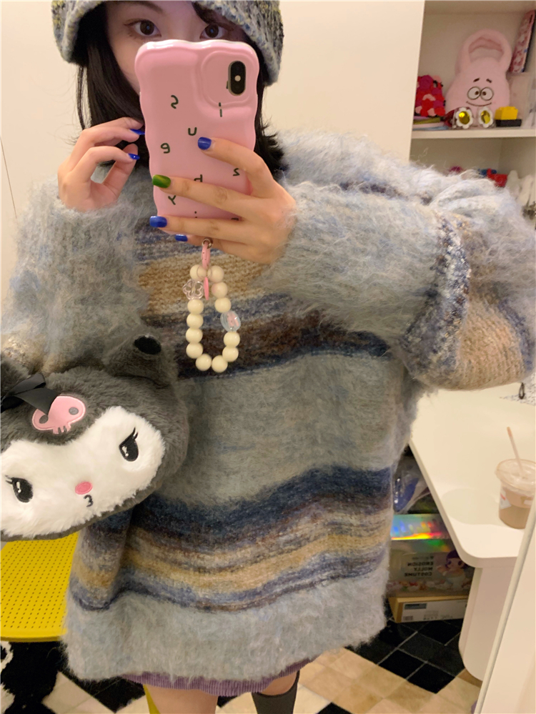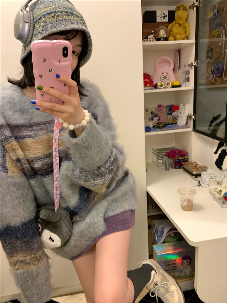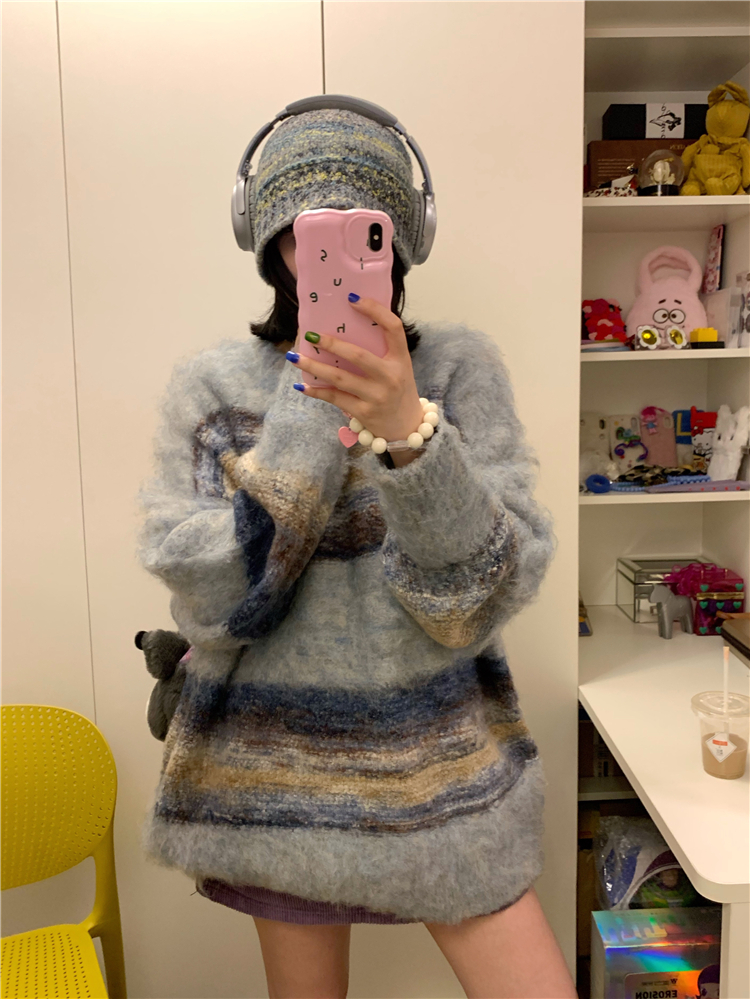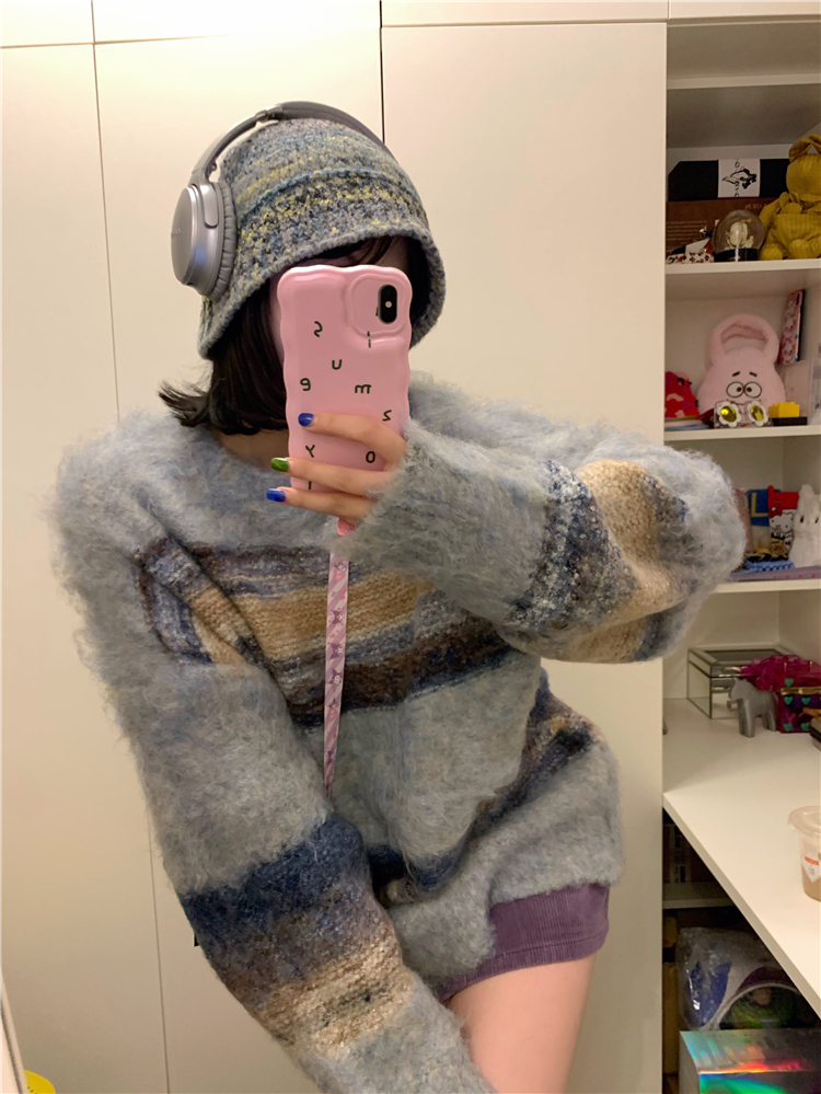 【1110上新】灰原哀的灰 溫柔暈染馬海毛圓領寬鬆韓休閒套頭毛衣